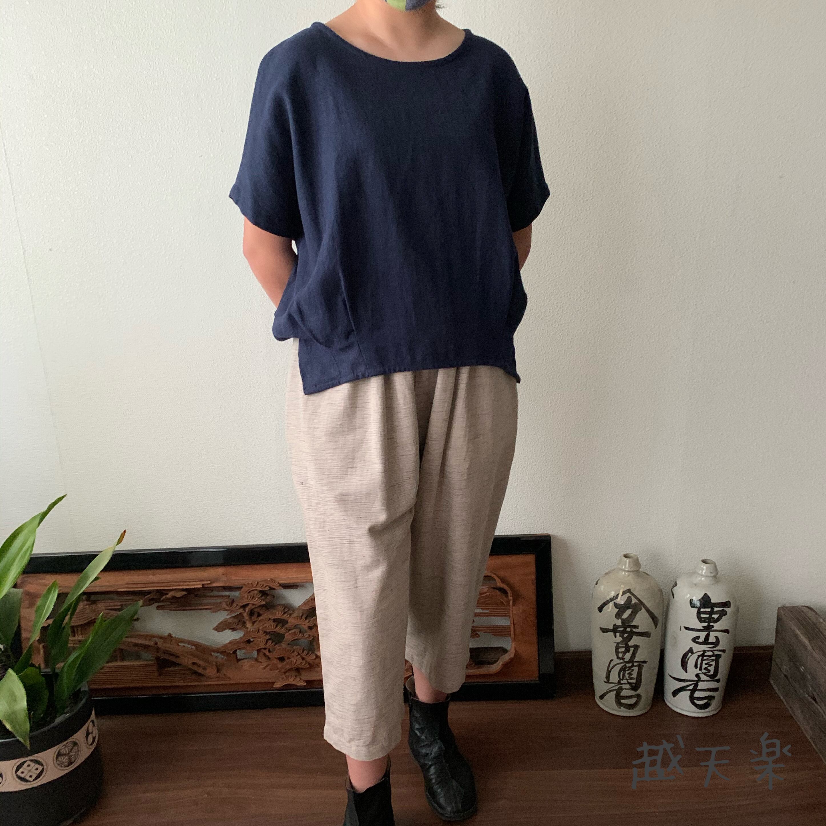 写真セットで着ているヘンプのシンプルラグラン袖ブラウスはこちら↓