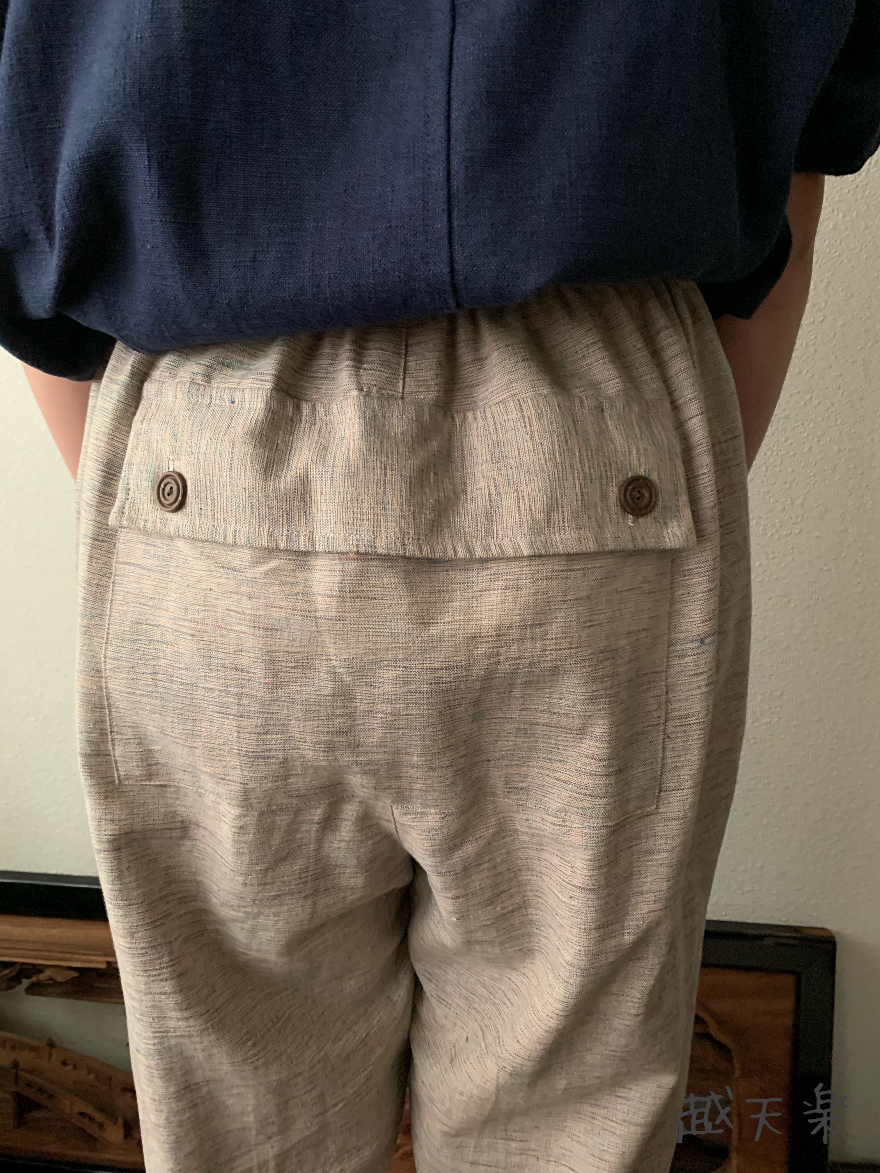 『ヒップビックポケット手織り綿サルエルパンツ ビックポケットでヒップラインが綺麗に、股上深めで楽ちんに』