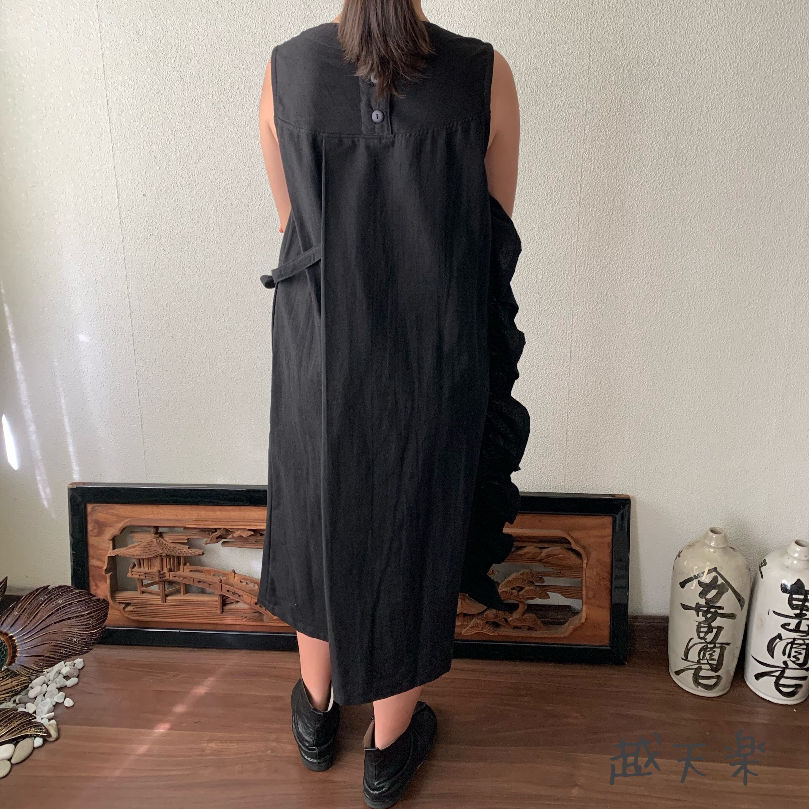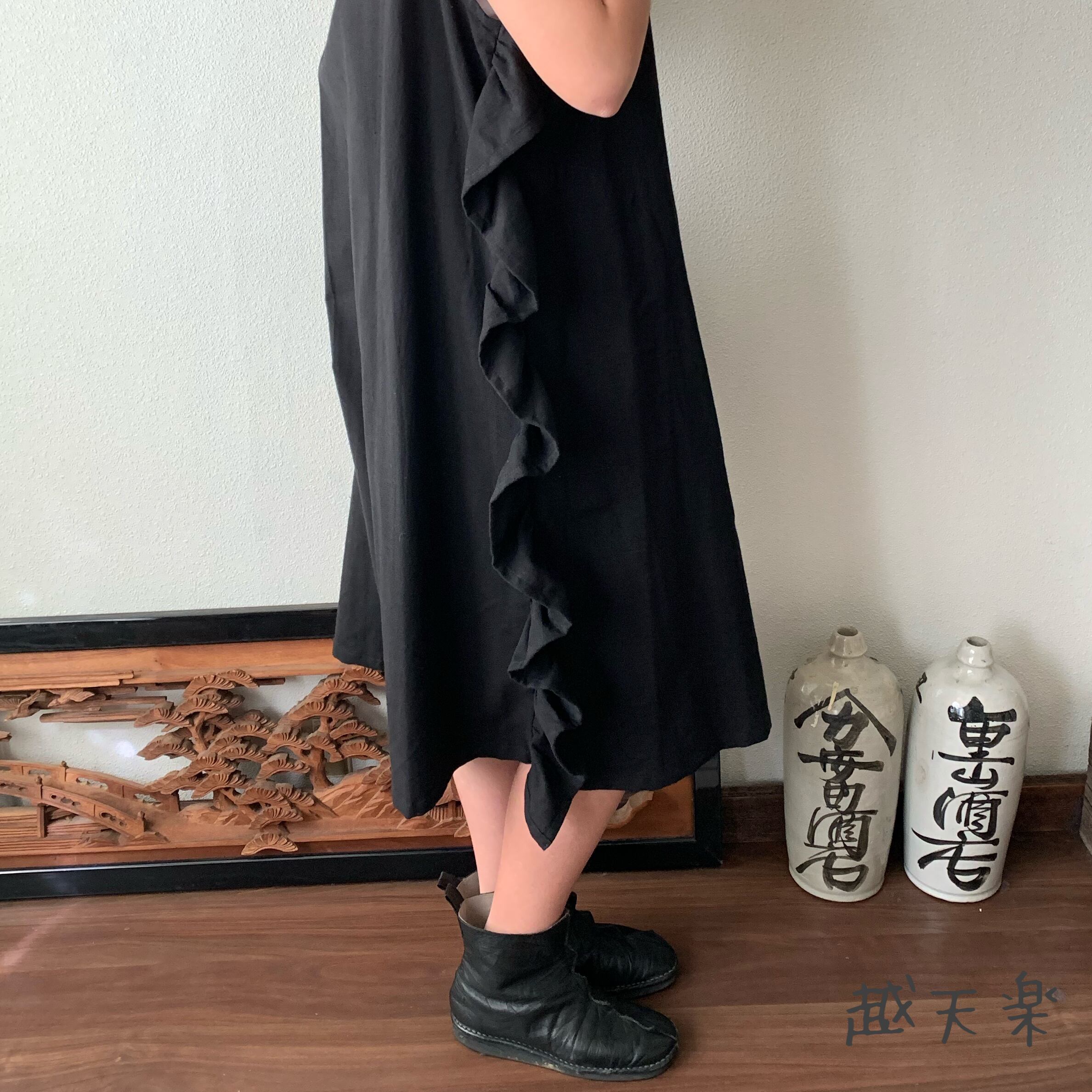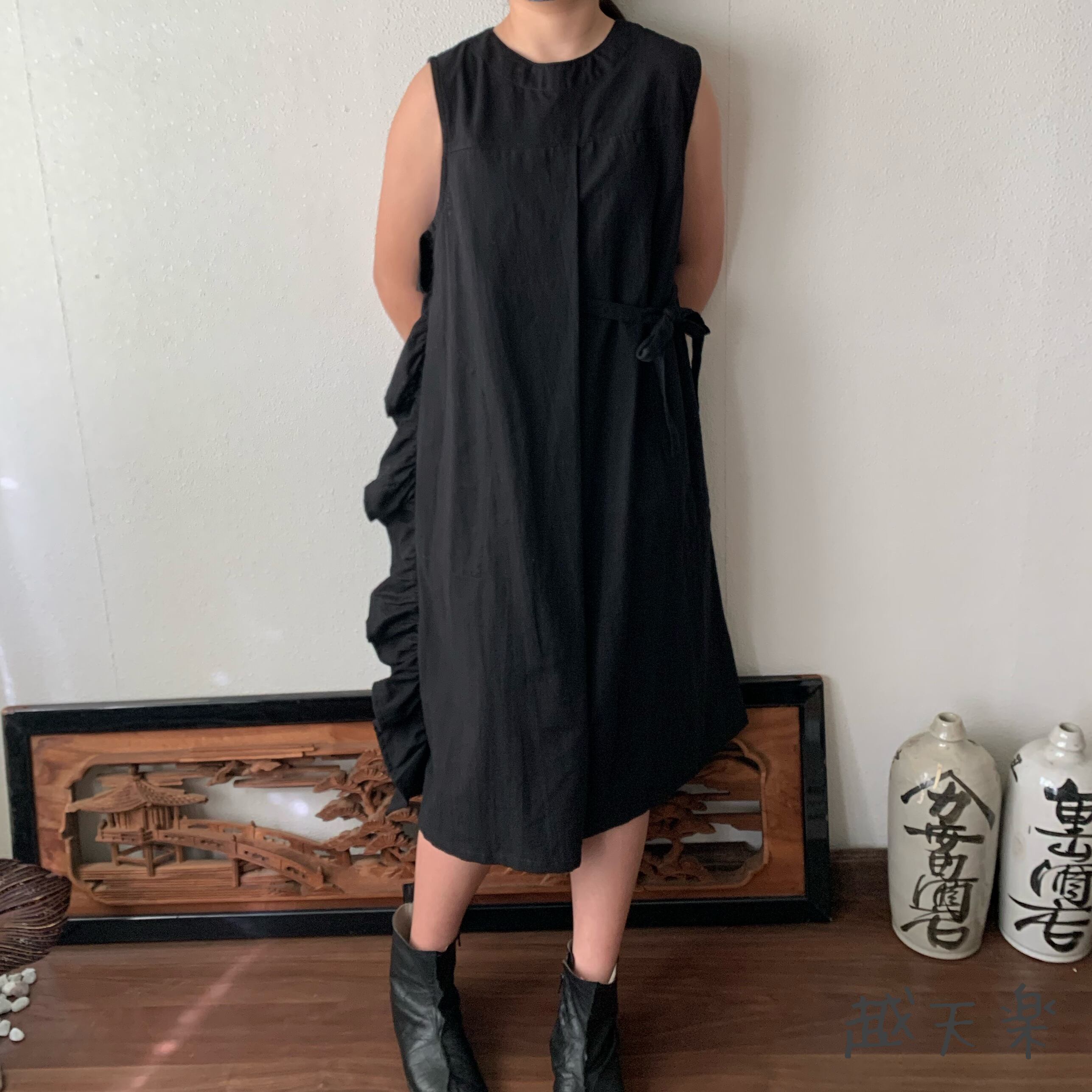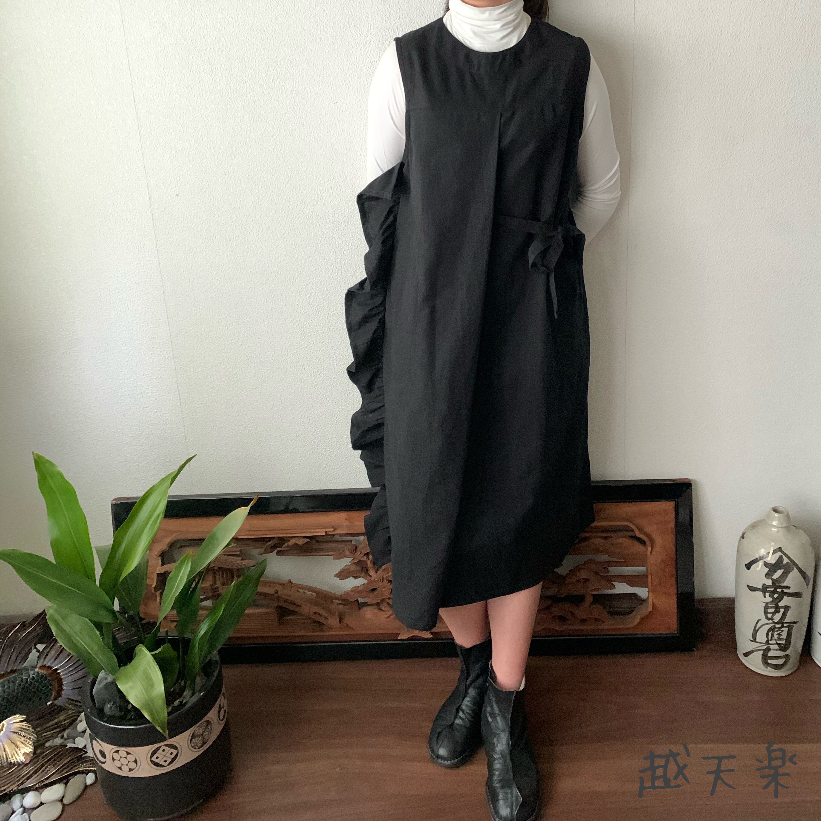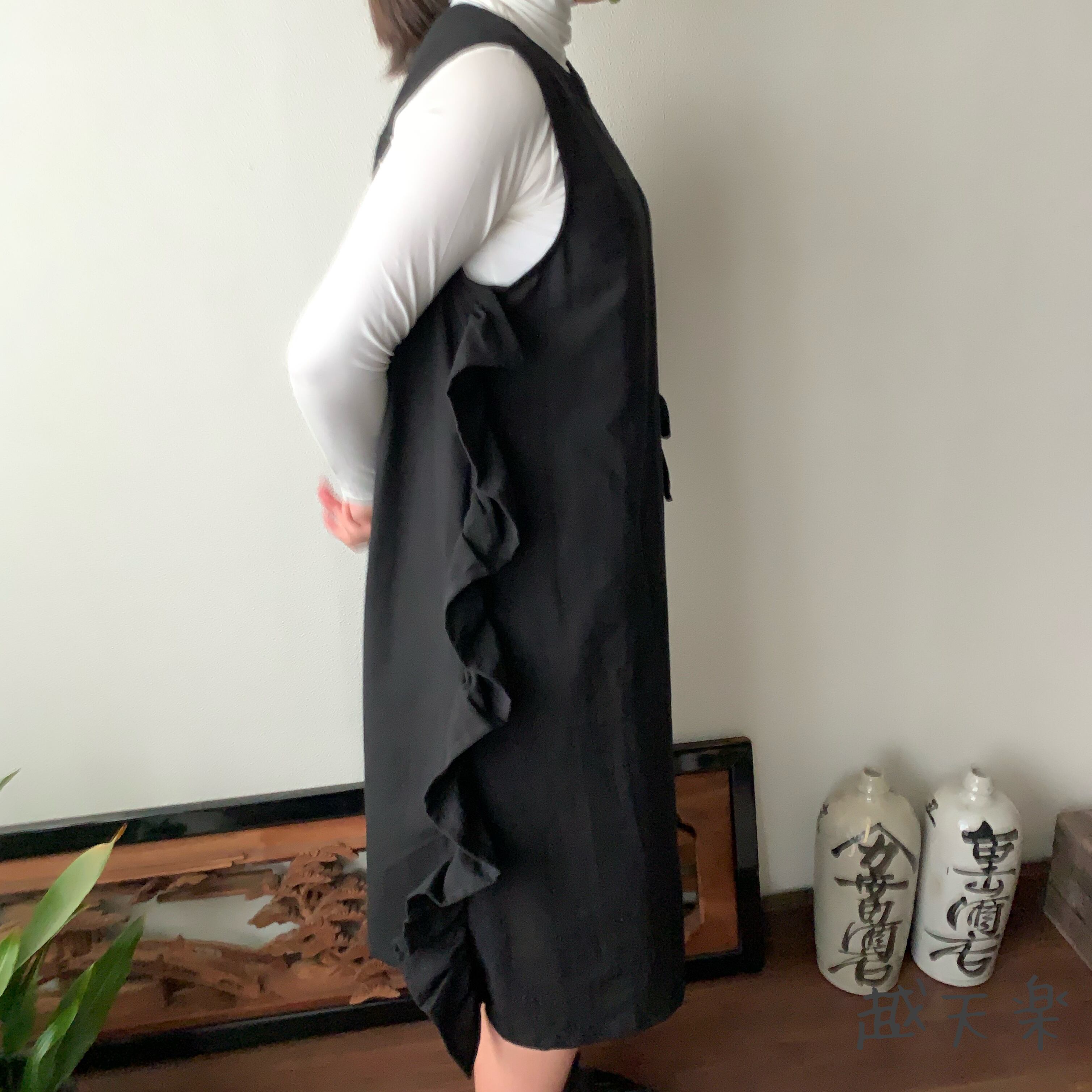 『サイドフリルとサイドリボンとハイウエストの贅沢手織り綿ワンピース 全方位遊び心のアクセント満載なワンピース』