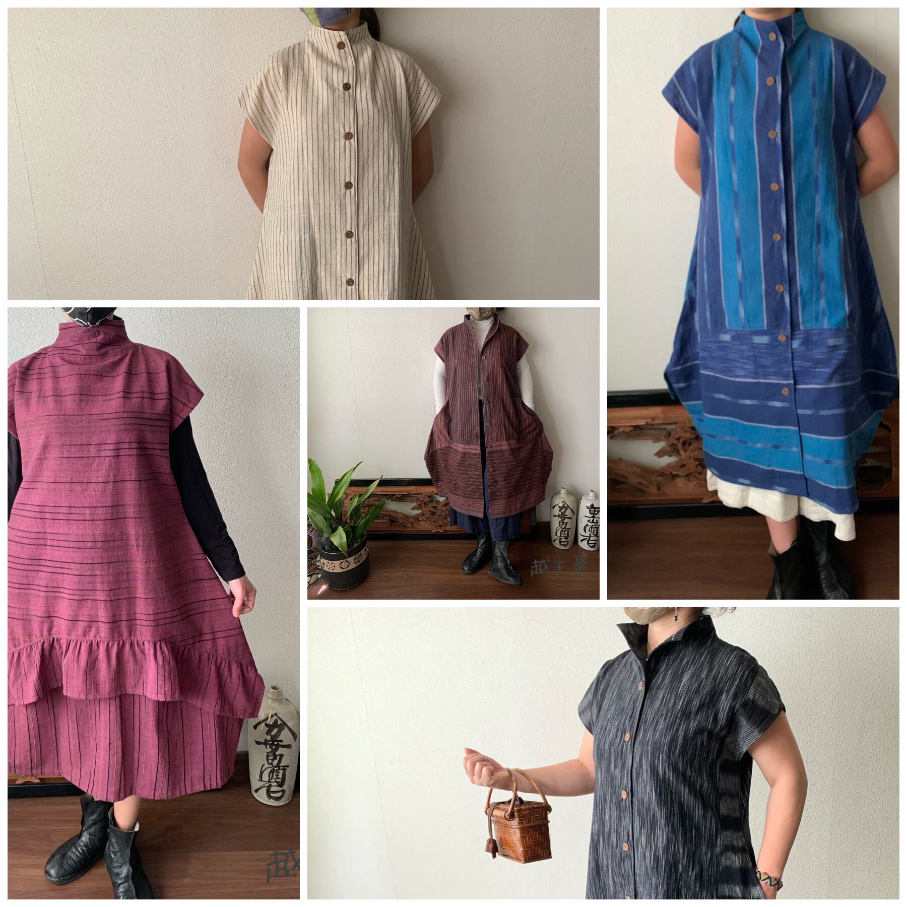 ボタンの開く方を前面に着ていただくようデザインしていますが、前後逆に着ていただいても、また違った表情を見せてくれる楽しい手織り綿のワンピースです。