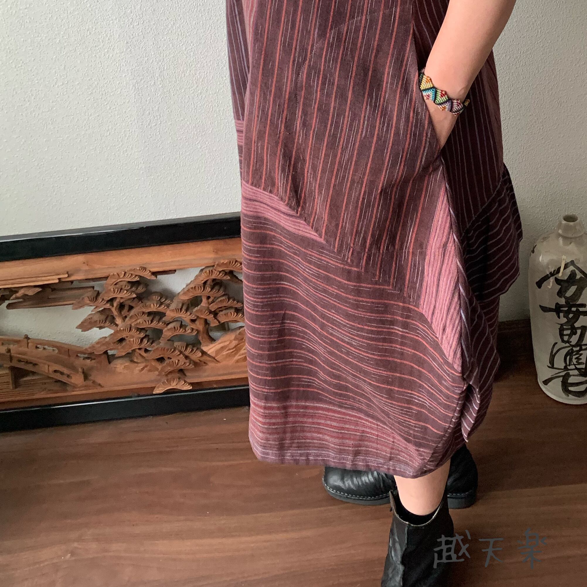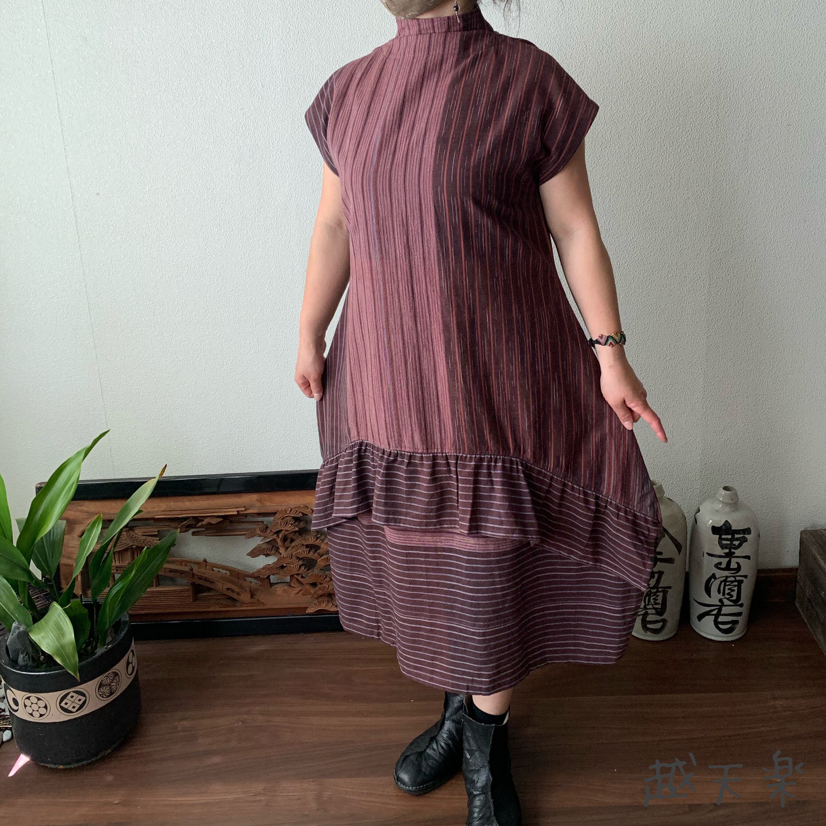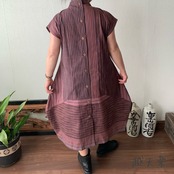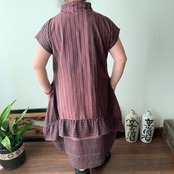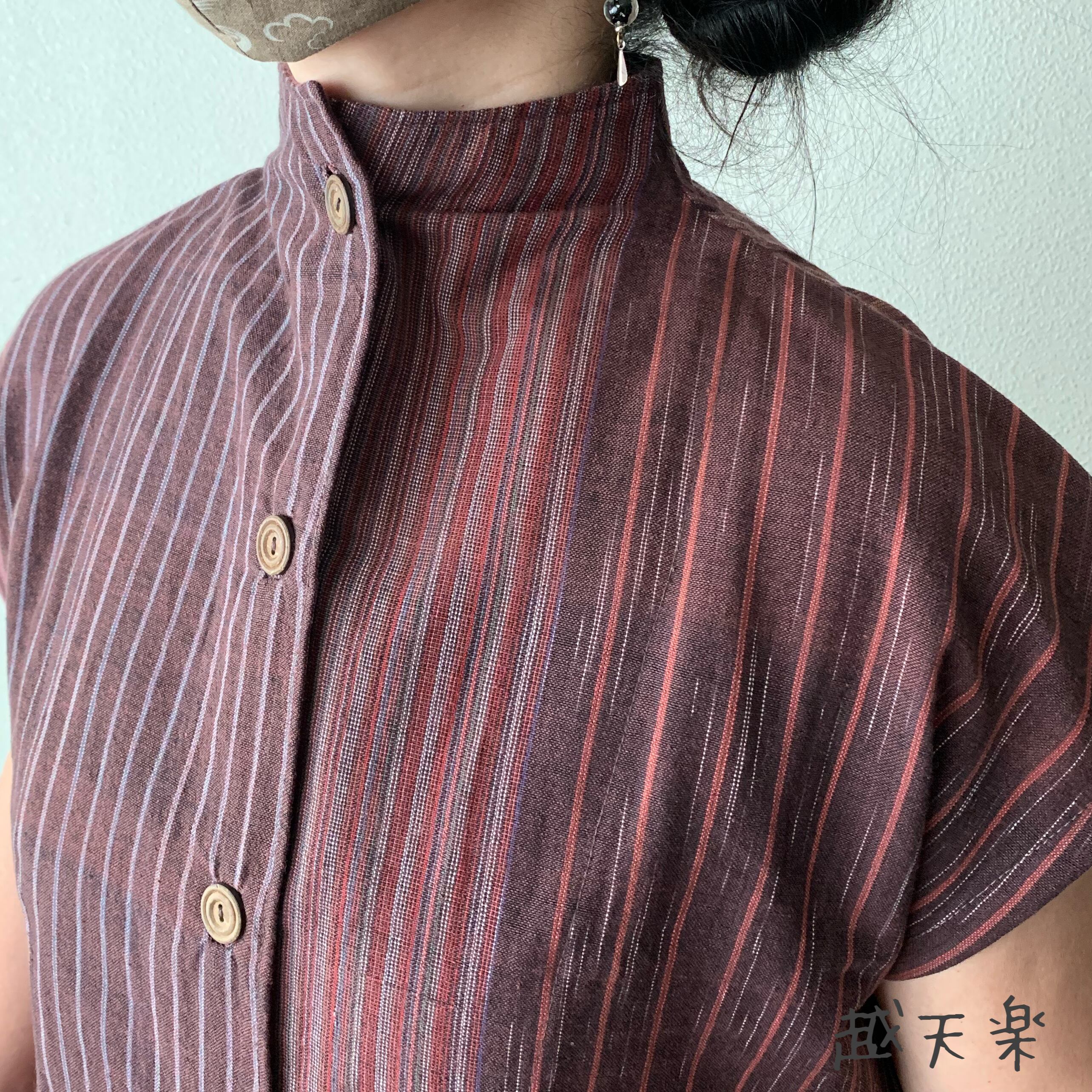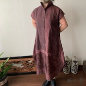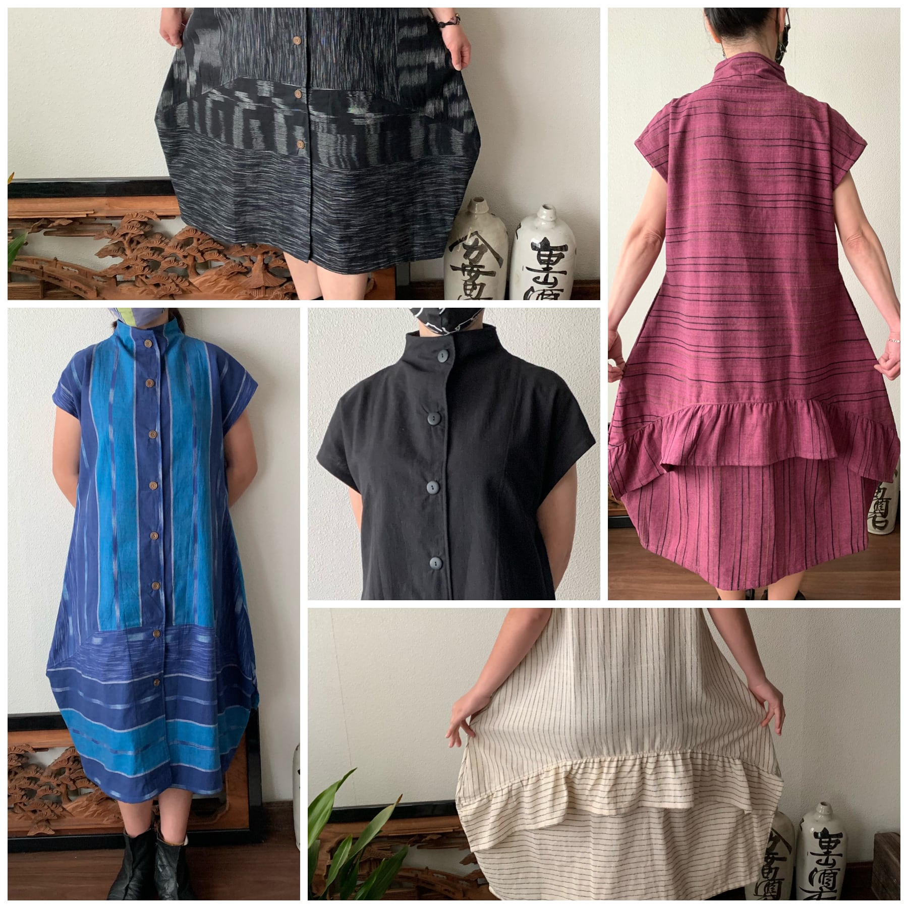 ボタンの開く方を前面に着ていただくようデザインしていますが、前後逆に着ていただいても、また違った表情を見せてくれる楽しい手織り綿のワンピースです。