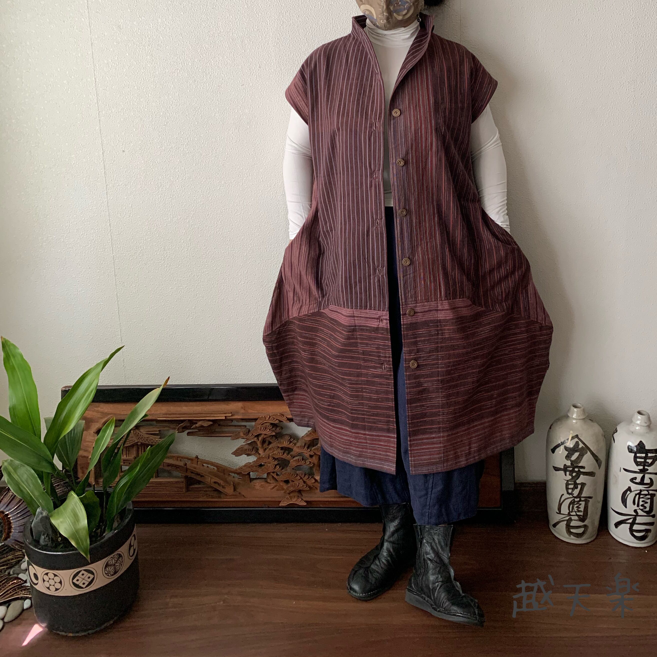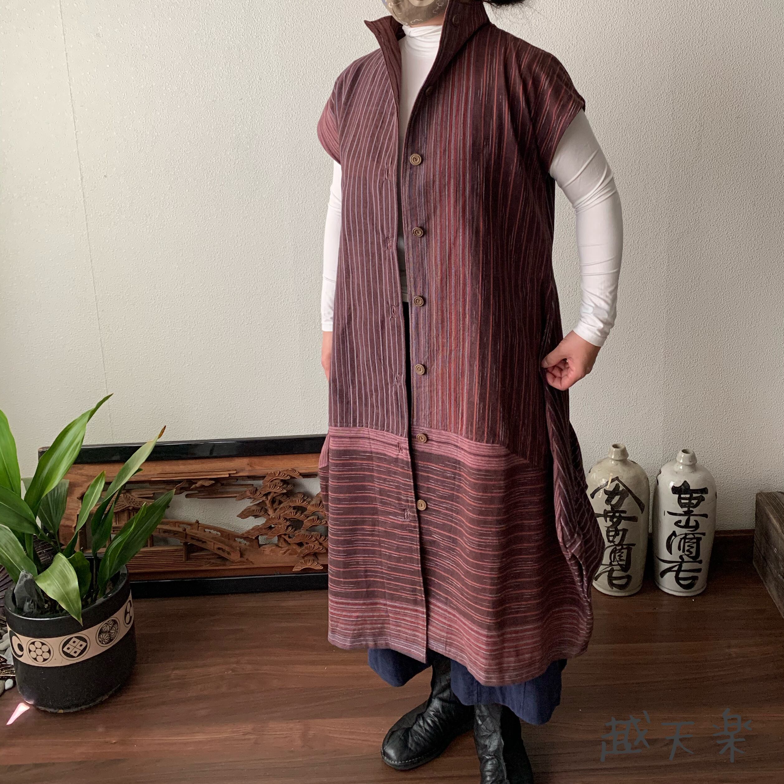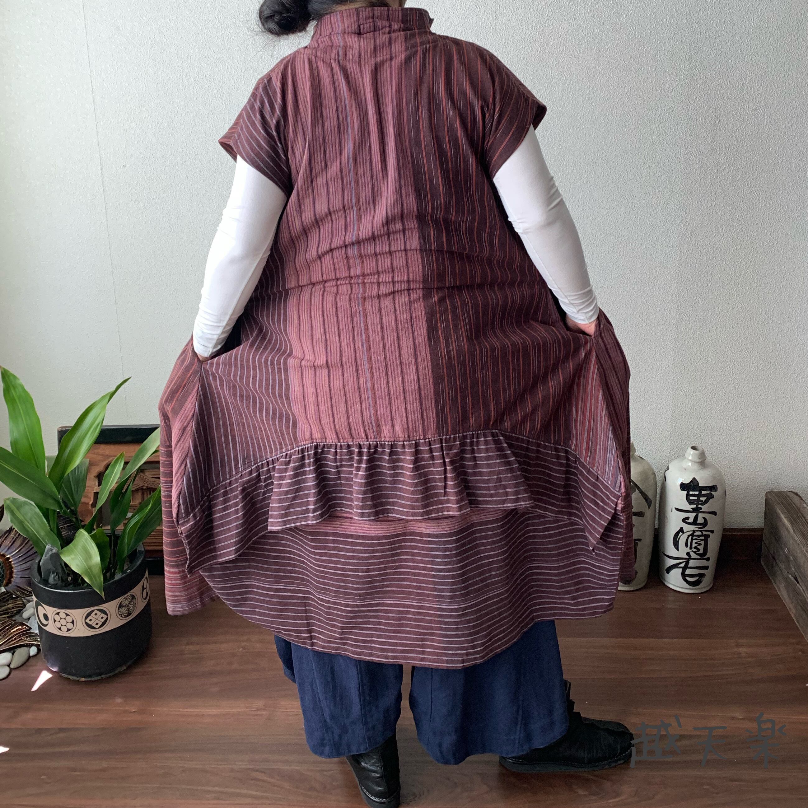 襟のハイネックが首筋をきれいにカバーしてくれ、中にタートル等着こなしても楽しめますし、フレンチスリーブなので一枚でも着やすいです。前を開いて着用する時は長めの羽織やロングベストとしても遊んでいただけます。