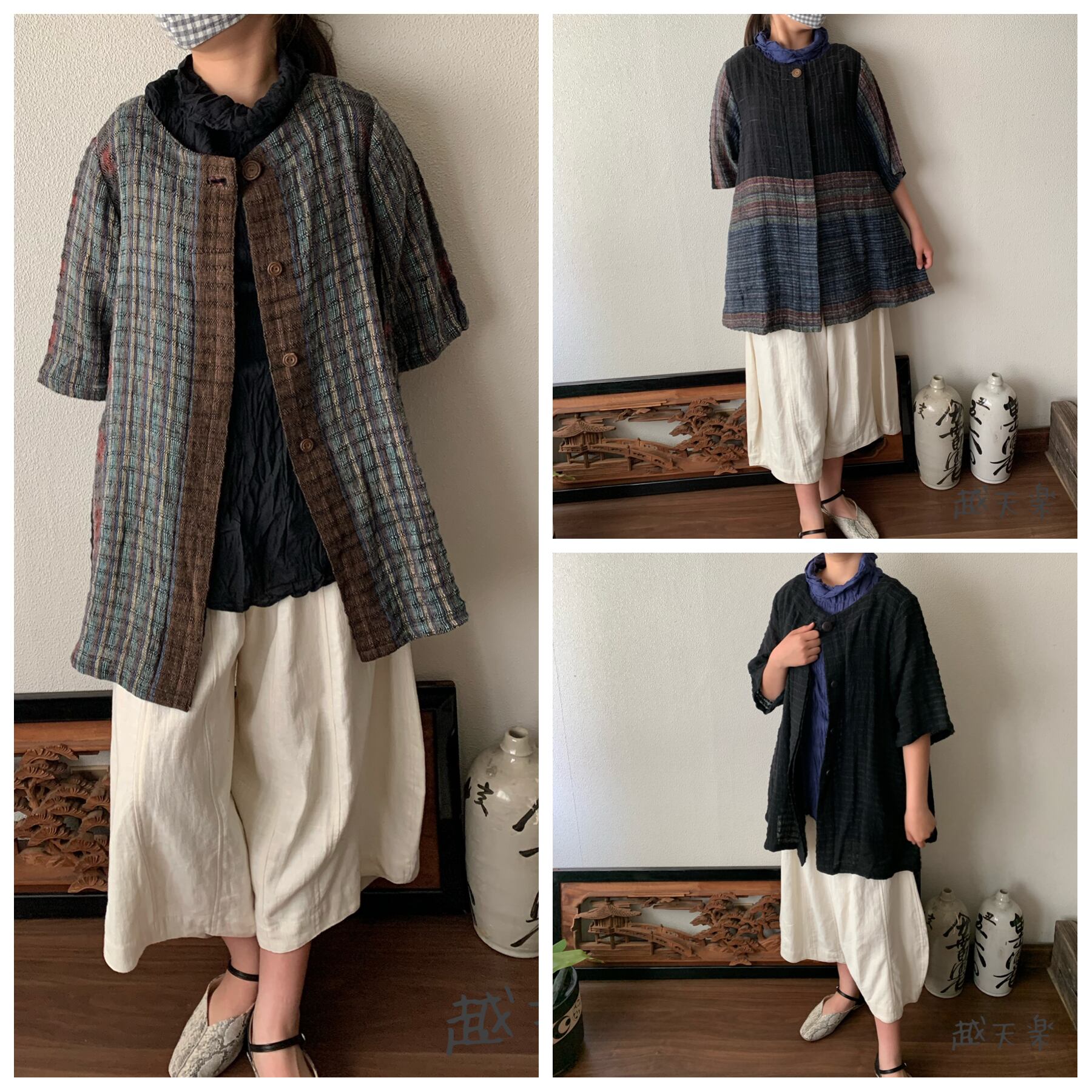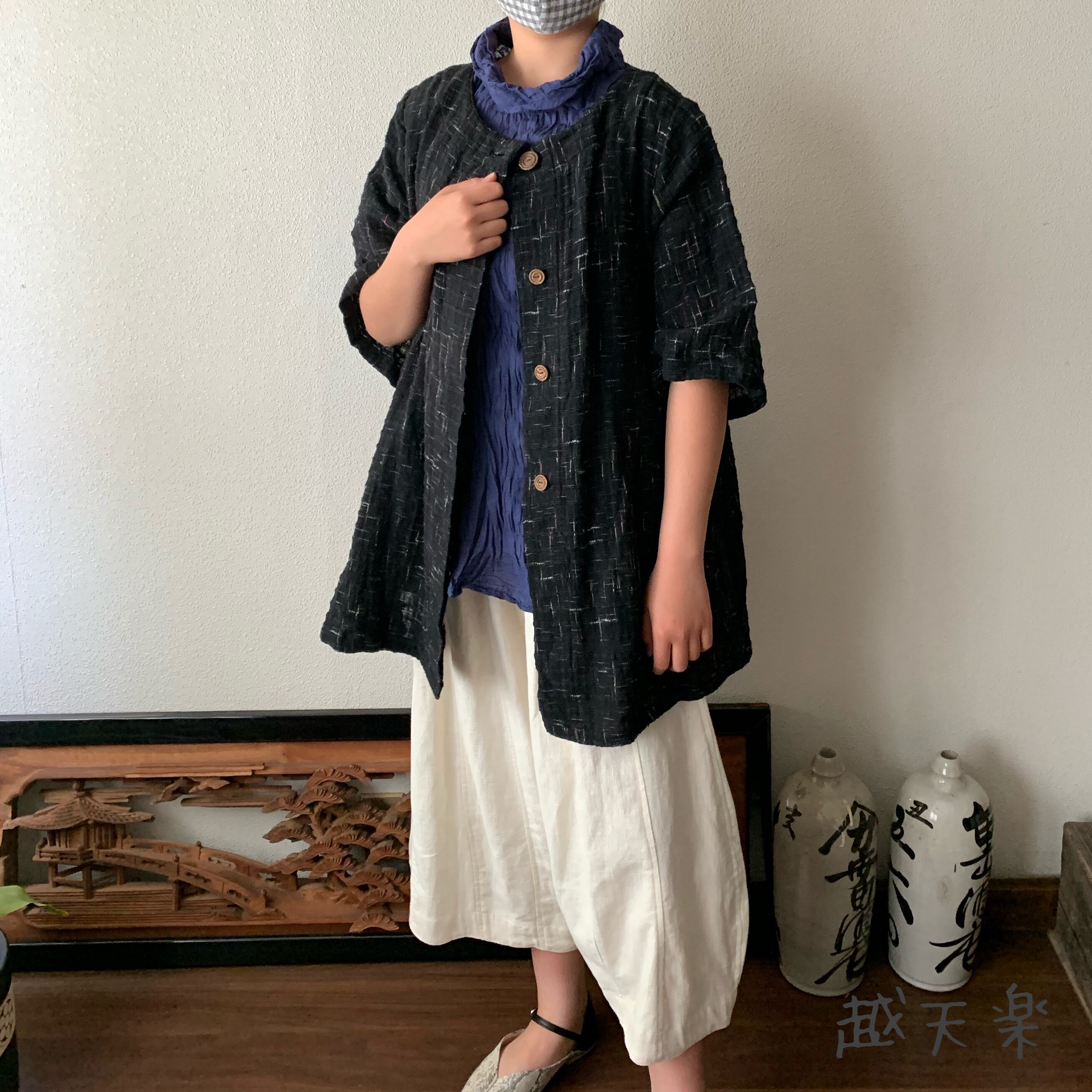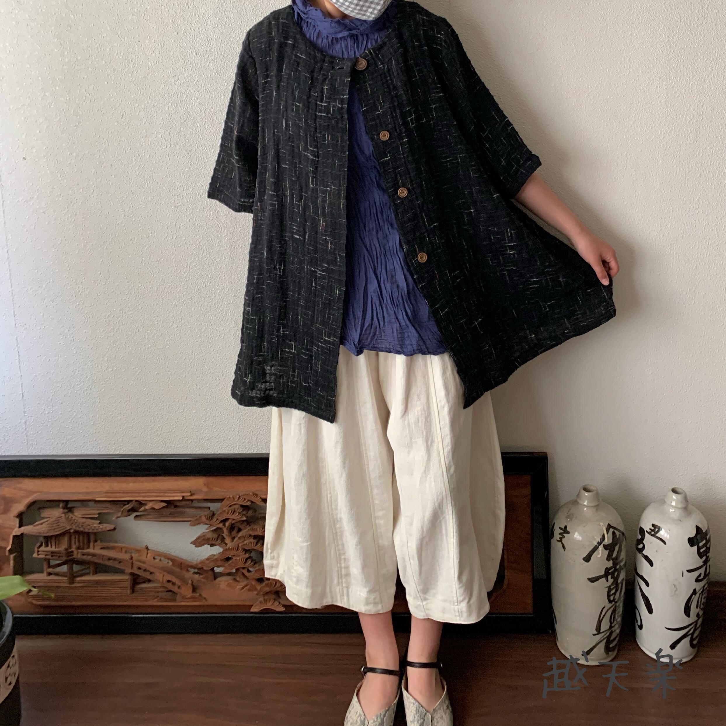 『バックサイドティアードが楽しい前開き手織り綿チュニックブラウス 隠しボタンと丸襟ですっきり着こなし』
