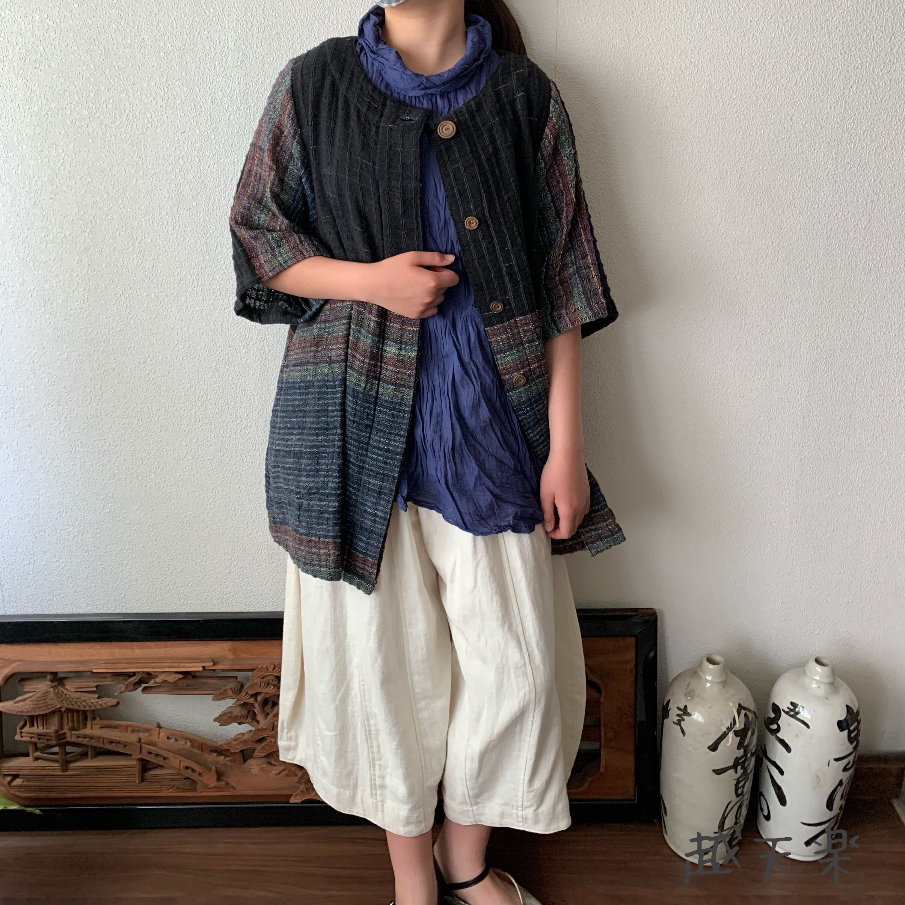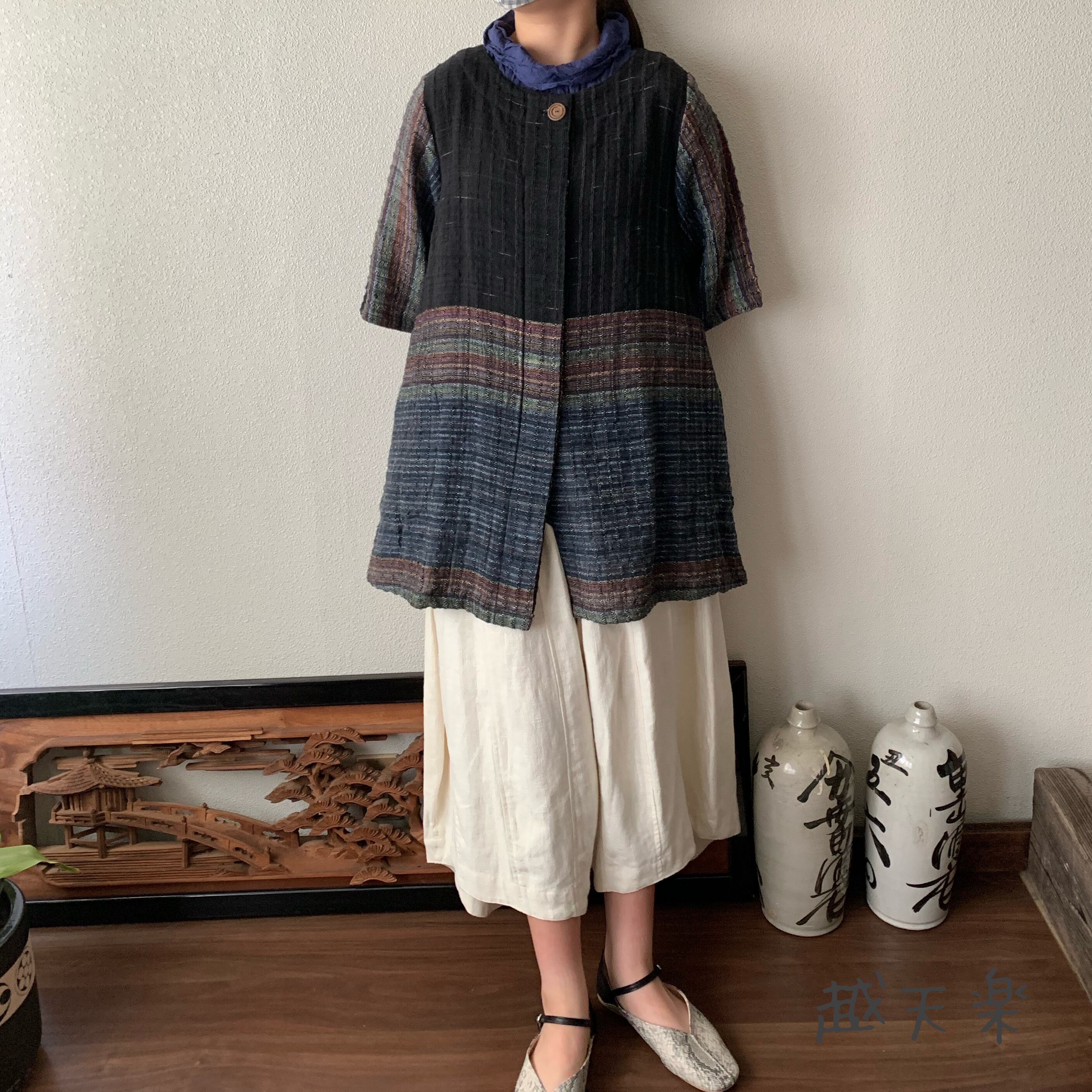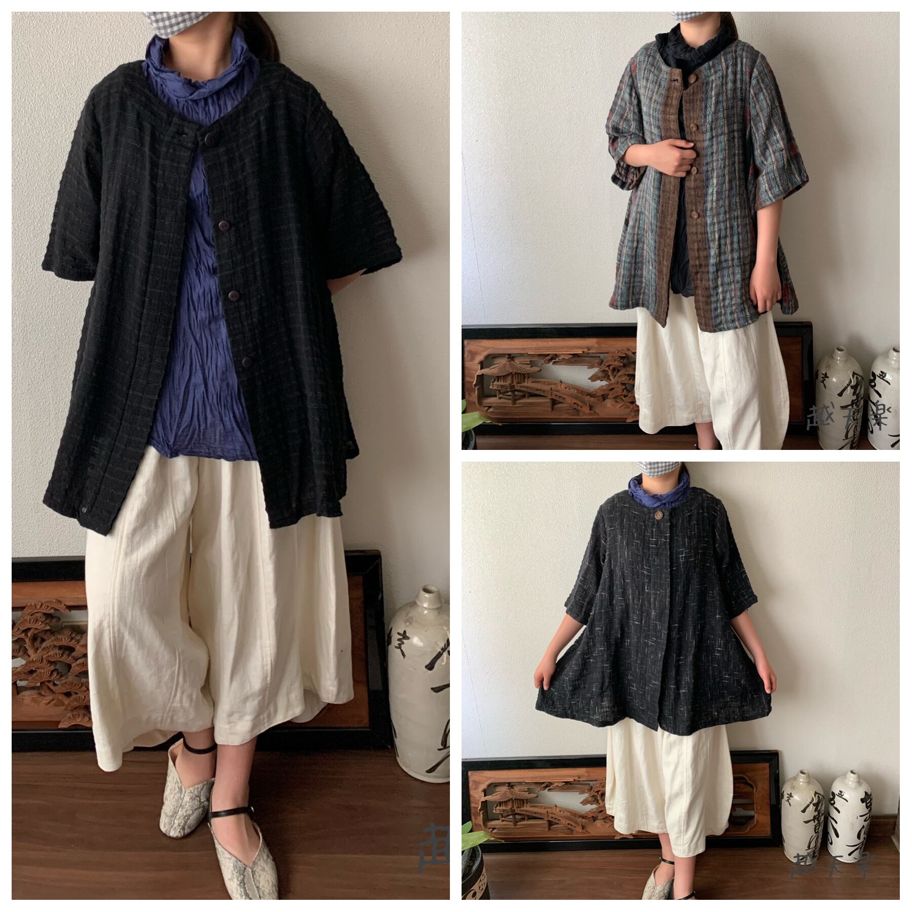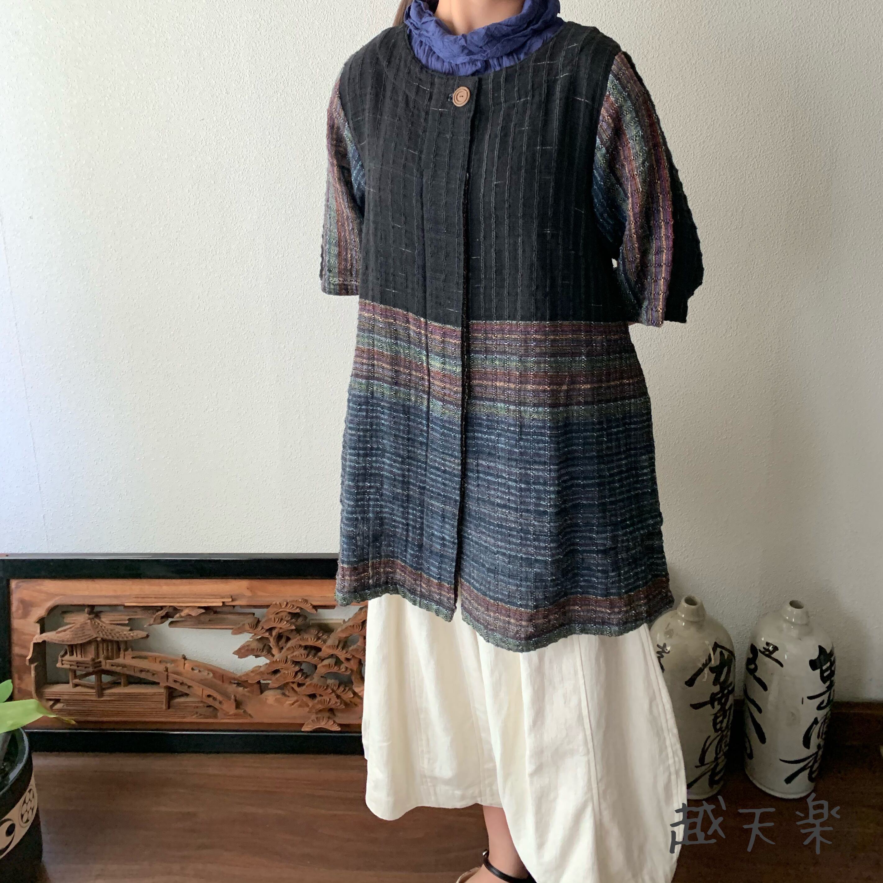 『バックサイドティアードが楽しい前開き手織り綿チュニックブラウス 隠しボタンと丸襟ですっきり着こなし』