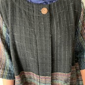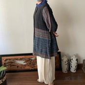 前を開いてジャケットとして羽織っても使えますし、前を留めると隠しボタンですっきりとチュニックとしても着ていただけます。
