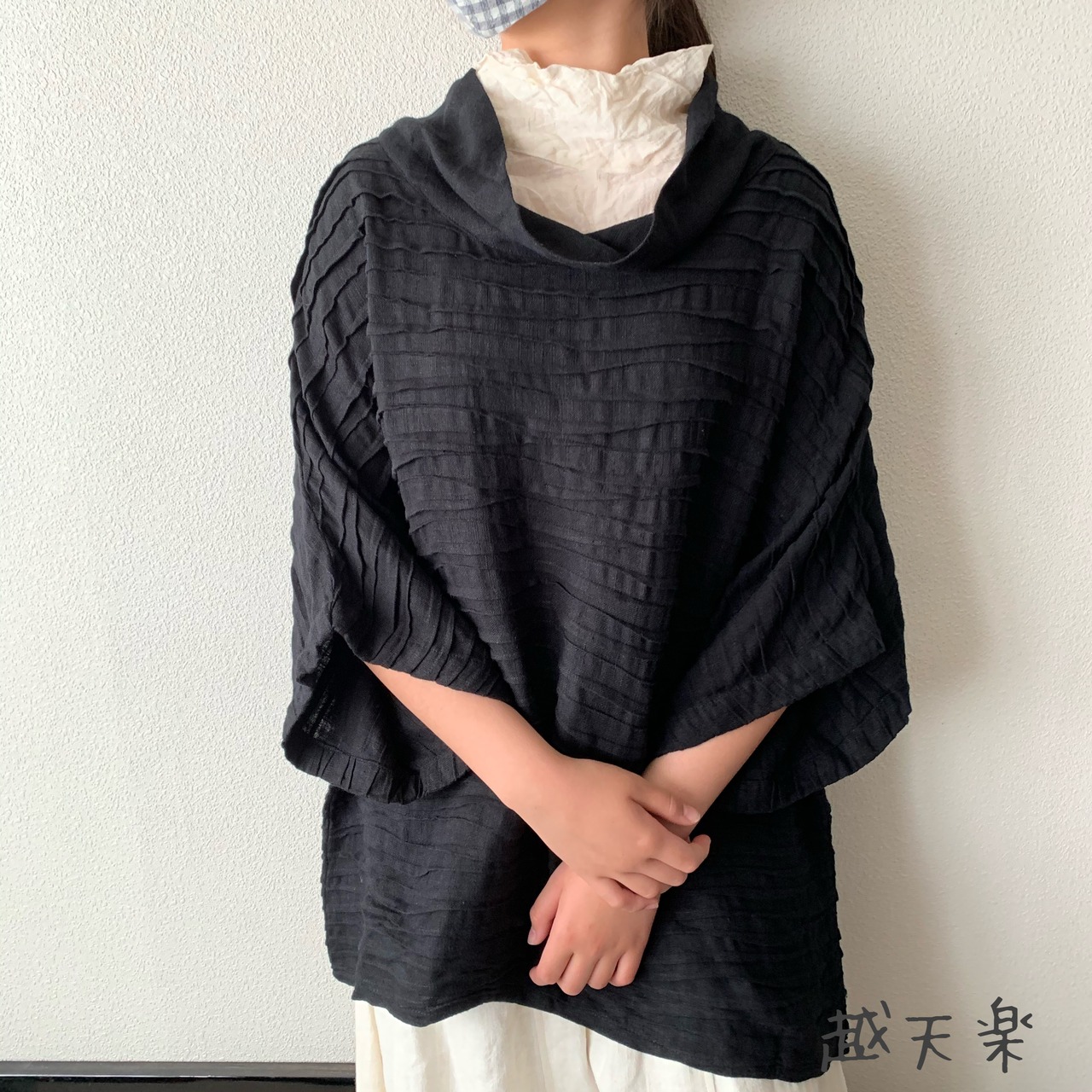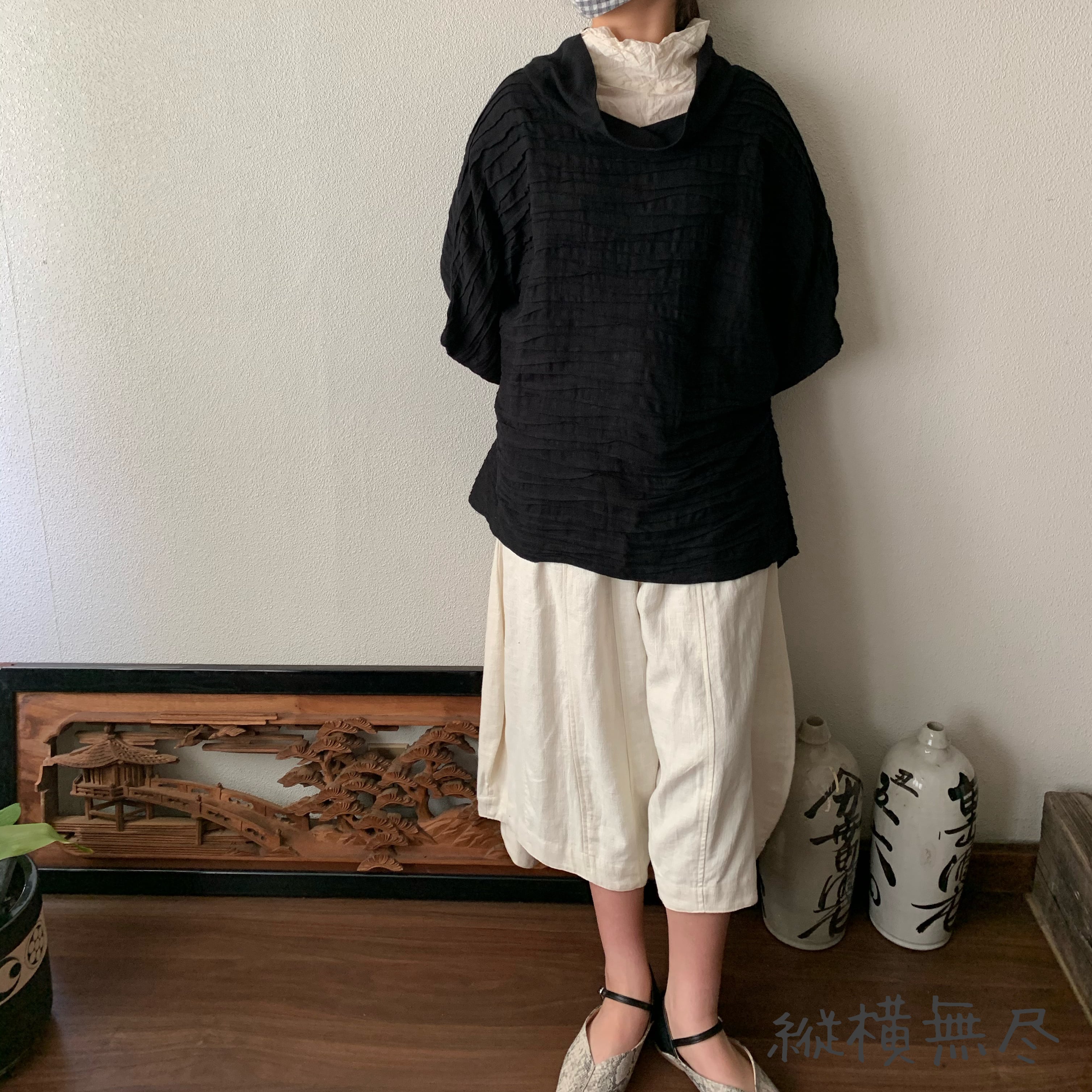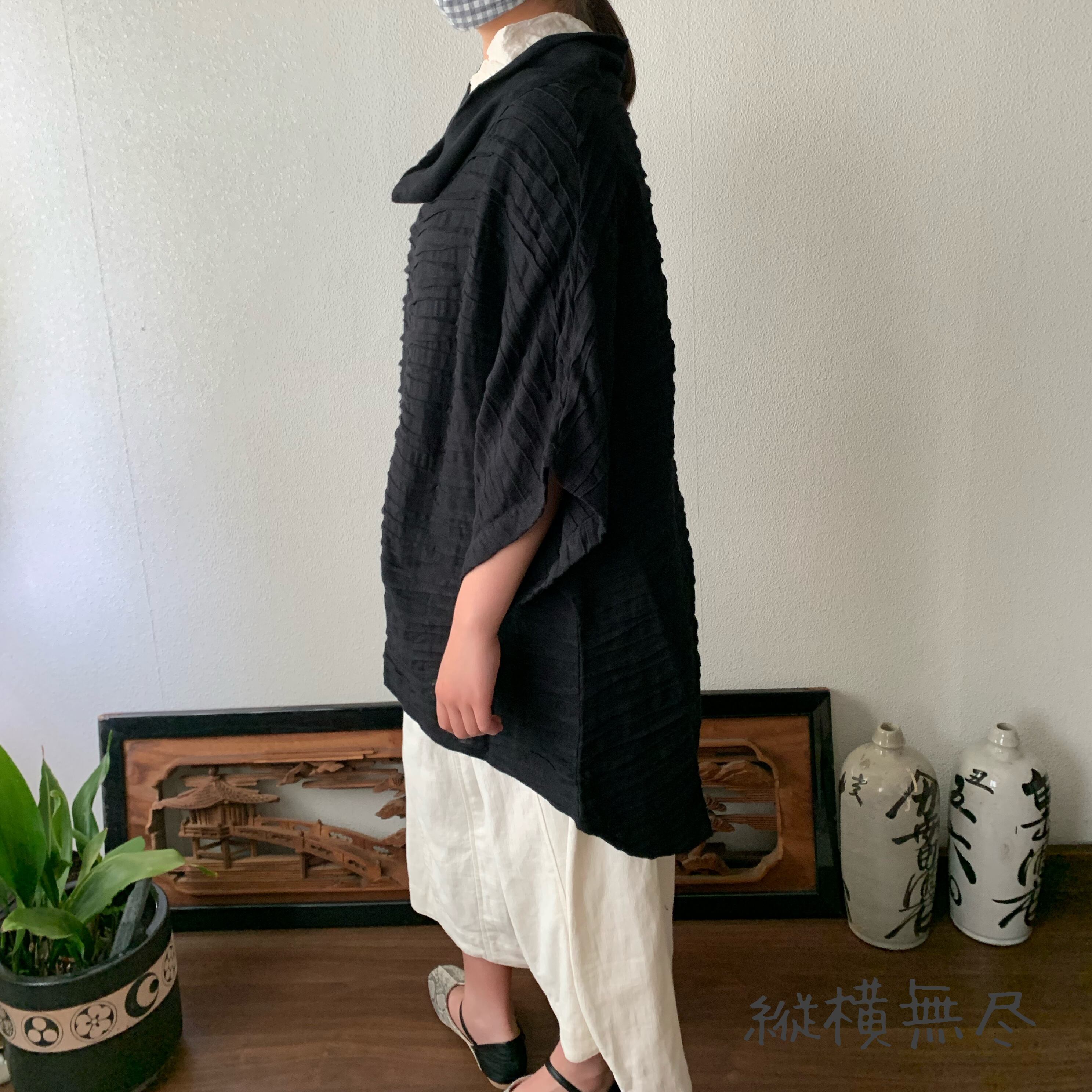 『総ピンタックが贅沢なヘンプのチュニック ラグラン袖と長めの後ろ裾でシルエットも個性的に』