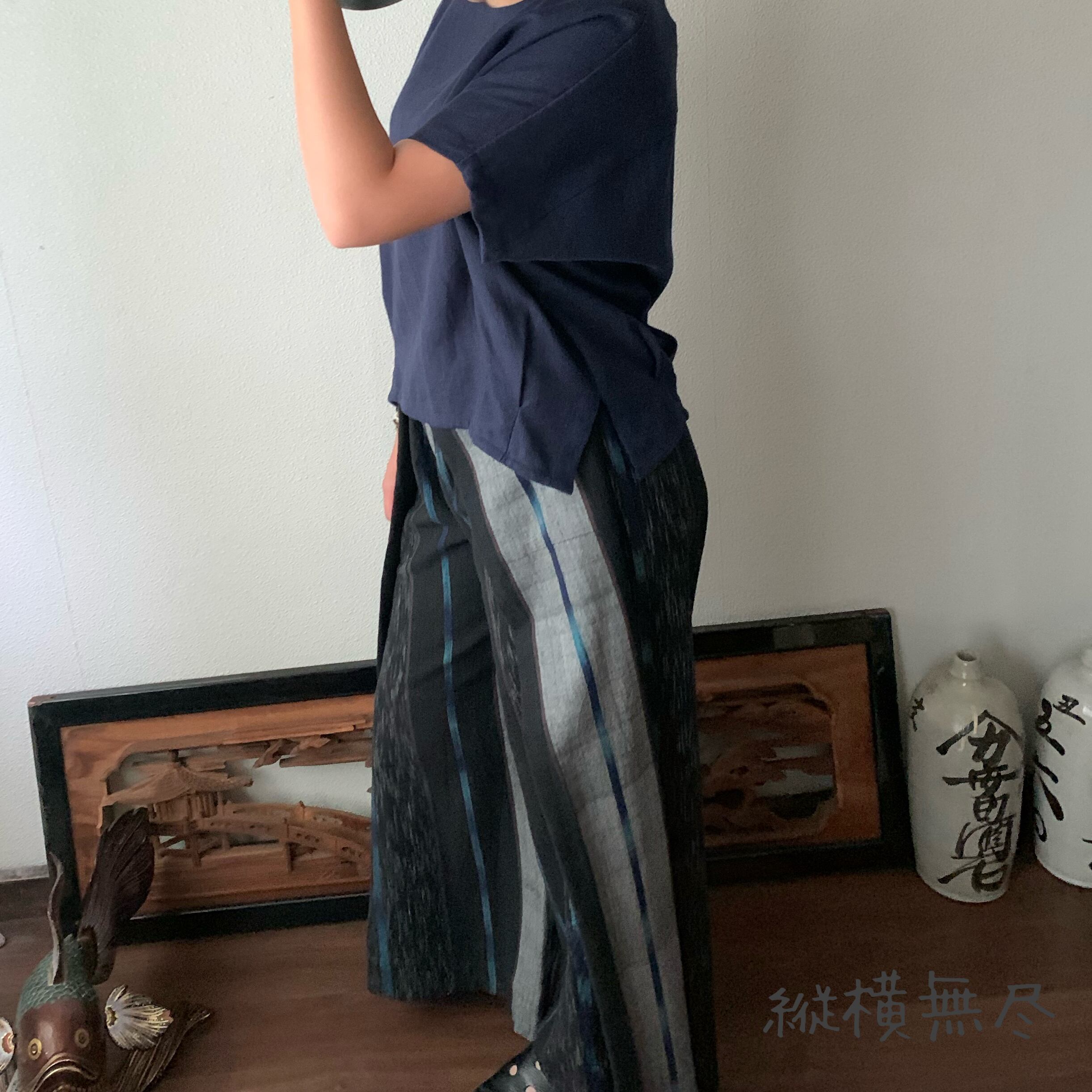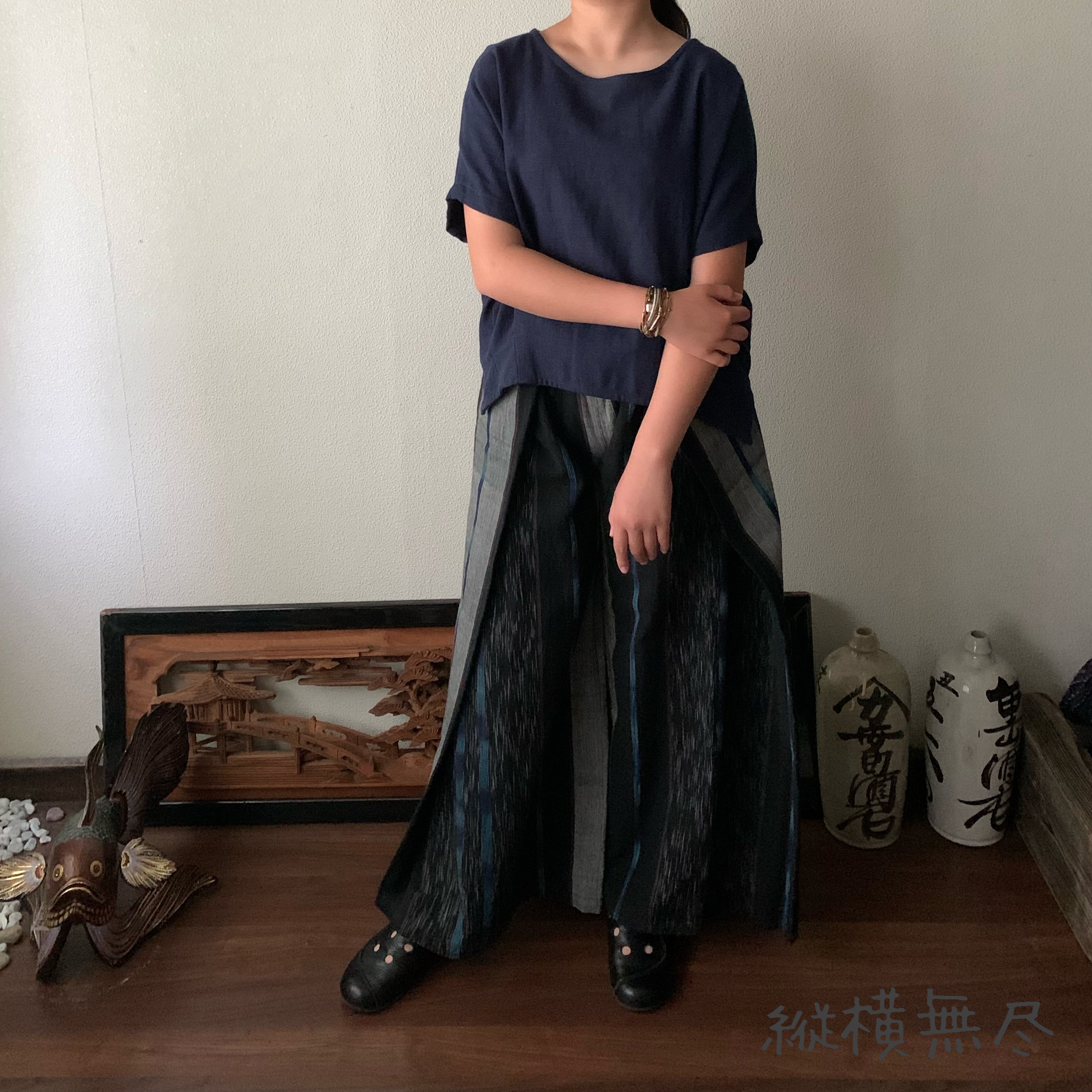 写真セットで履いている手織り綿のガウチョパンツはこちら↓