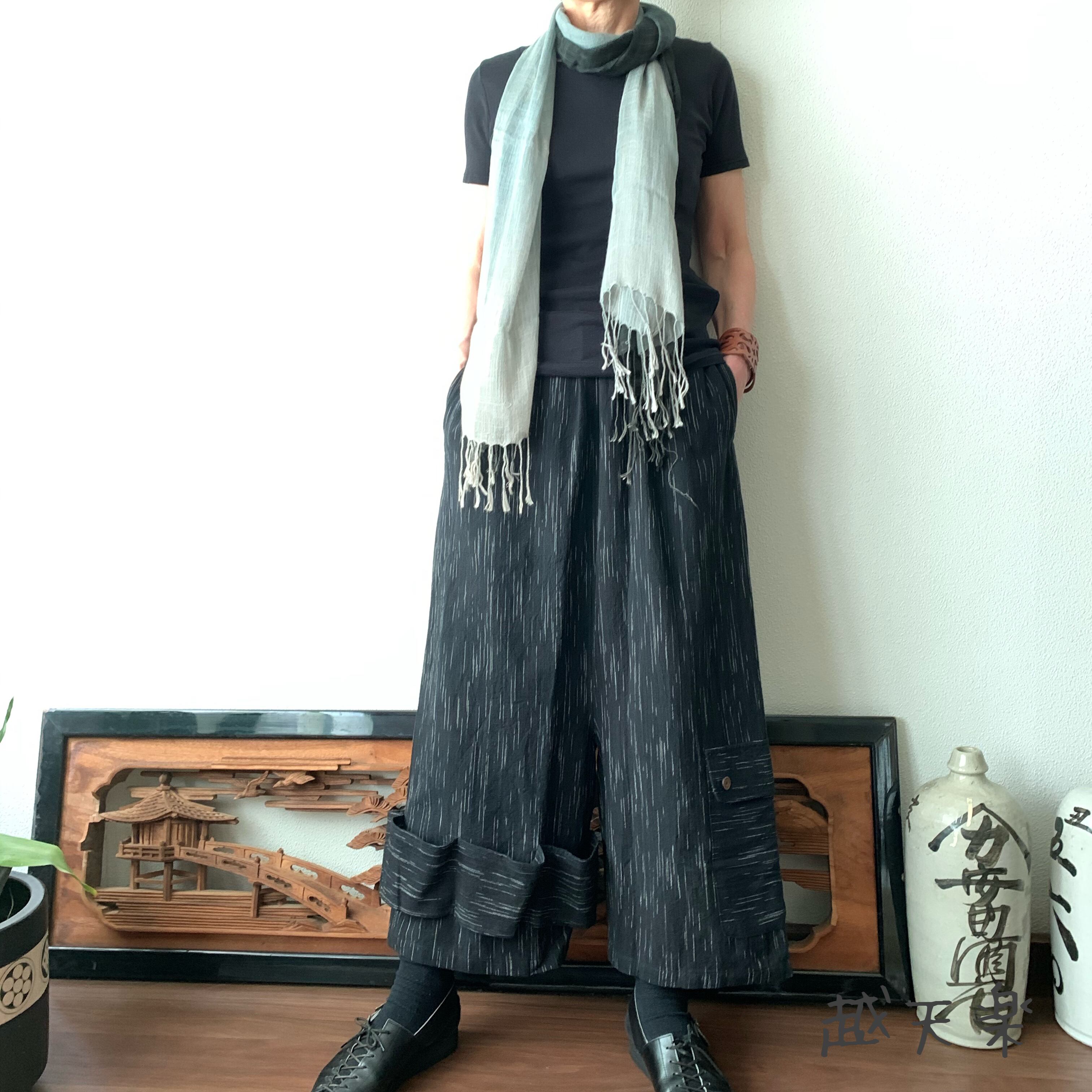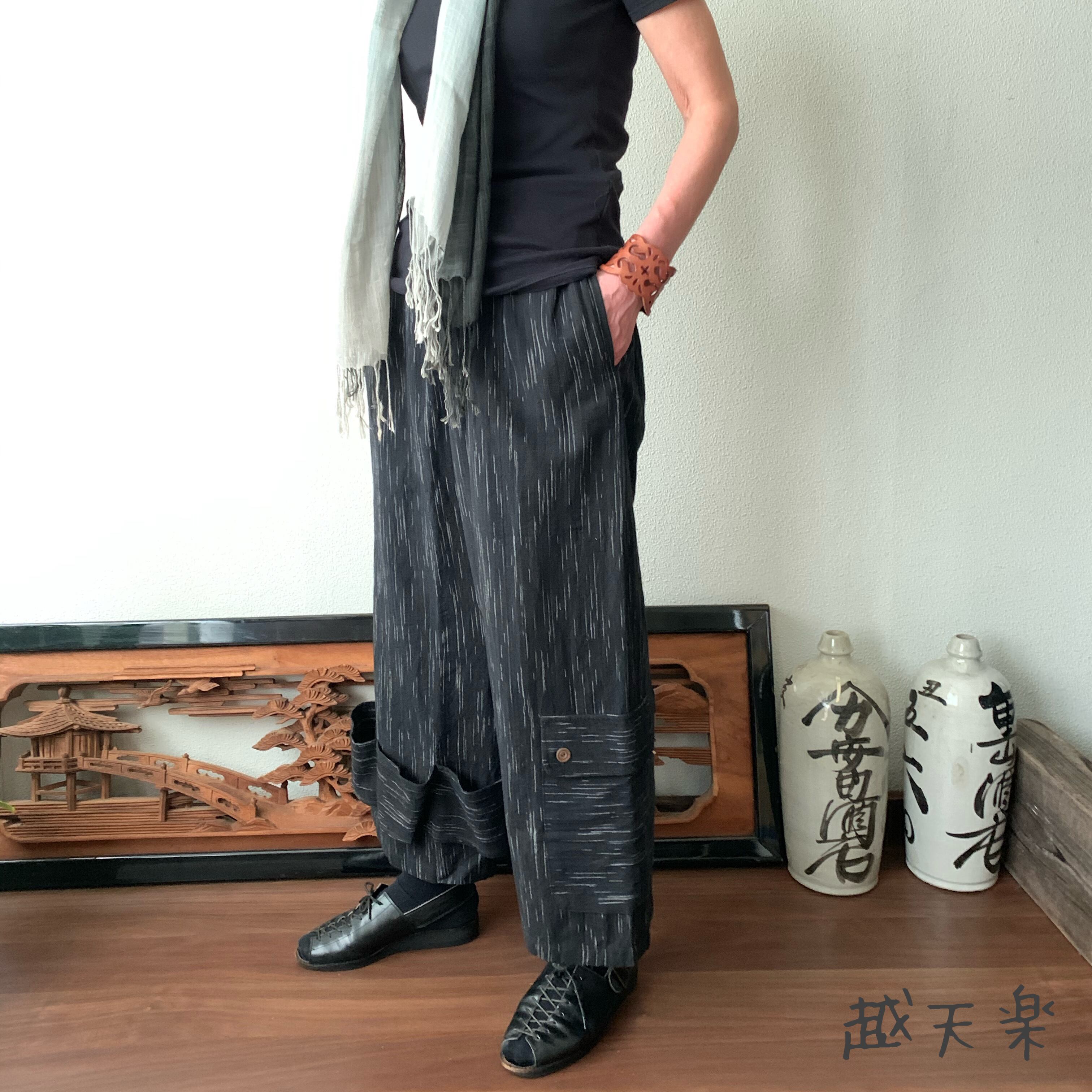 『越天楽おしゃれ番長ご用達!変形サルエル手織り綿パンツ 大きく足を広げることはできないけど履くとカッコよさ抜群』