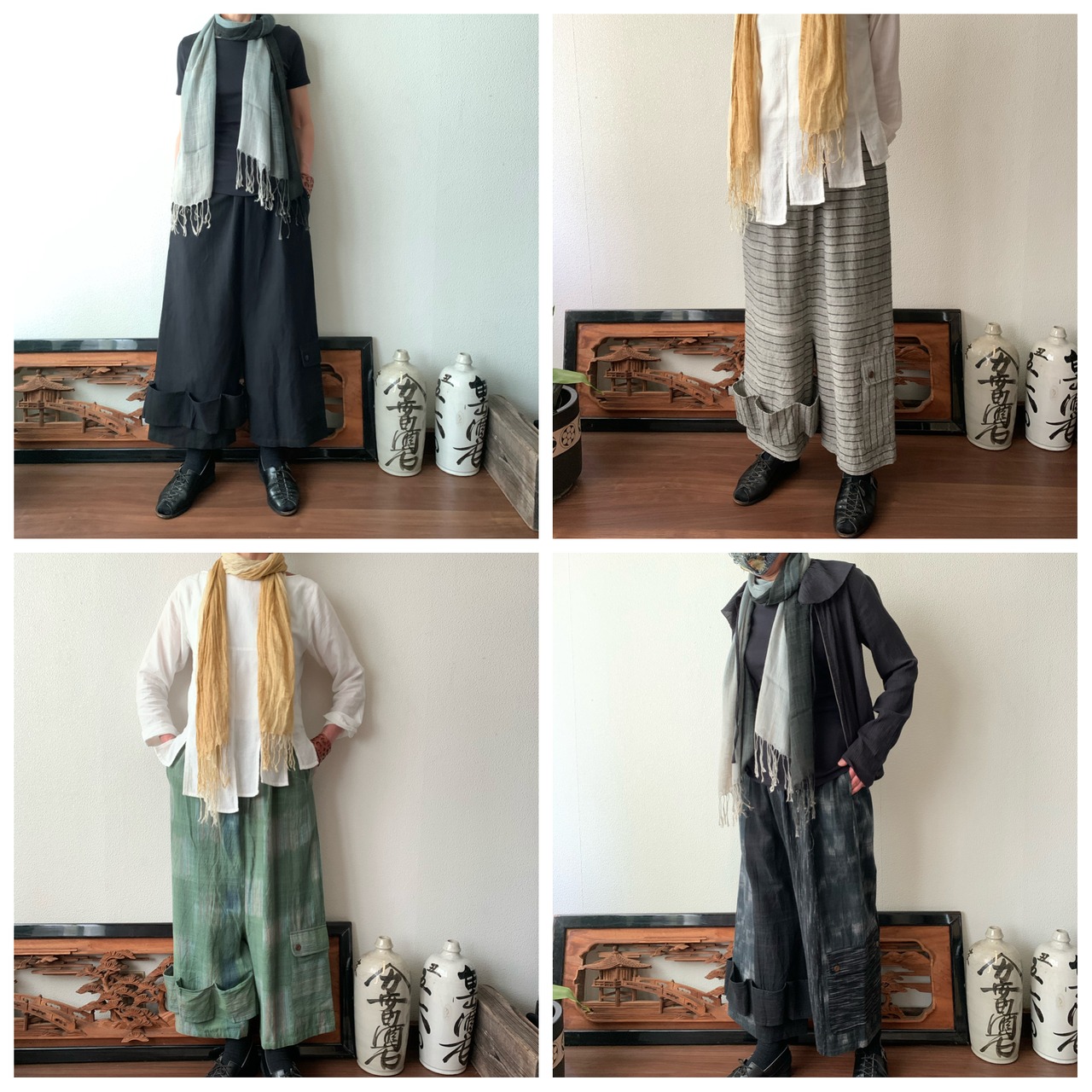 手織り綿なので、夏にサンダルと合わせても良し、秋冬にレギンスの上にはきブーツを合わせてもかっこいいです。