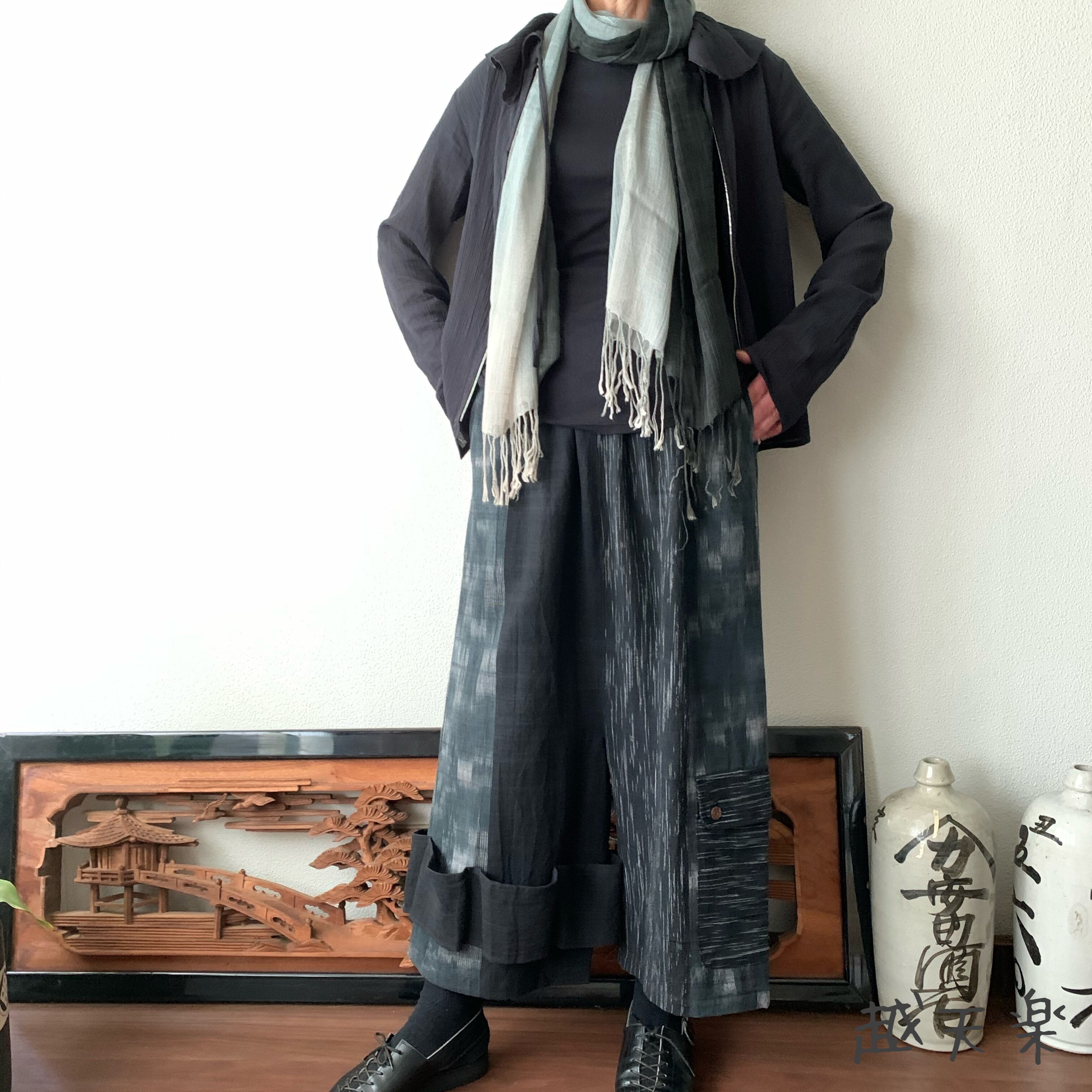 『越天楽おしゃれ番長ご用達!変形サルエル手織り綿パンツ 大きく足を広げることはできないけど履くとカッコよさ抜群』