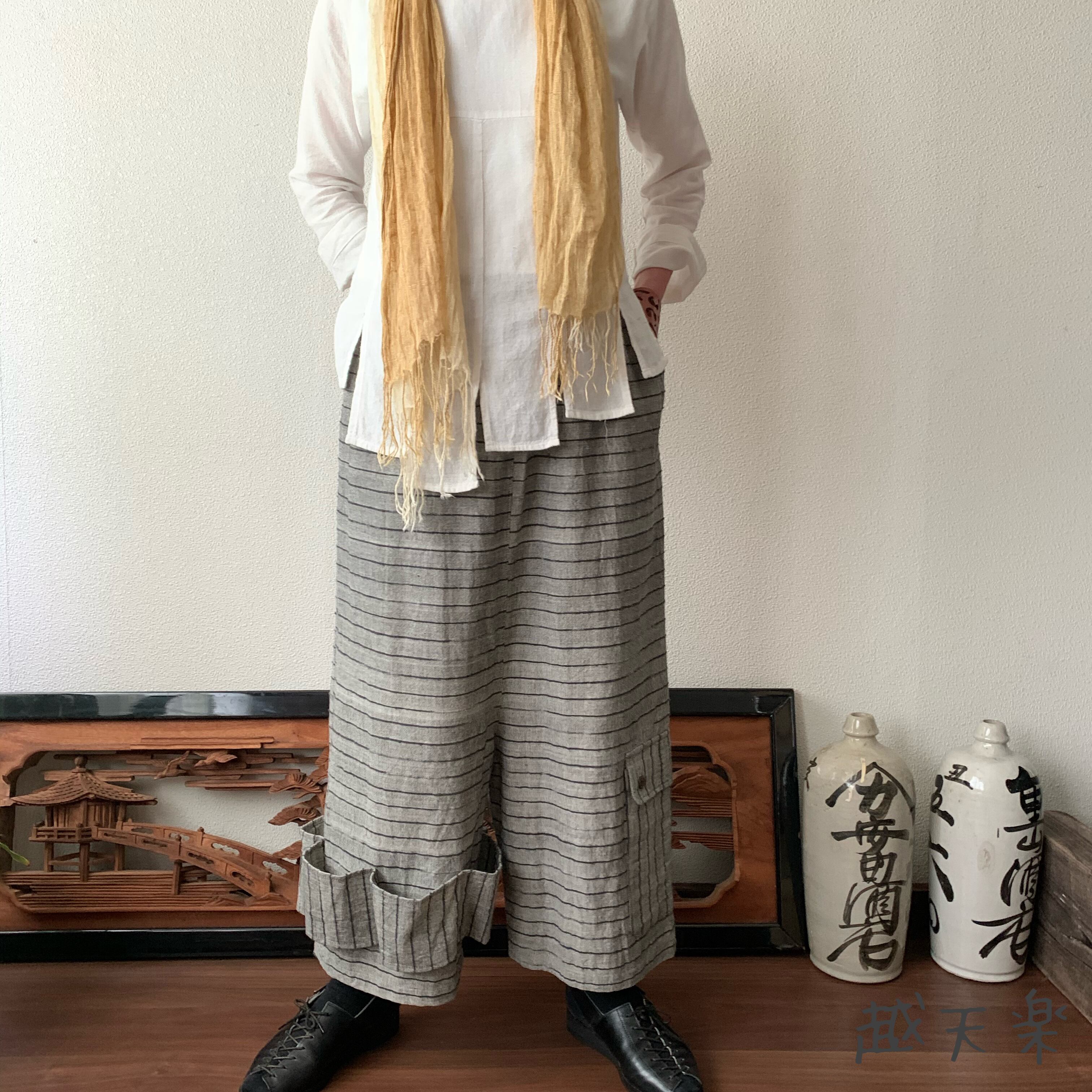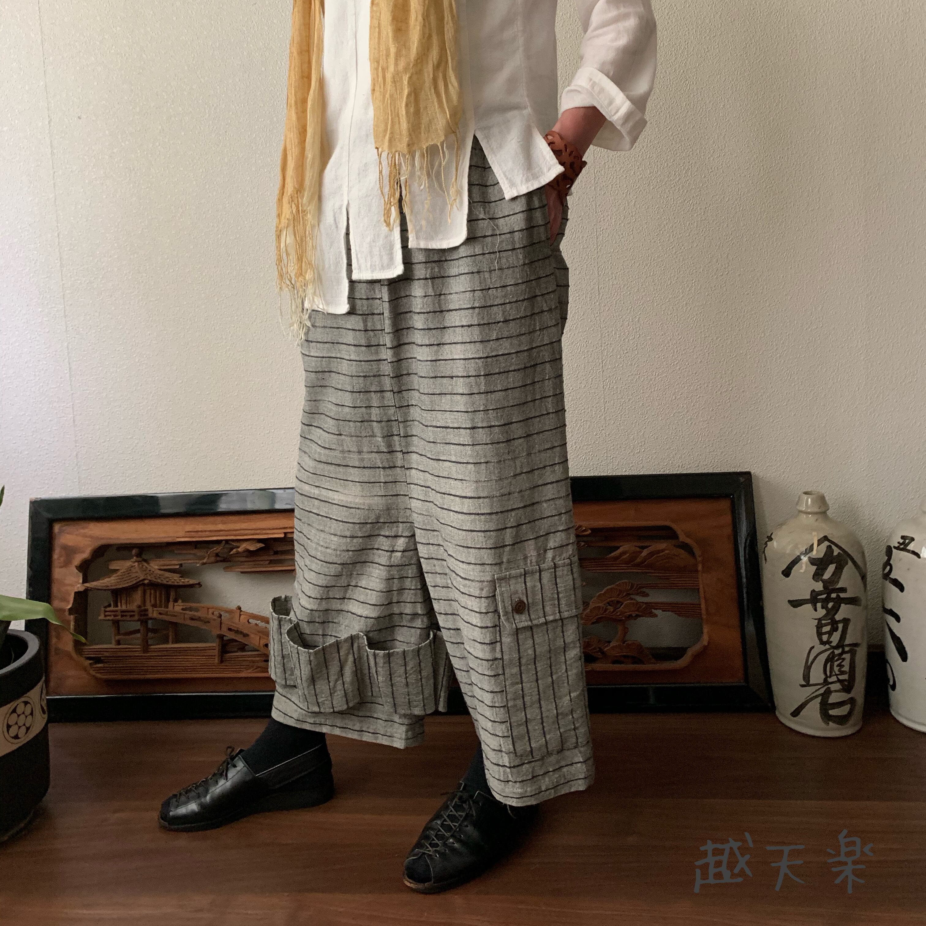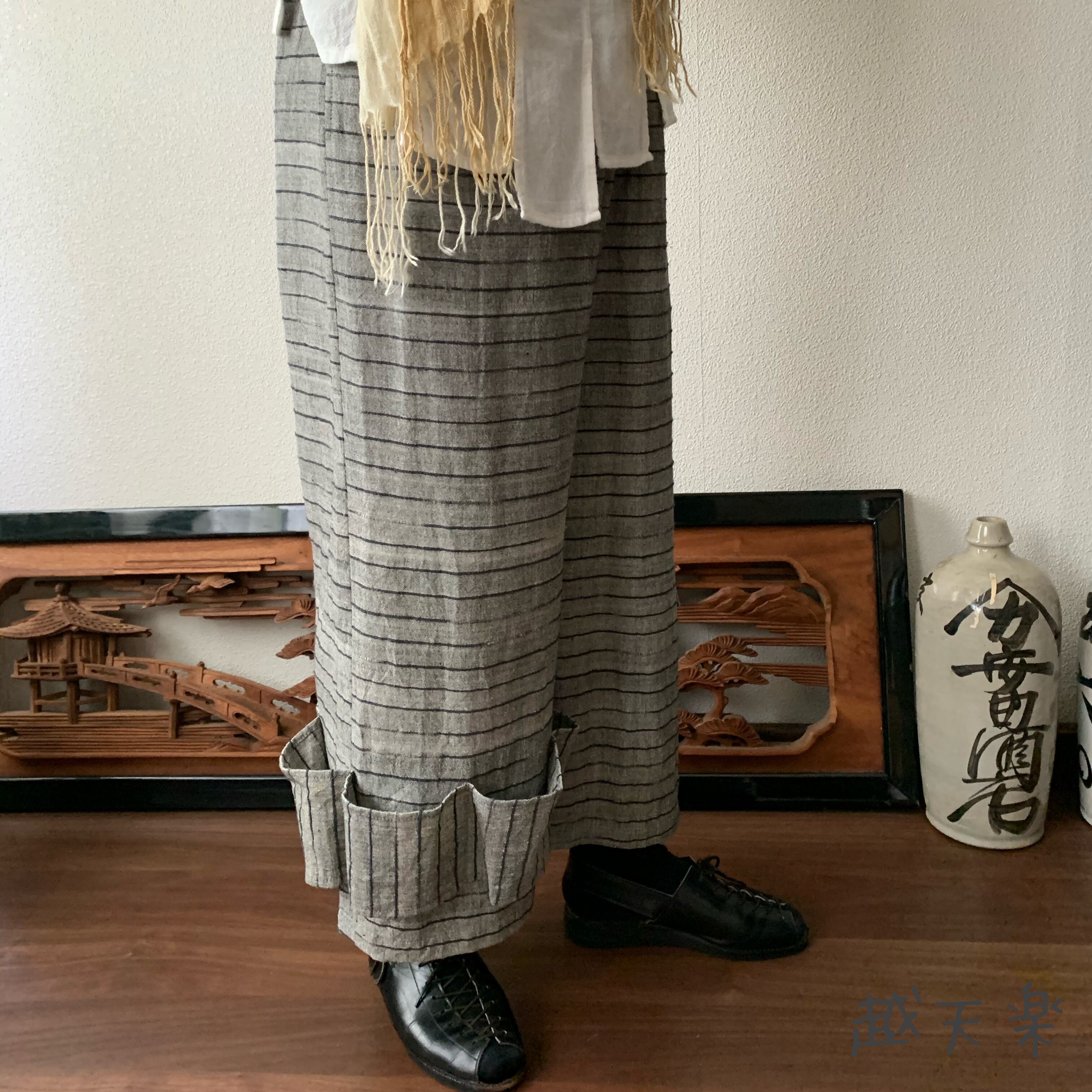 『越天楽おしゃれ番長ご用達!変形サルエル手織り綿パンツ 大きく足を広げることはできないけど履くとカッコよさ抜群』