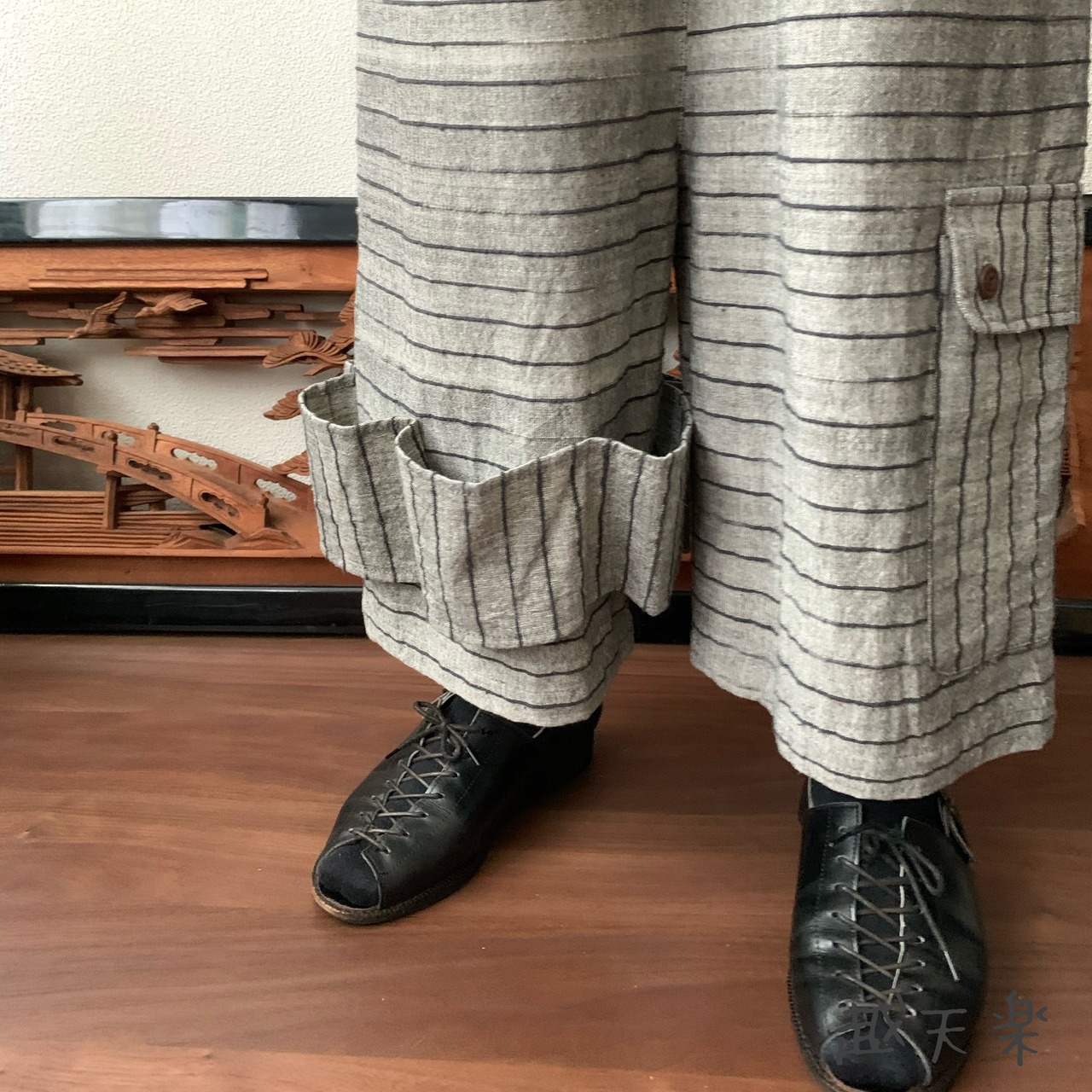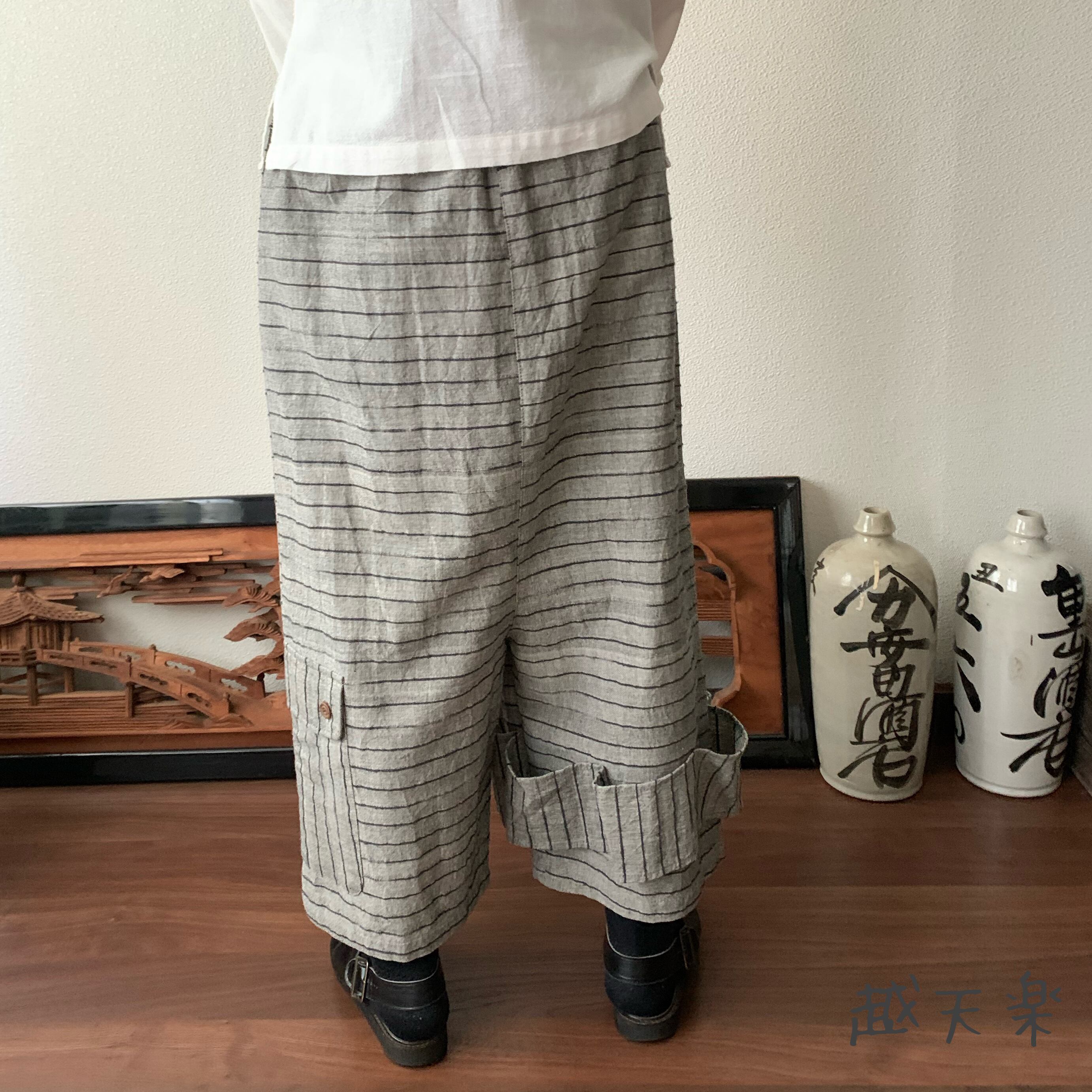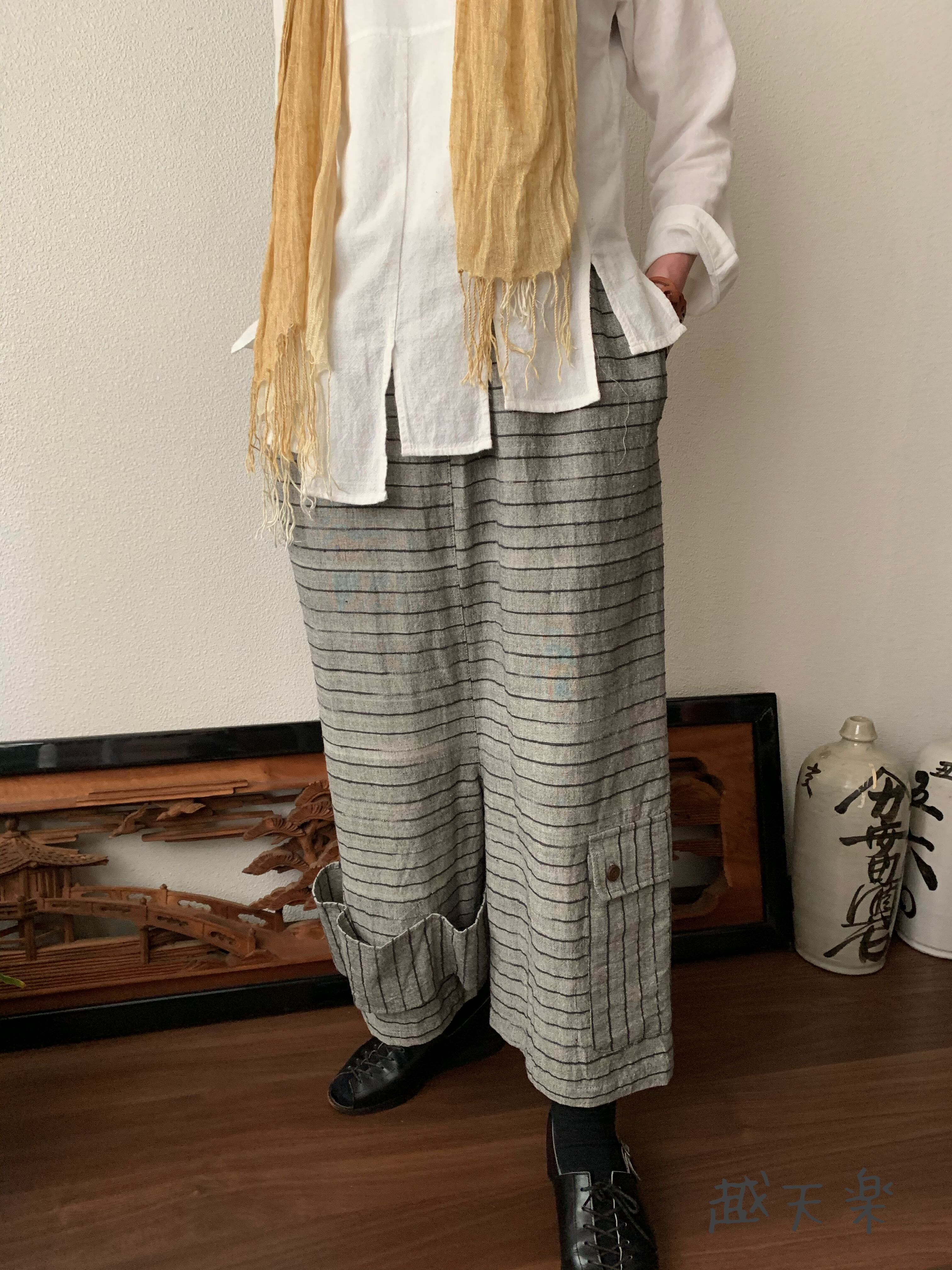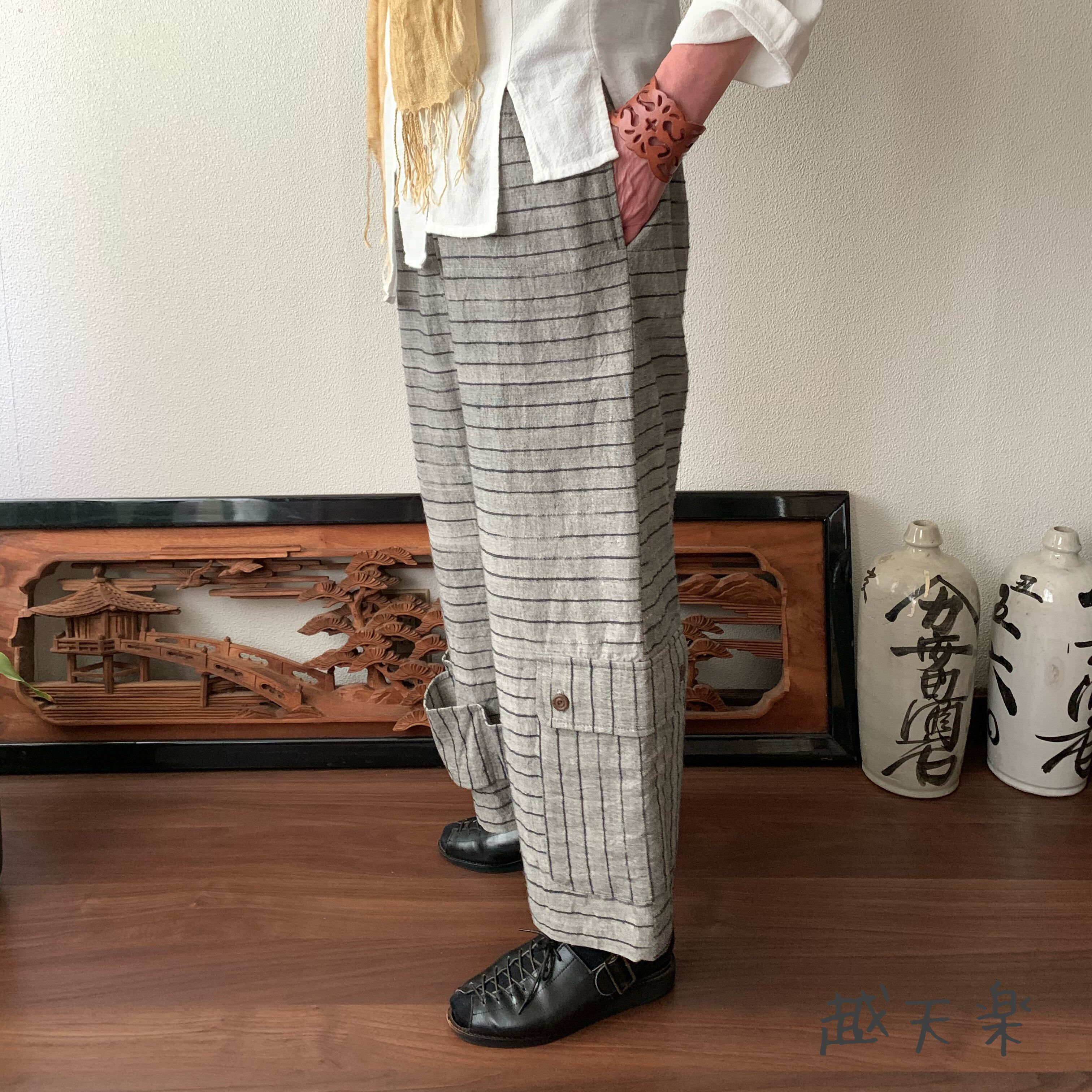 『越天楽おしゃれ番長ご用達!変形サルエル手織り綿パンツ 大きく足を広げることはできないけど履くとカッコよさ抜群』