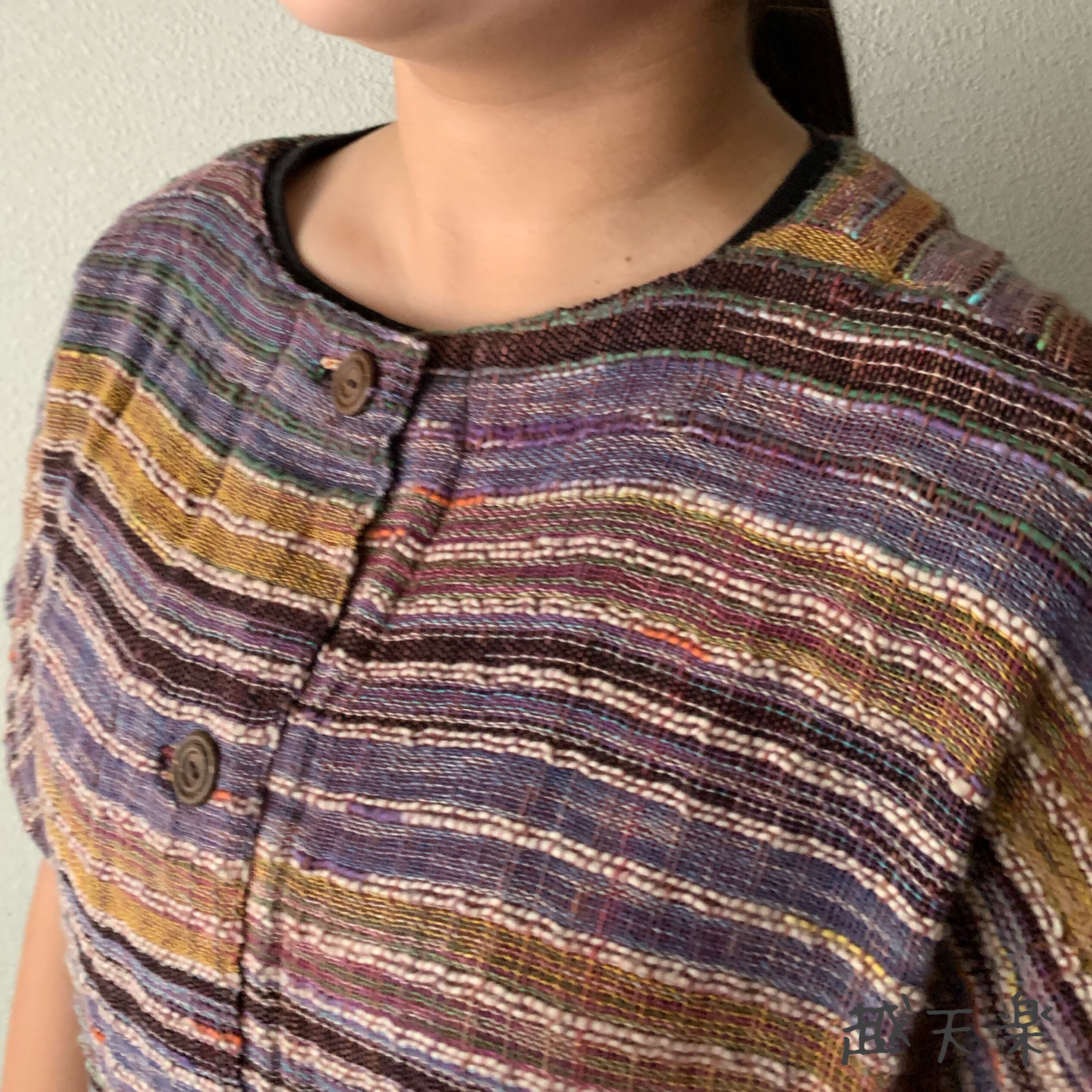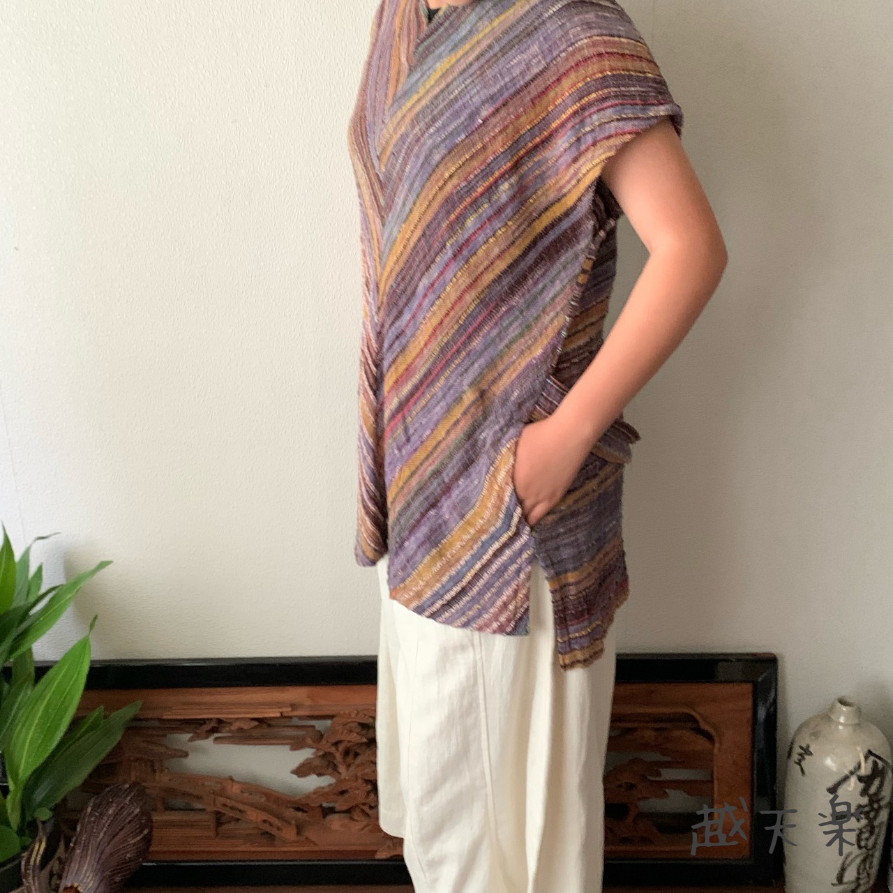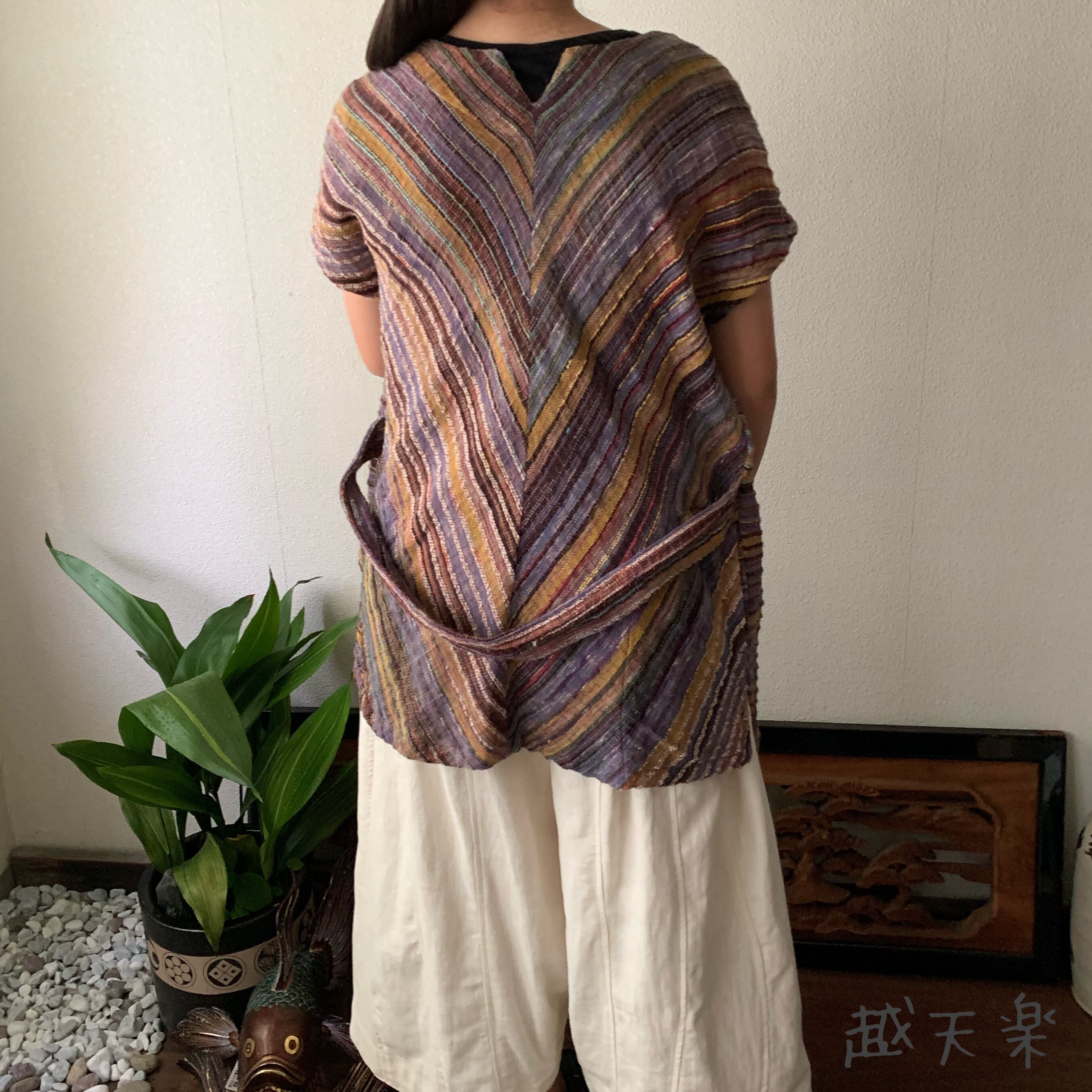 前身頃で着ても後ろ身頃で着ても楽しめる手織り綿のベストです。