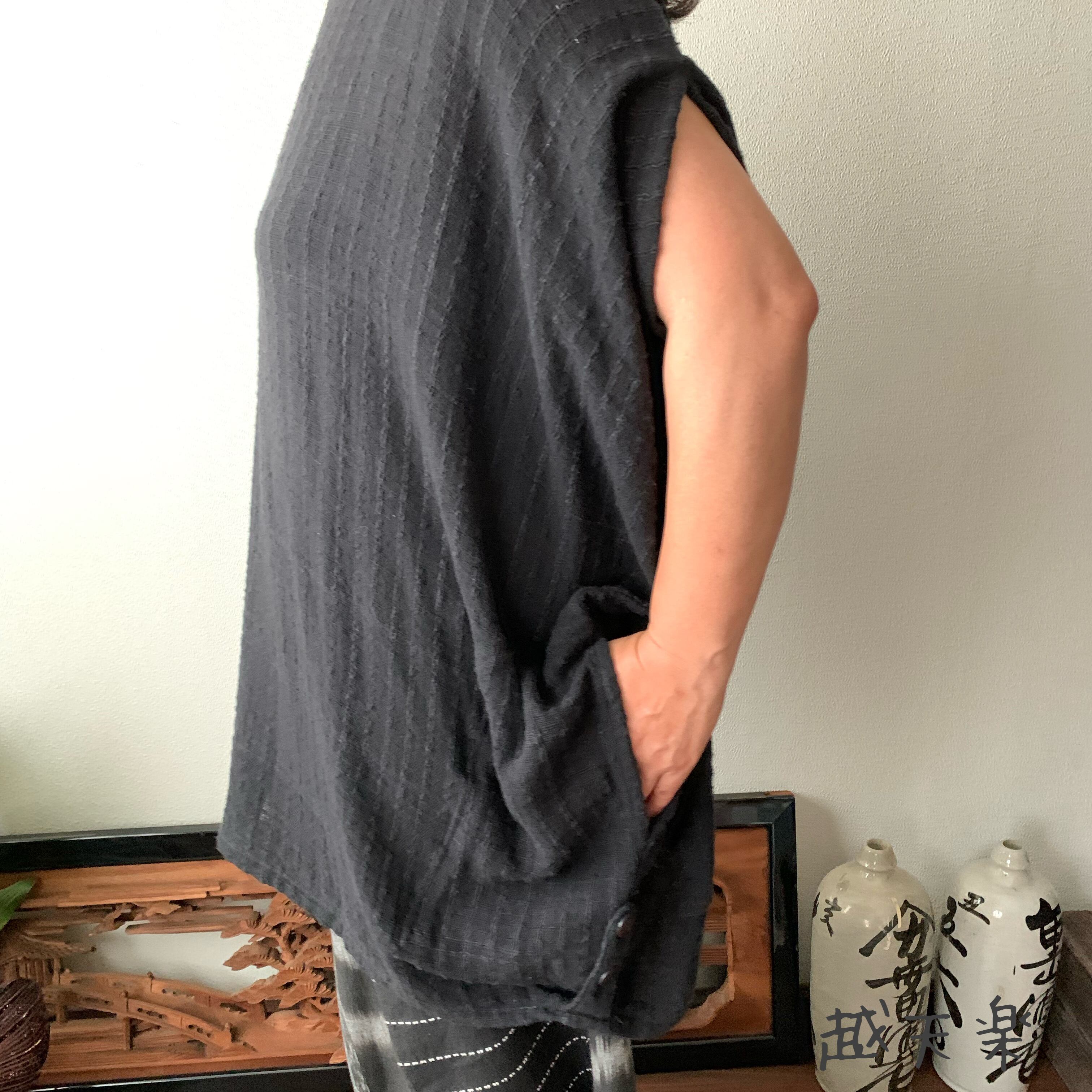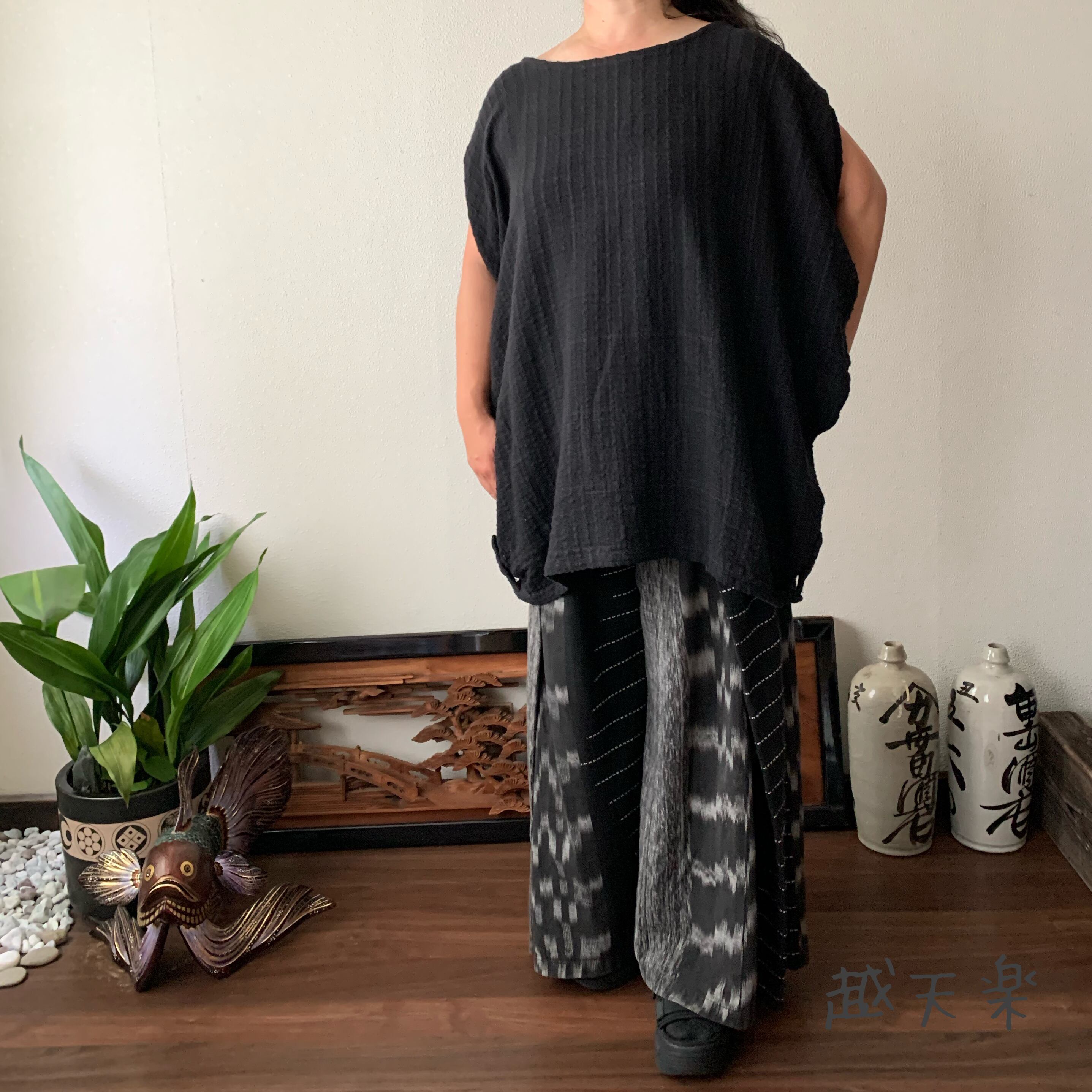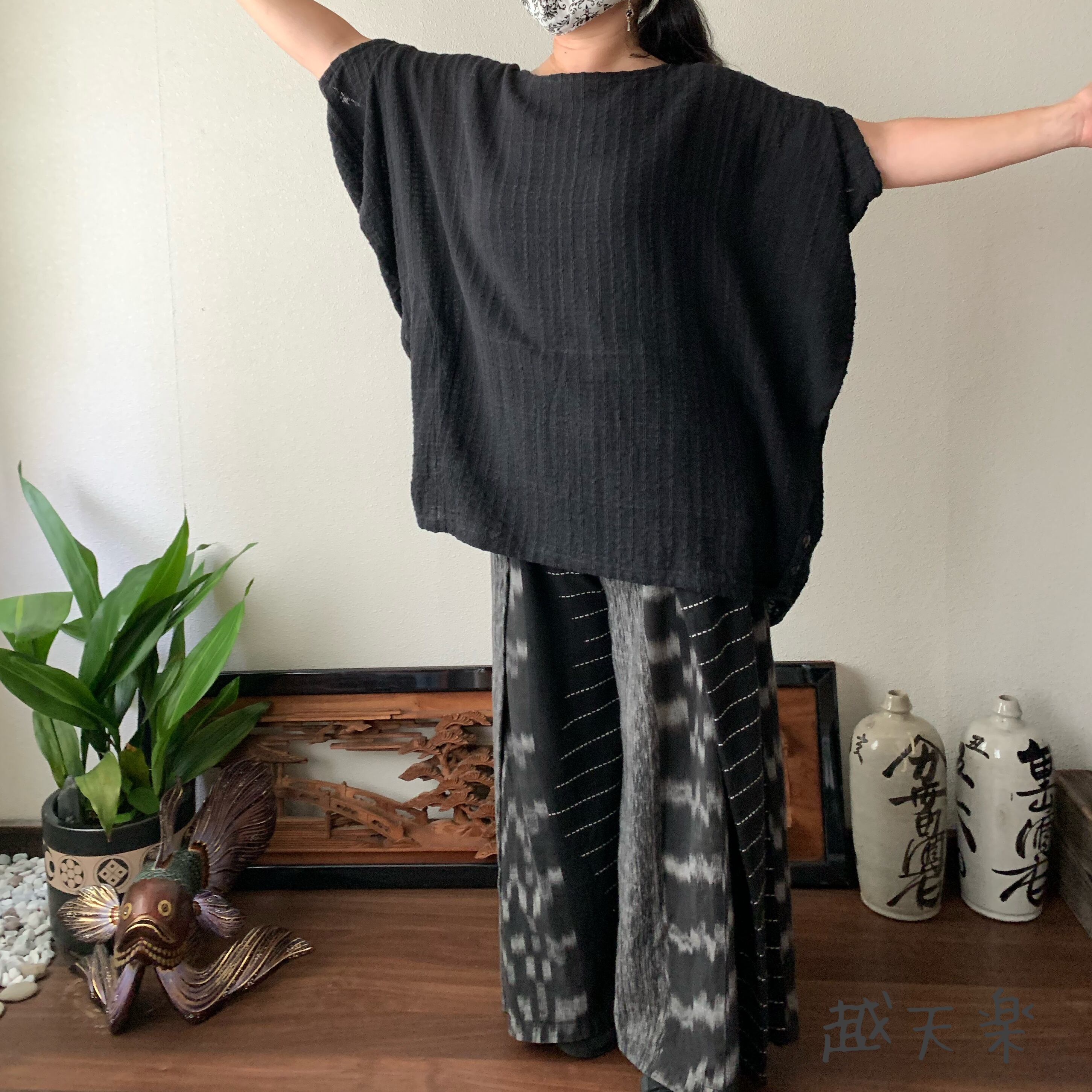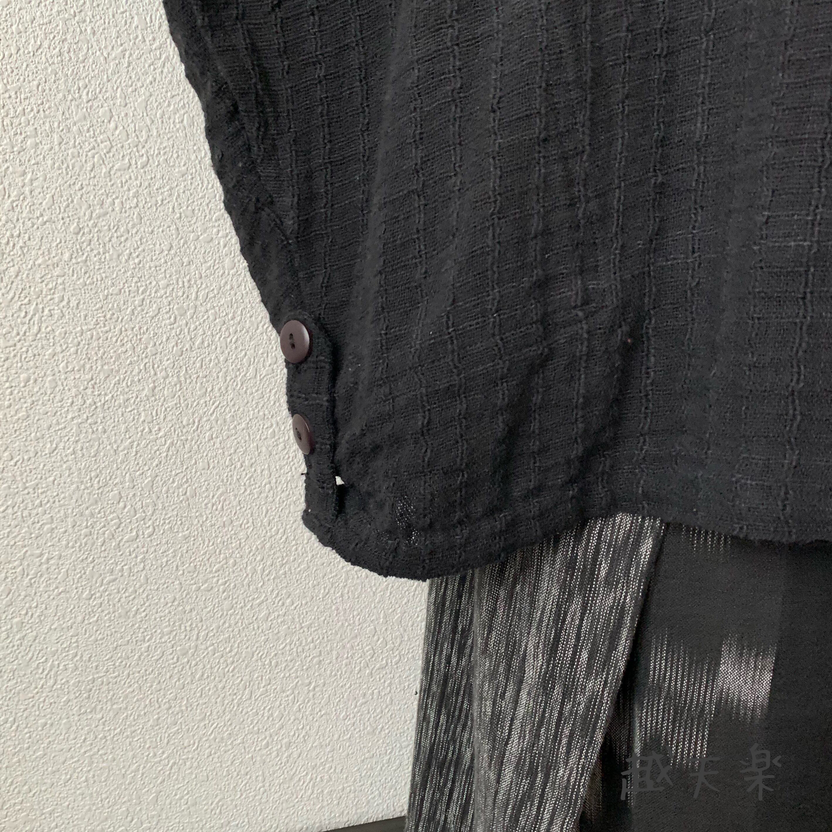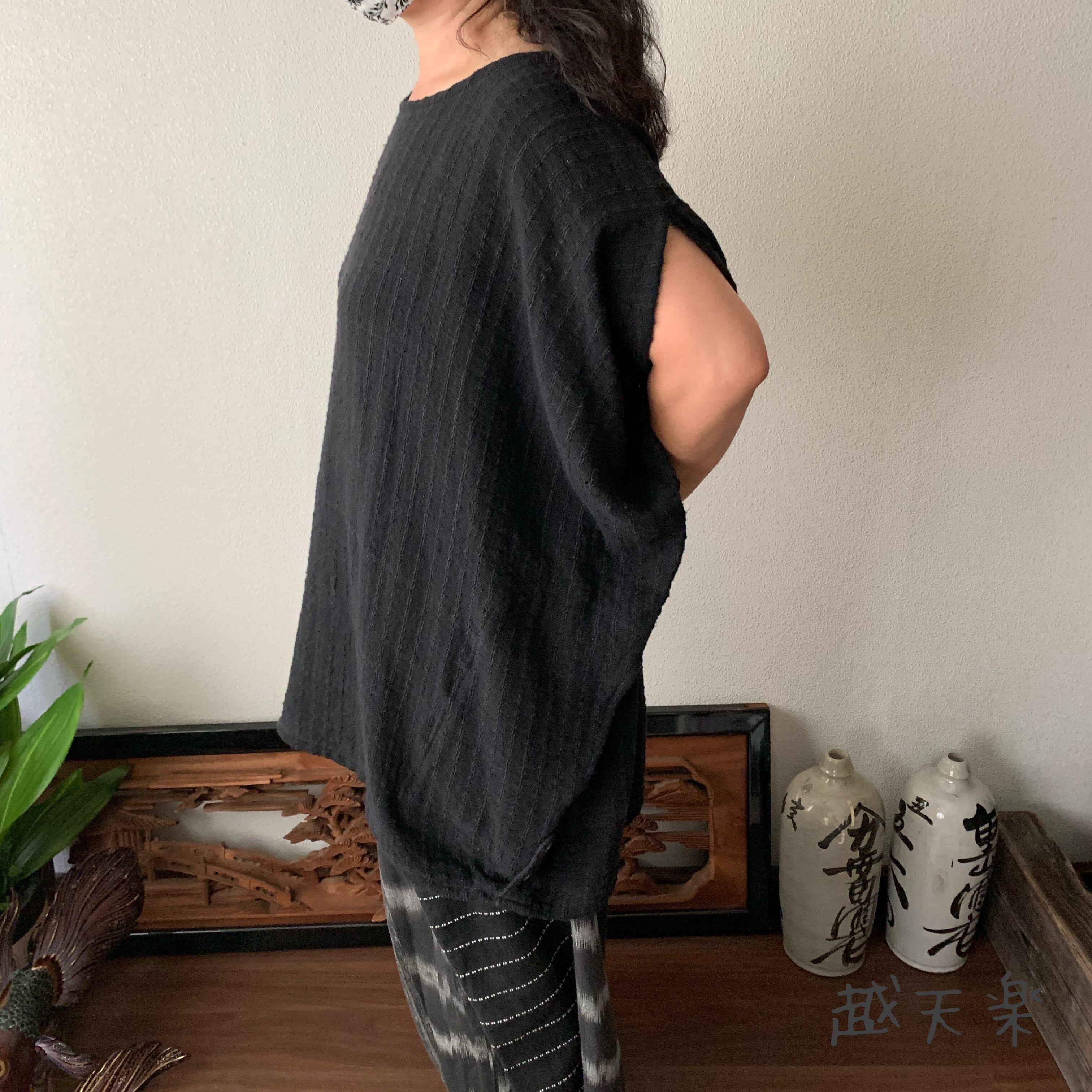 『シンプルな貫頭衣風だけど細部にこだわる手織り綿チュニックブラウス 二の腕きれいみせスリットや裾サイドボタン』