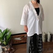 両サイドにポケットもついており、繊細な貝ボタンでのビックカラーですので着やすく、他にはないデザインになっています。