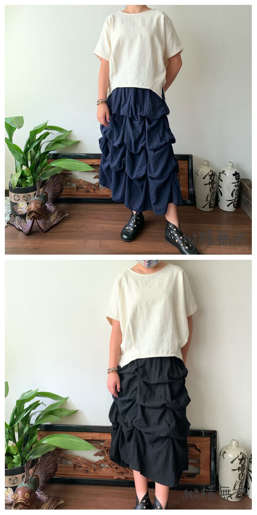 天然素材の特性上、一つ一つの作品は生地による違いがございます。ご理解の上お楽しみください。