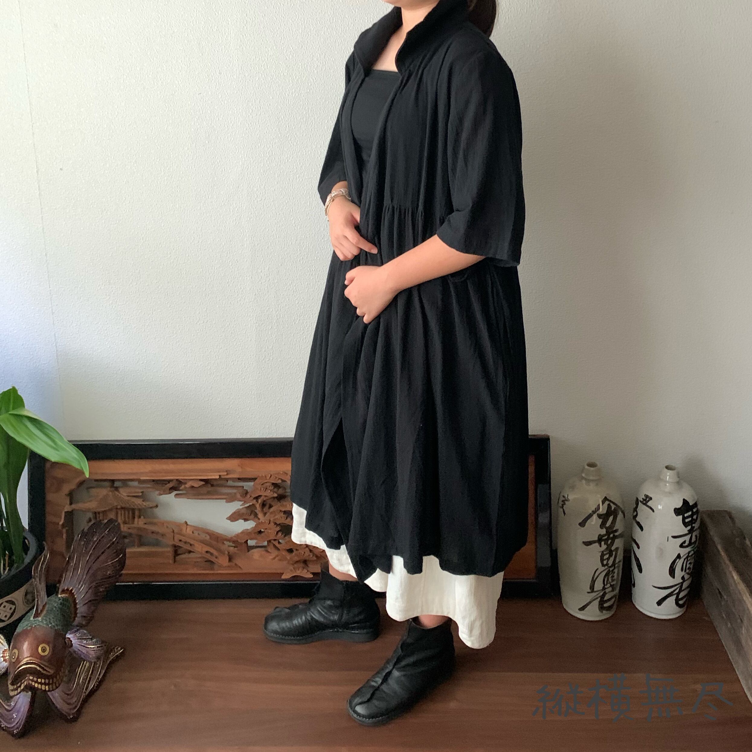 気持ちの良いガーゼのようなコットン生地なので一枚でも、中にカットソーやタートルをあわせても長いシーズン活用できてついつい着てしまいますよ。