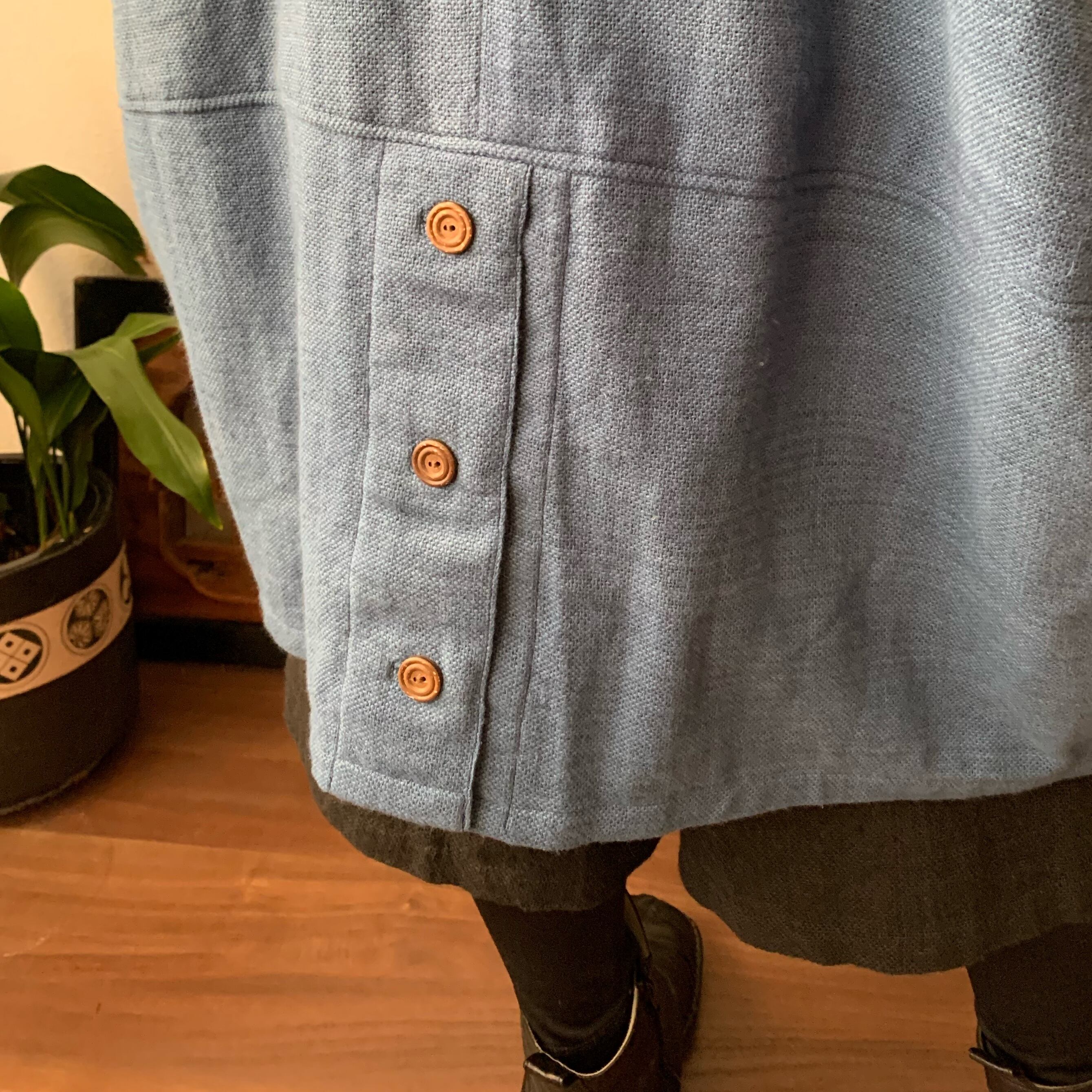 裾部分の切り替え、裾後ろのボタン等々、よく見ると楽しめるこだわり満載です。
