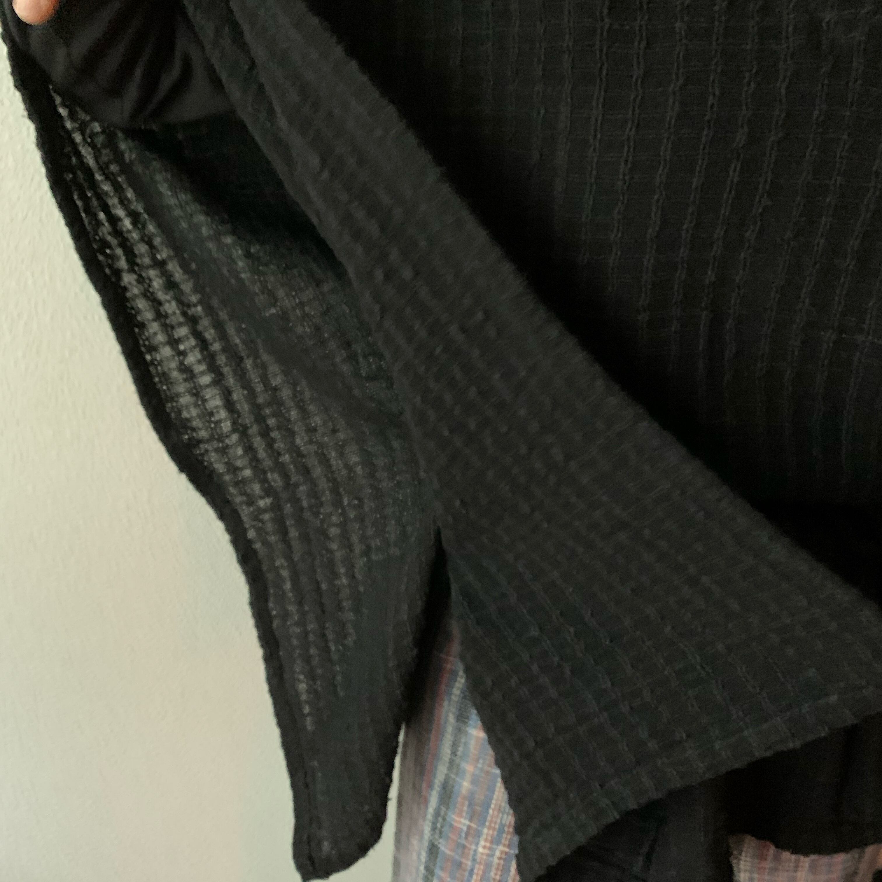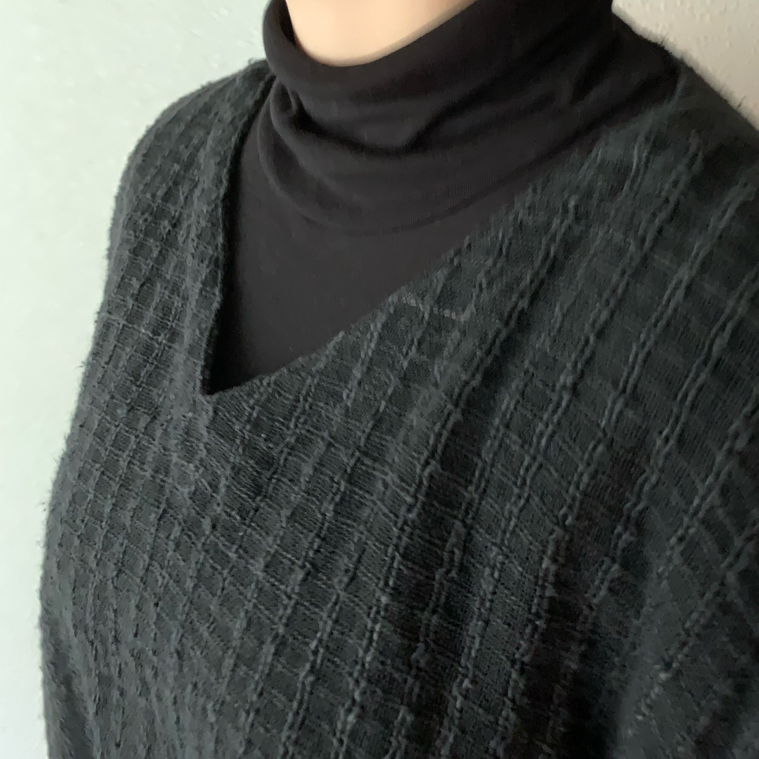 vネックはインナーを合わせやすく、袖部分は内側に縫い部分があり、ひらひらと舞うような動きを出してくれます。