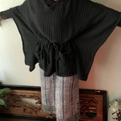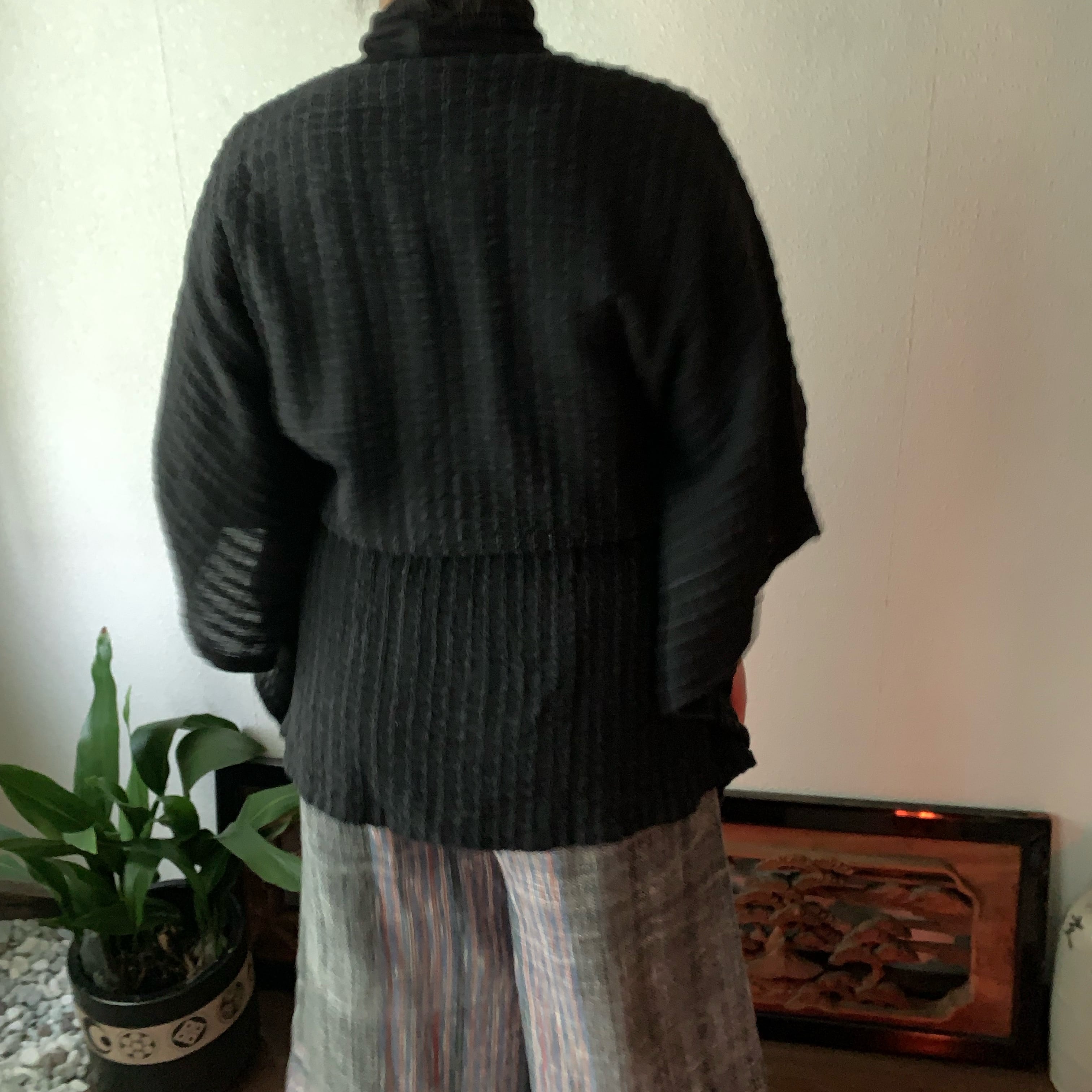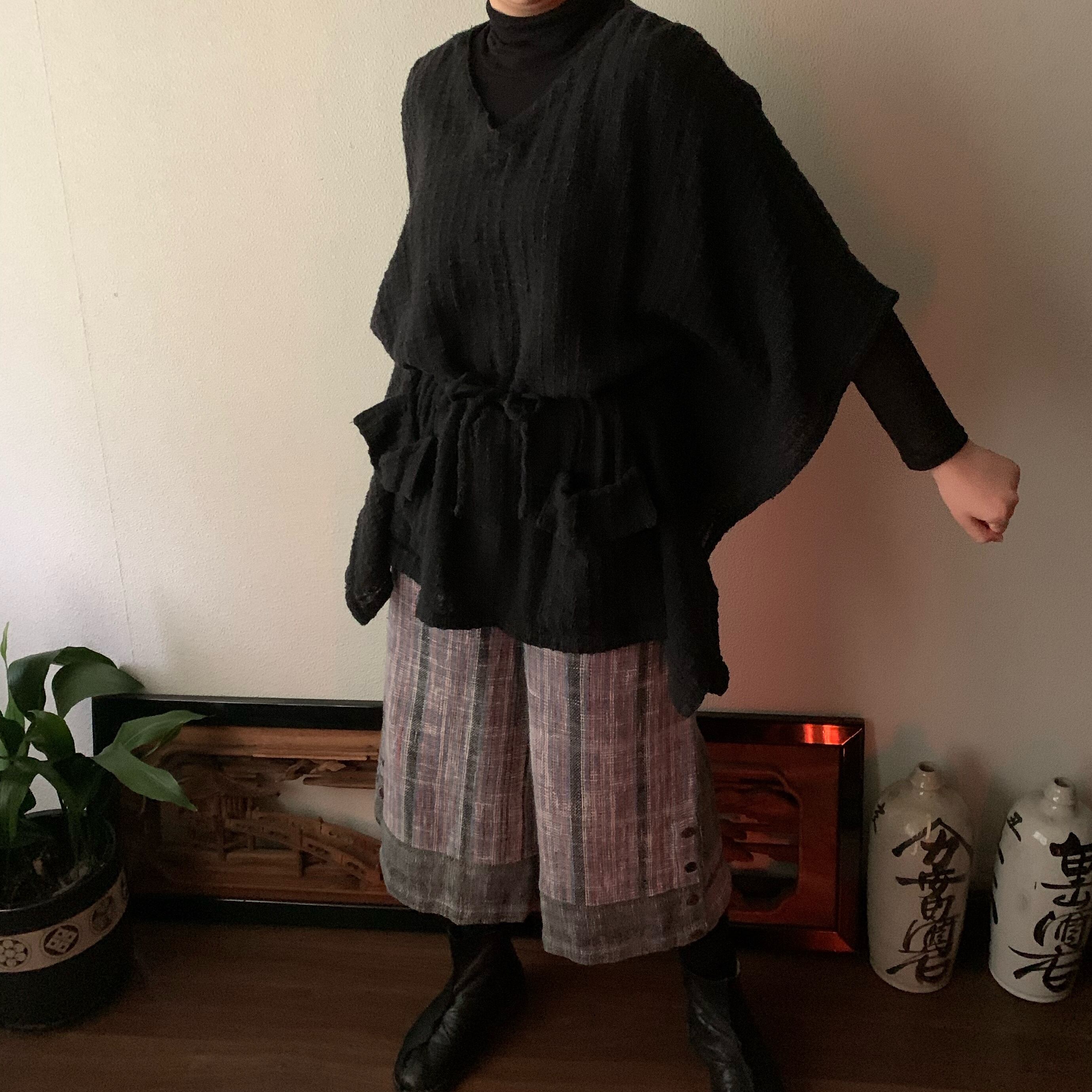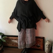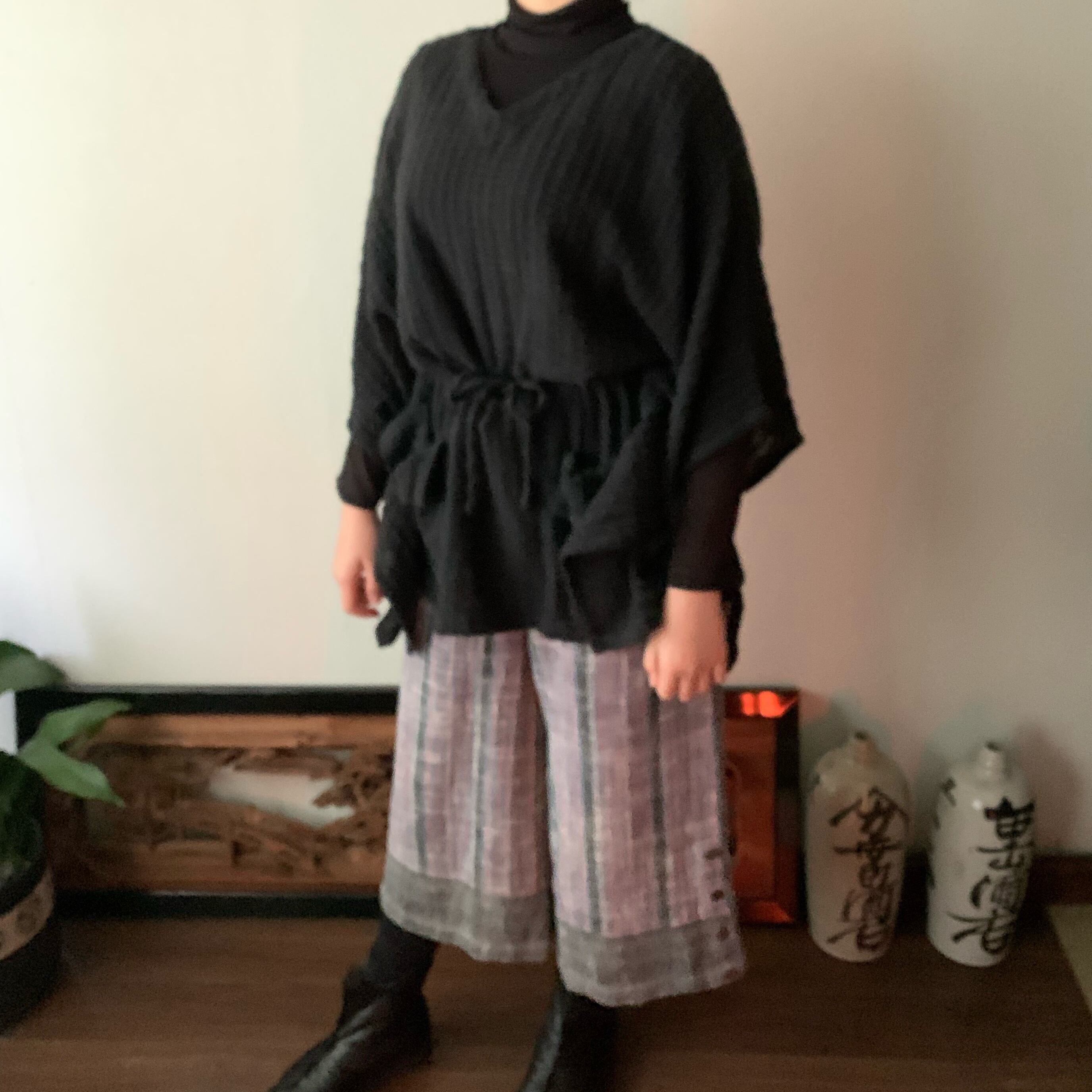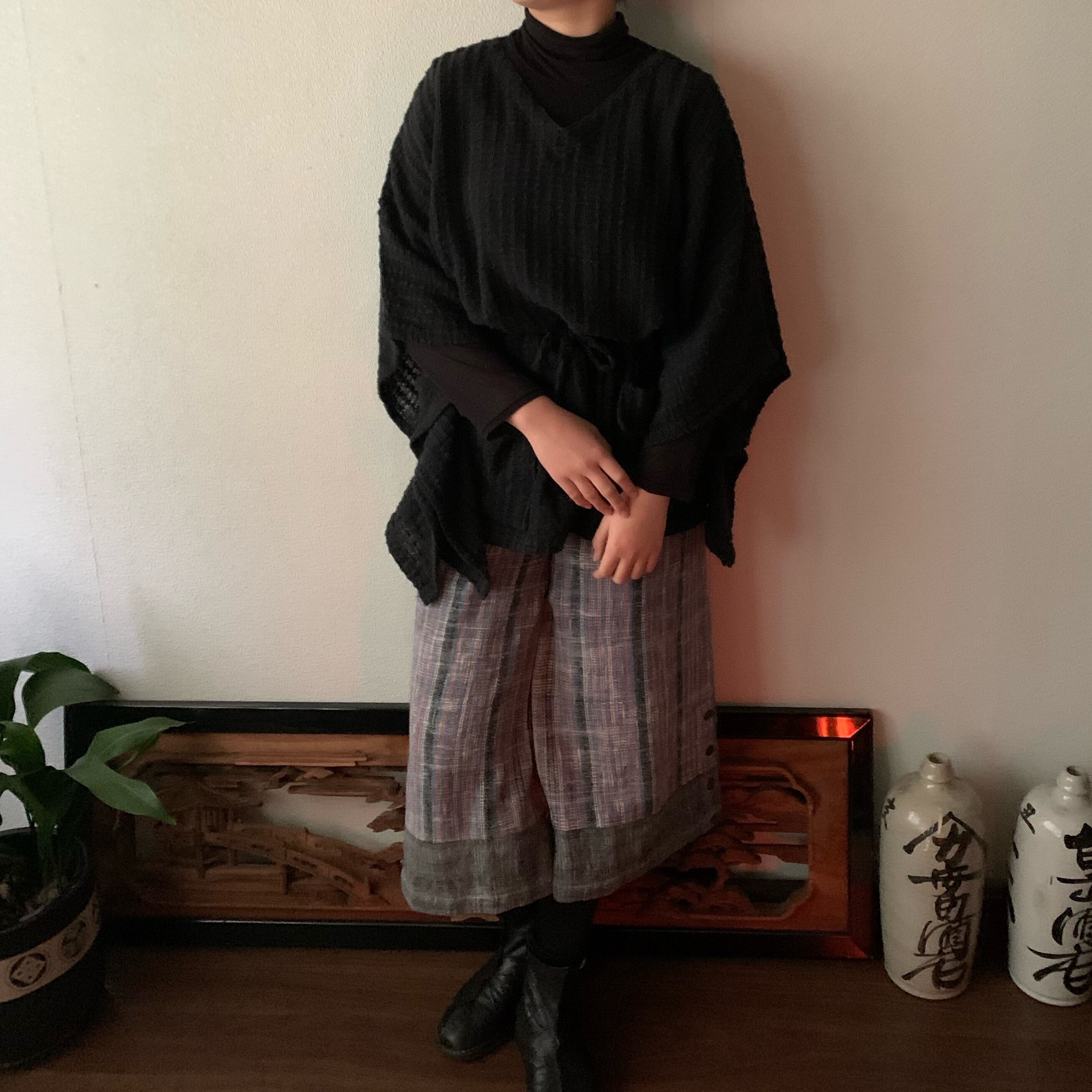 写真セットで履いている手織り綿裾ワイドガウチョパンツのブルーグレイ絣はこちら↓