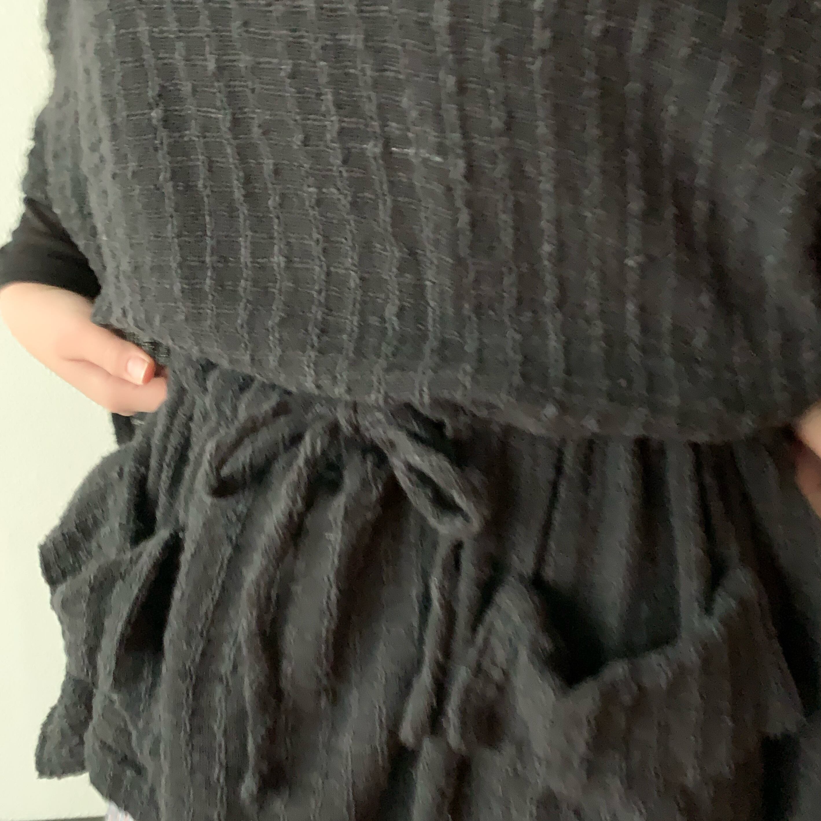四角い生地を切り取ったような動くたびにひらひらと舞う不思議なデザインです。