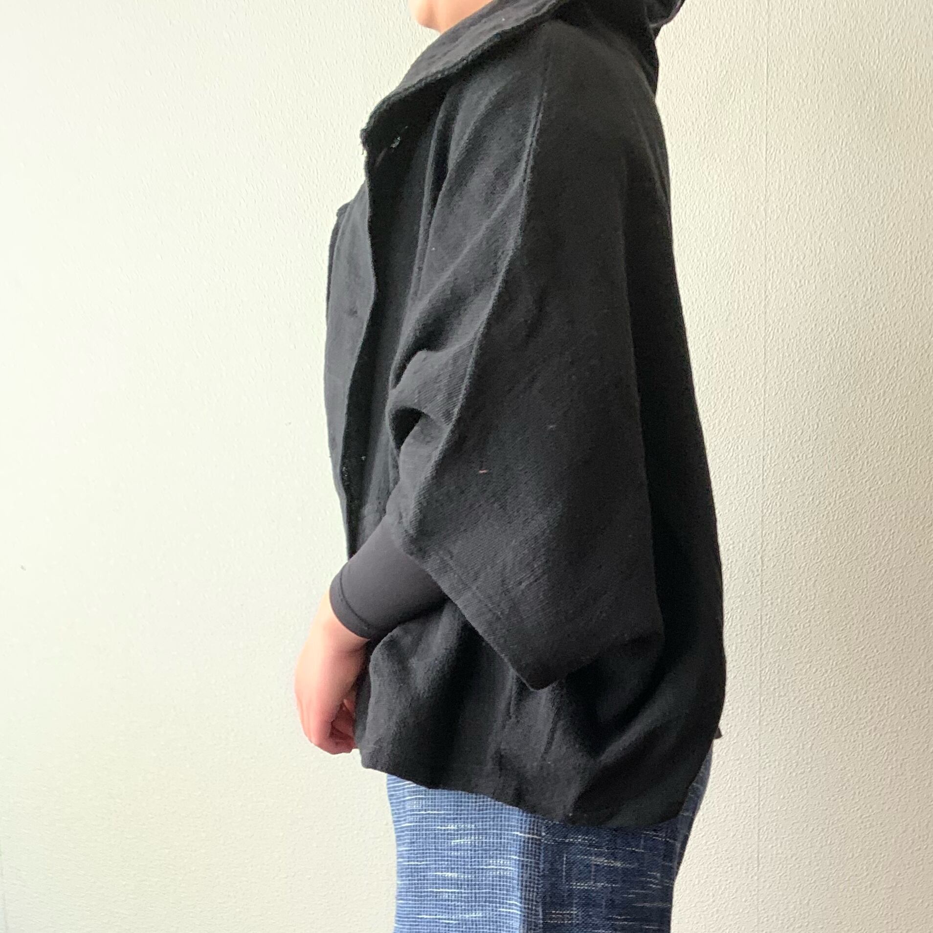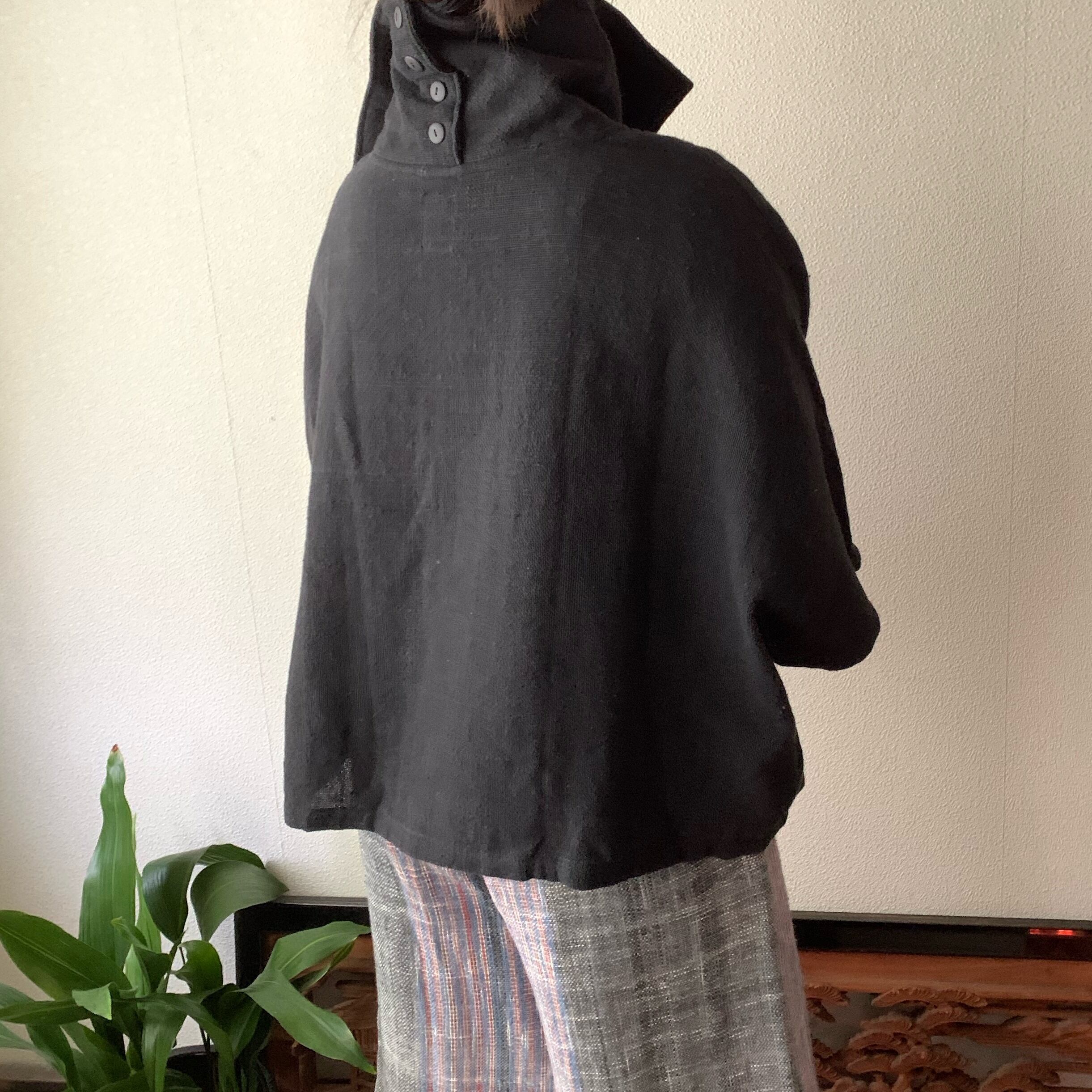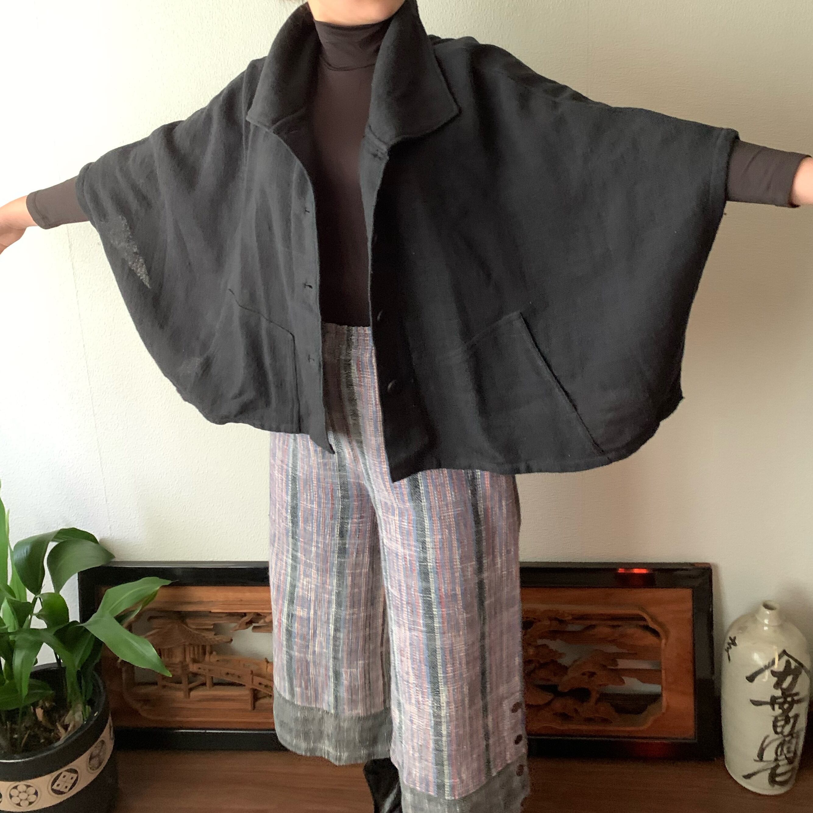 『さっと羽織るだけで雰囲気の出るケープ風手織り綿ブラウス 袖なしワイドなのに着ると絶妙のかっこいい落ち感がスパイス』