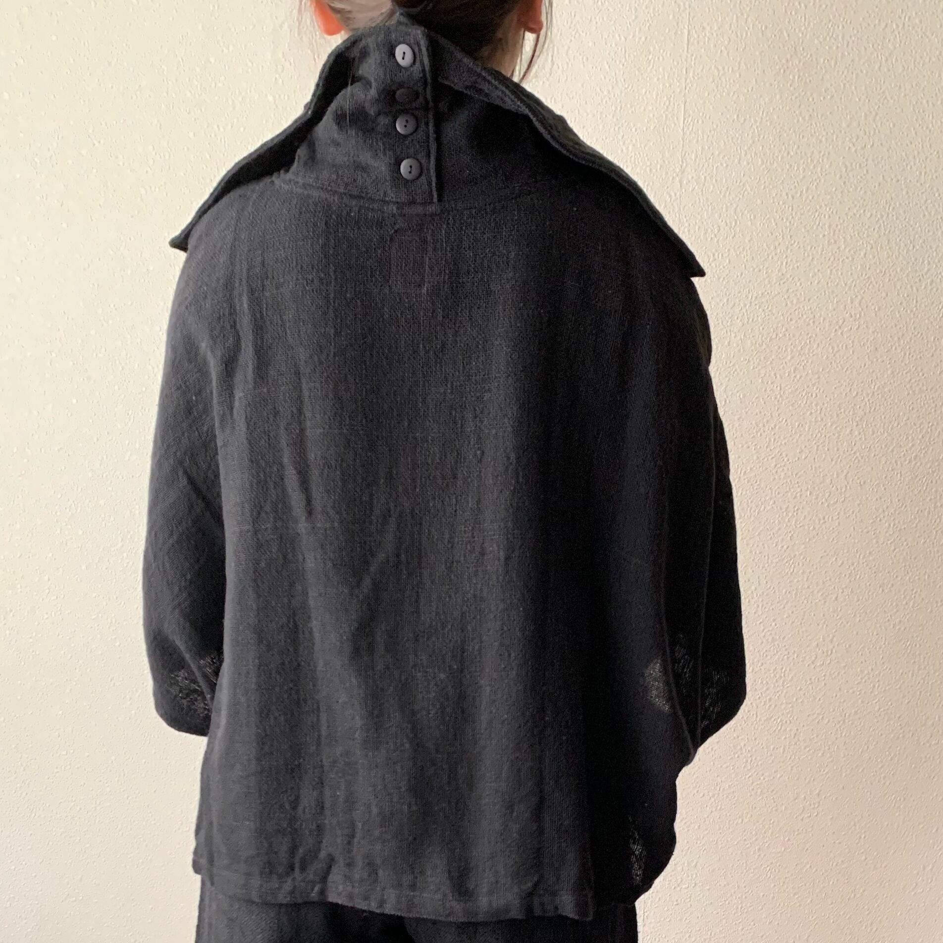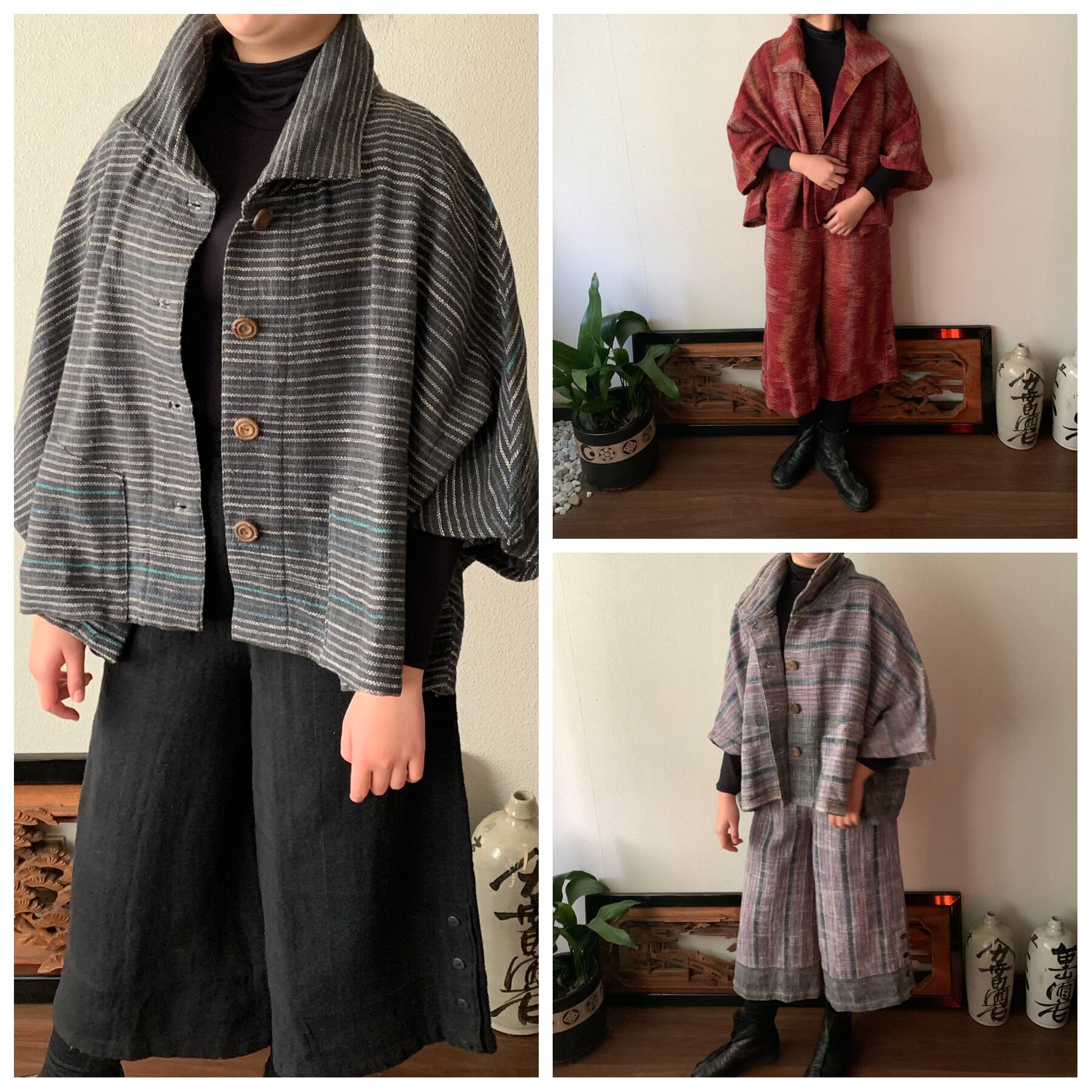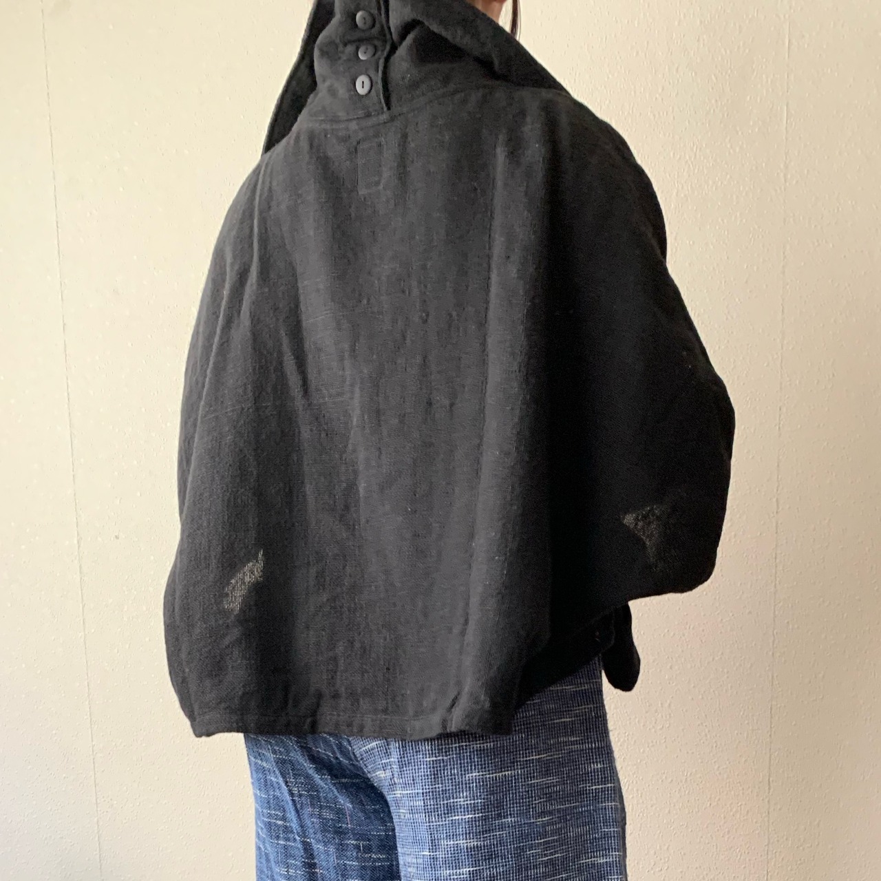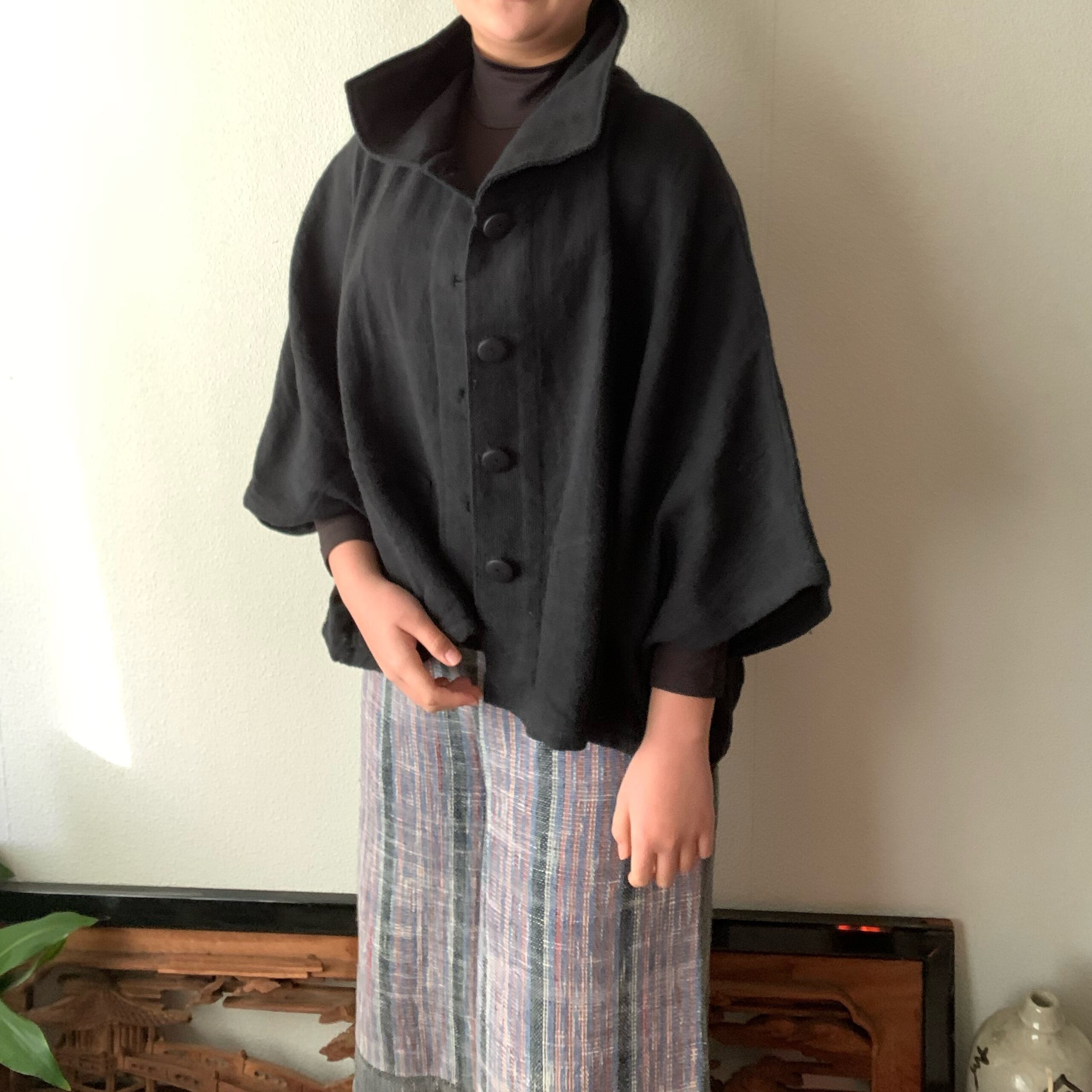 『さっと羽織るだけで雰囲気の出るケープ風手織り綿ブラウス 袖なしワイドなのに着ると絶妙のかっこいい落ち感がスパイス』