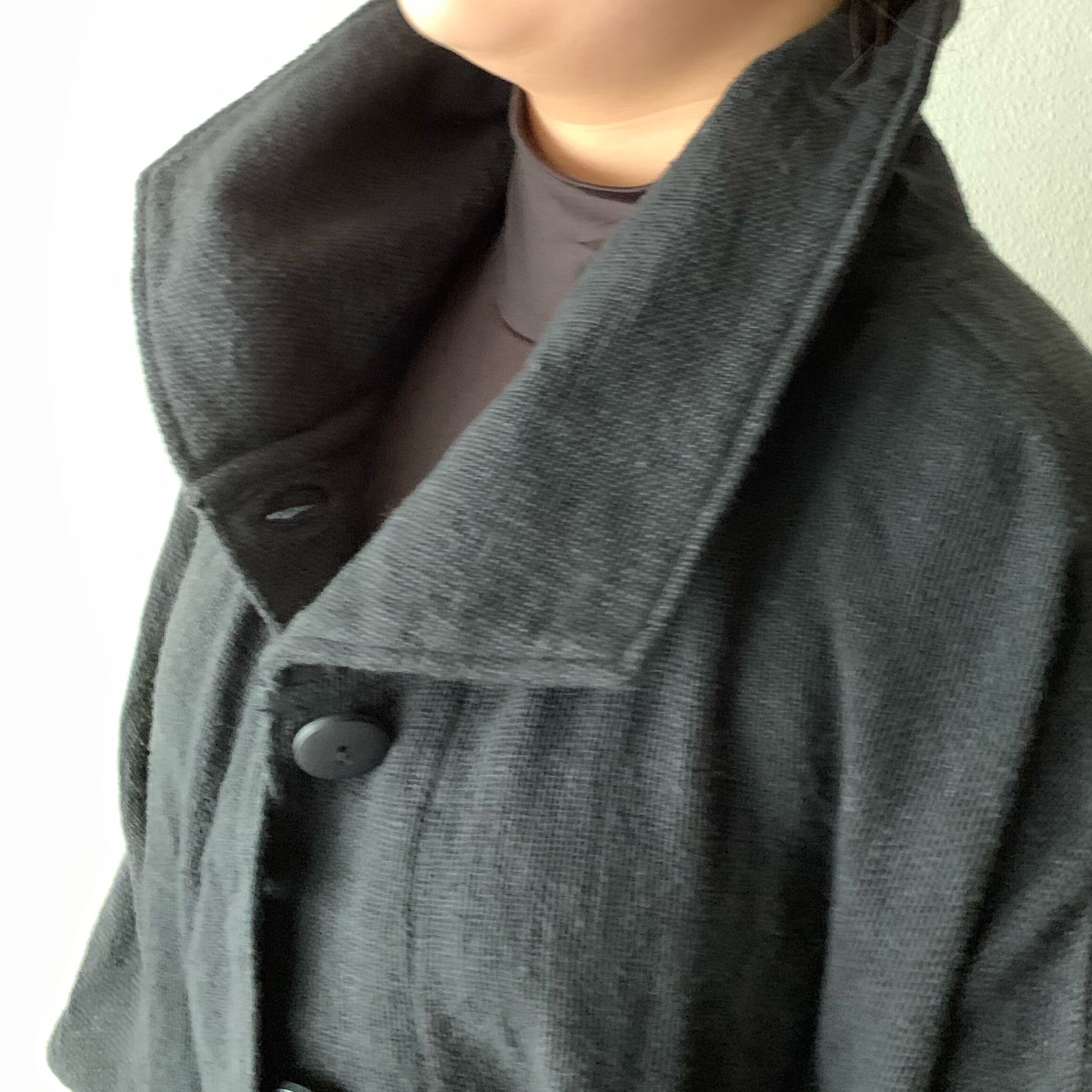デザインの効いた高い襟は立てても折ってもモードな雰囲気で決まります。
