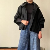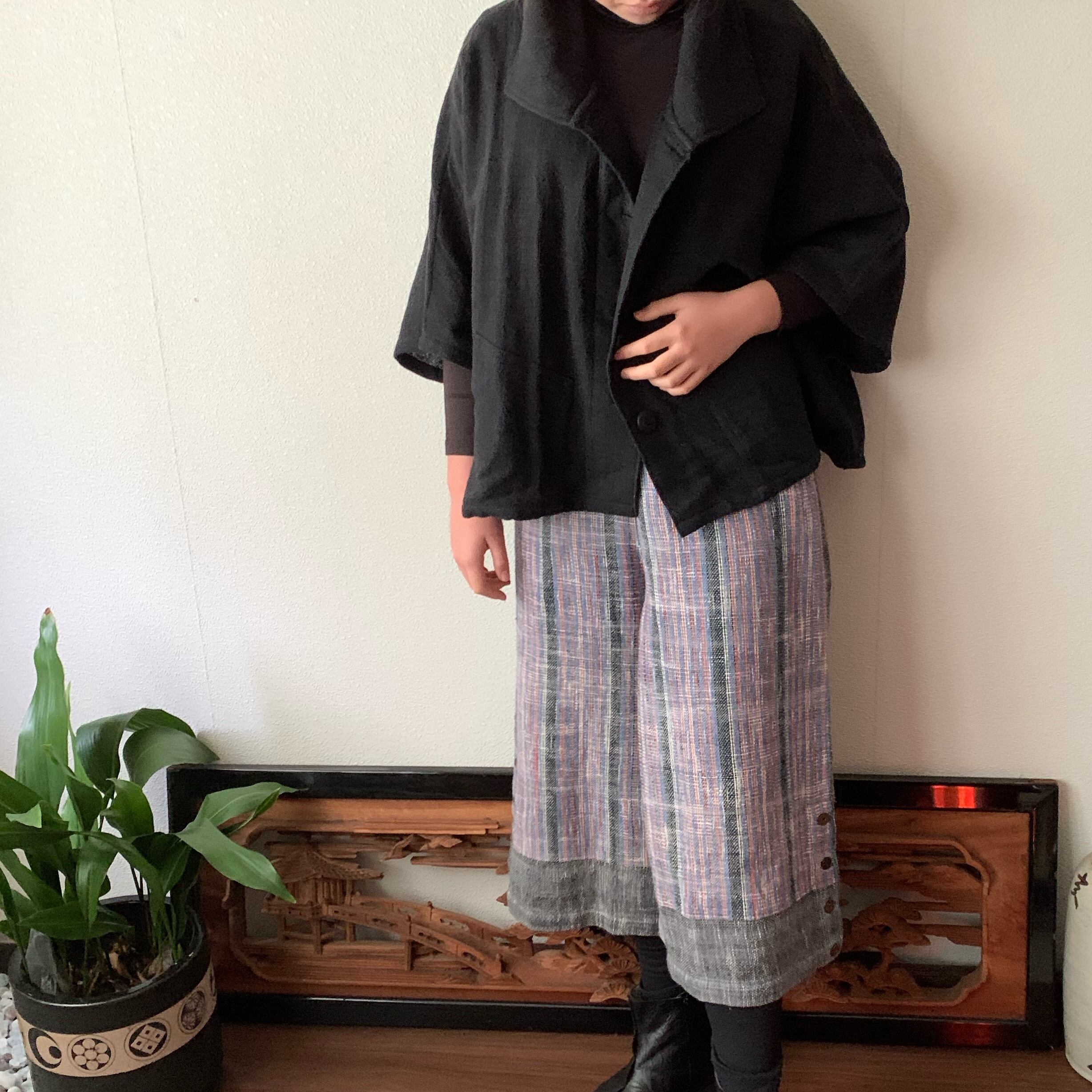 写真セットで履いている手織り綿裾ワイドガウチョパンツのブルーグレイ絣はこちら↓