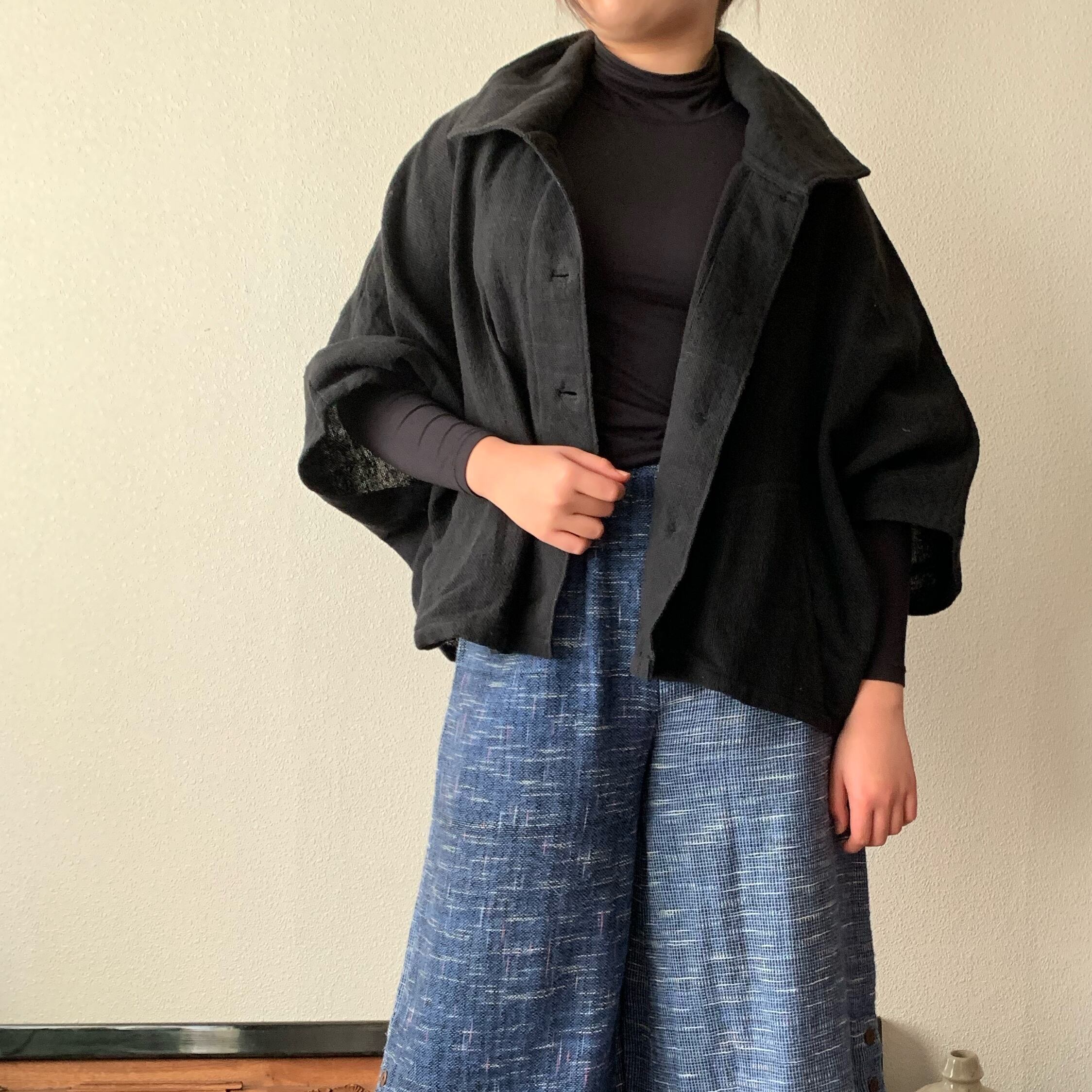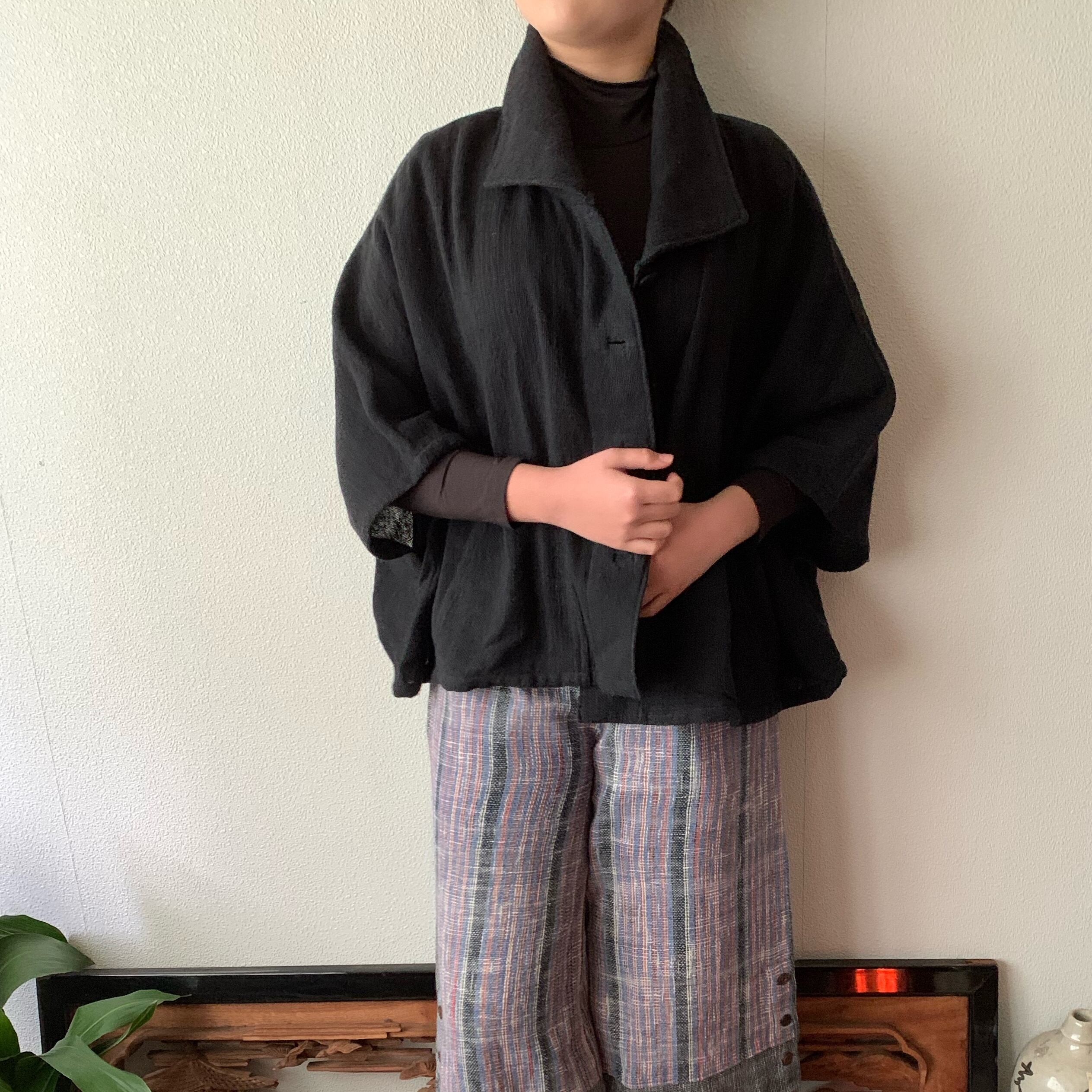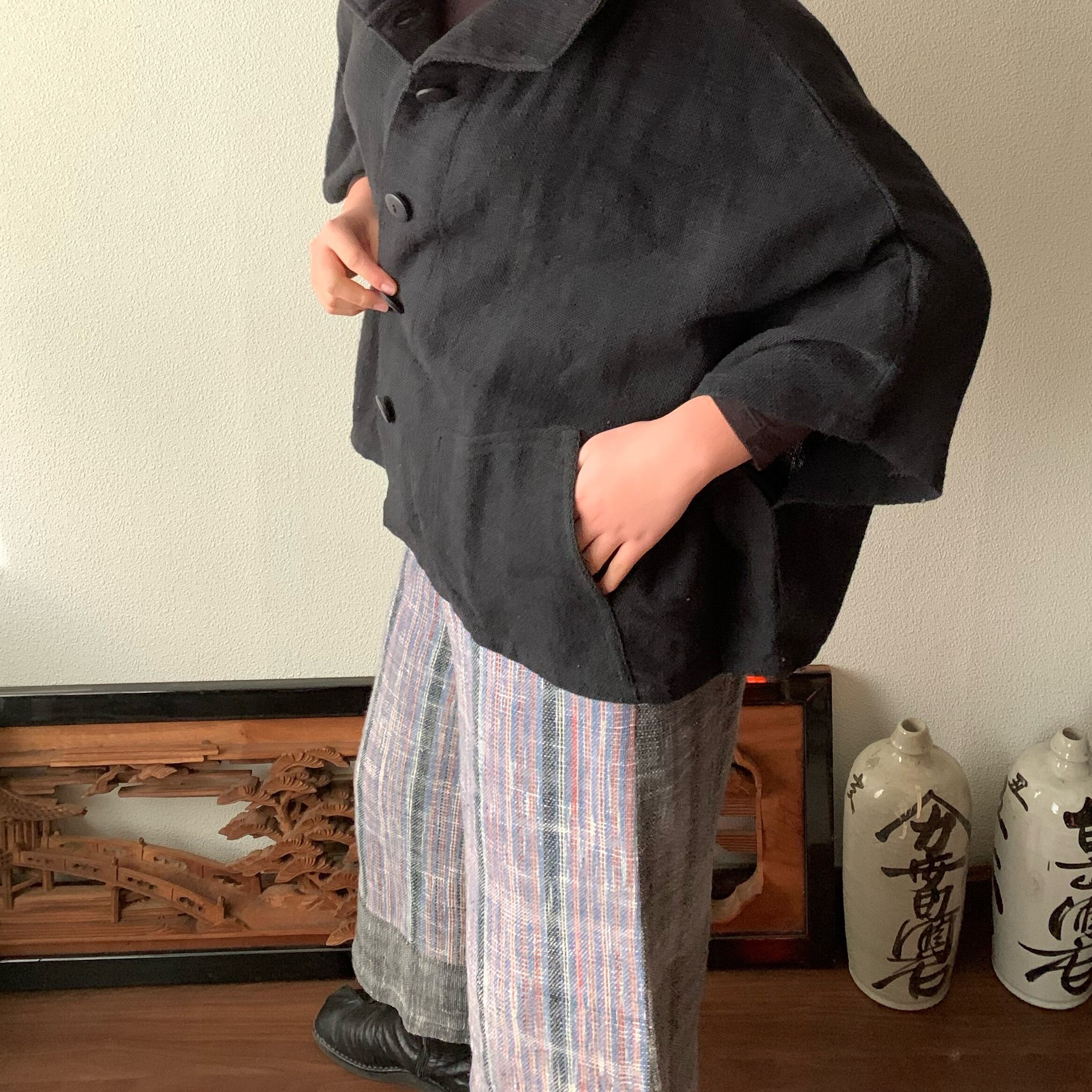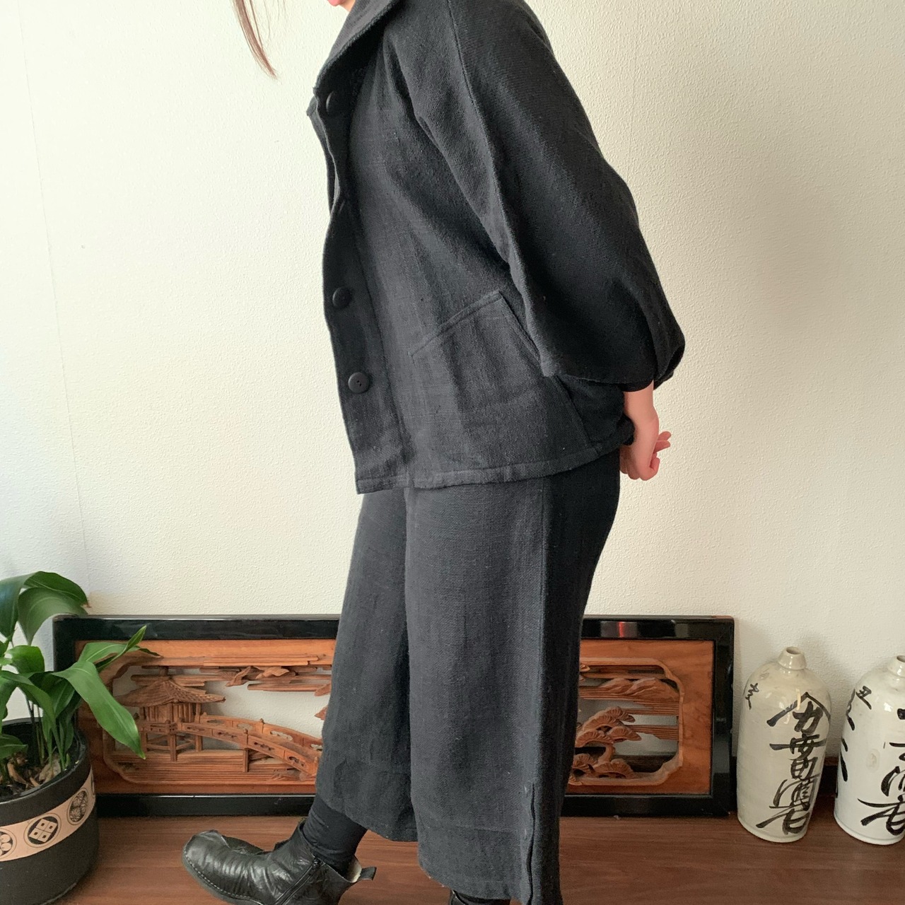 写真セットで履いている共生地の手織り綿裾ワイドガウチョパンツ黒無地こちら↓