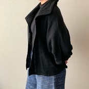 たっぷりとドルマンスリーブでワイドに生地をとっています。このワイドさが絶妙なかっこいい落ち感をつくりだしてくれます。