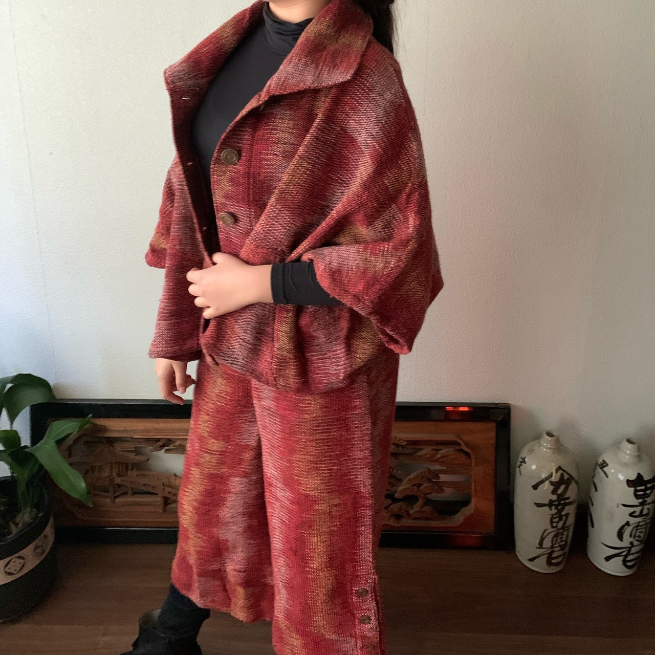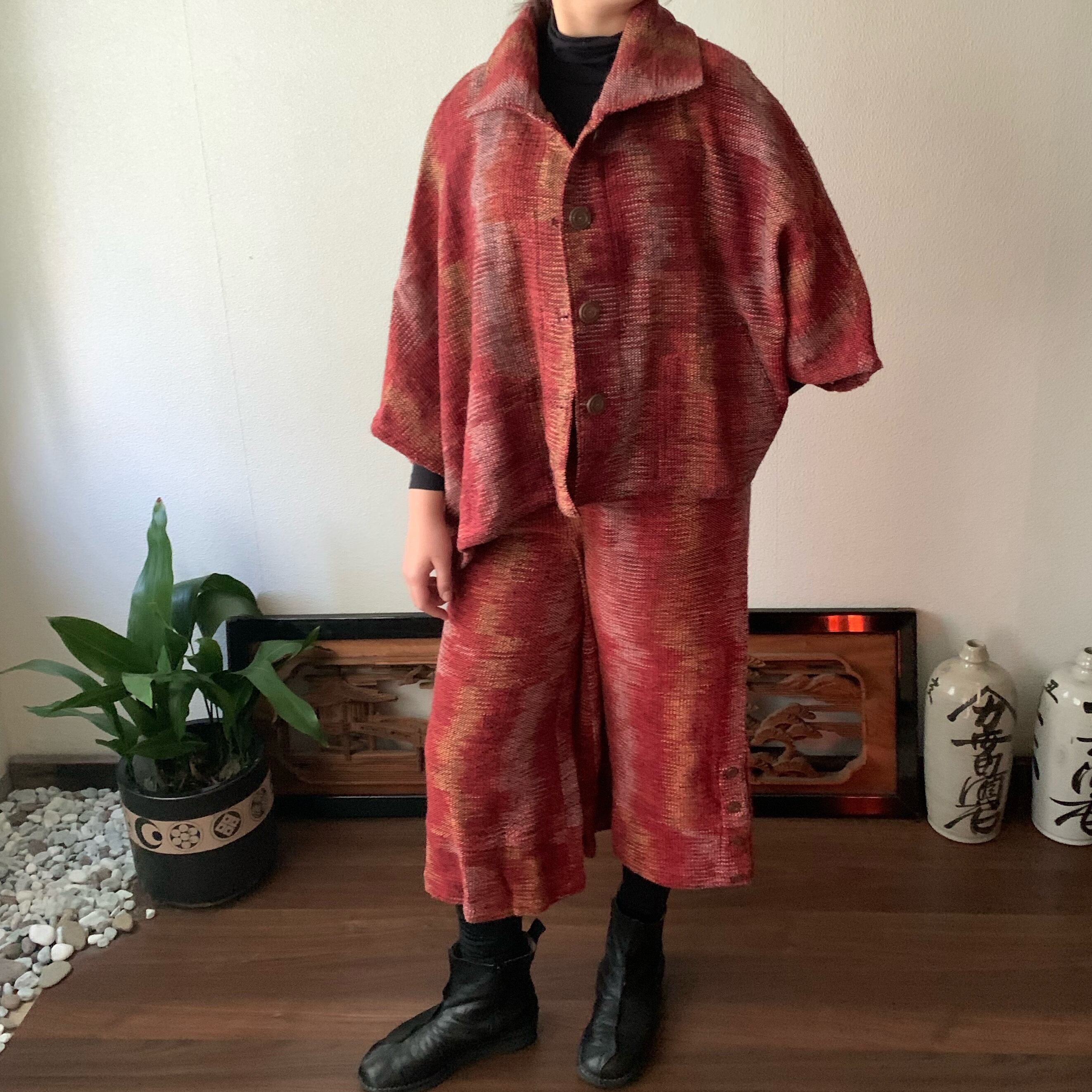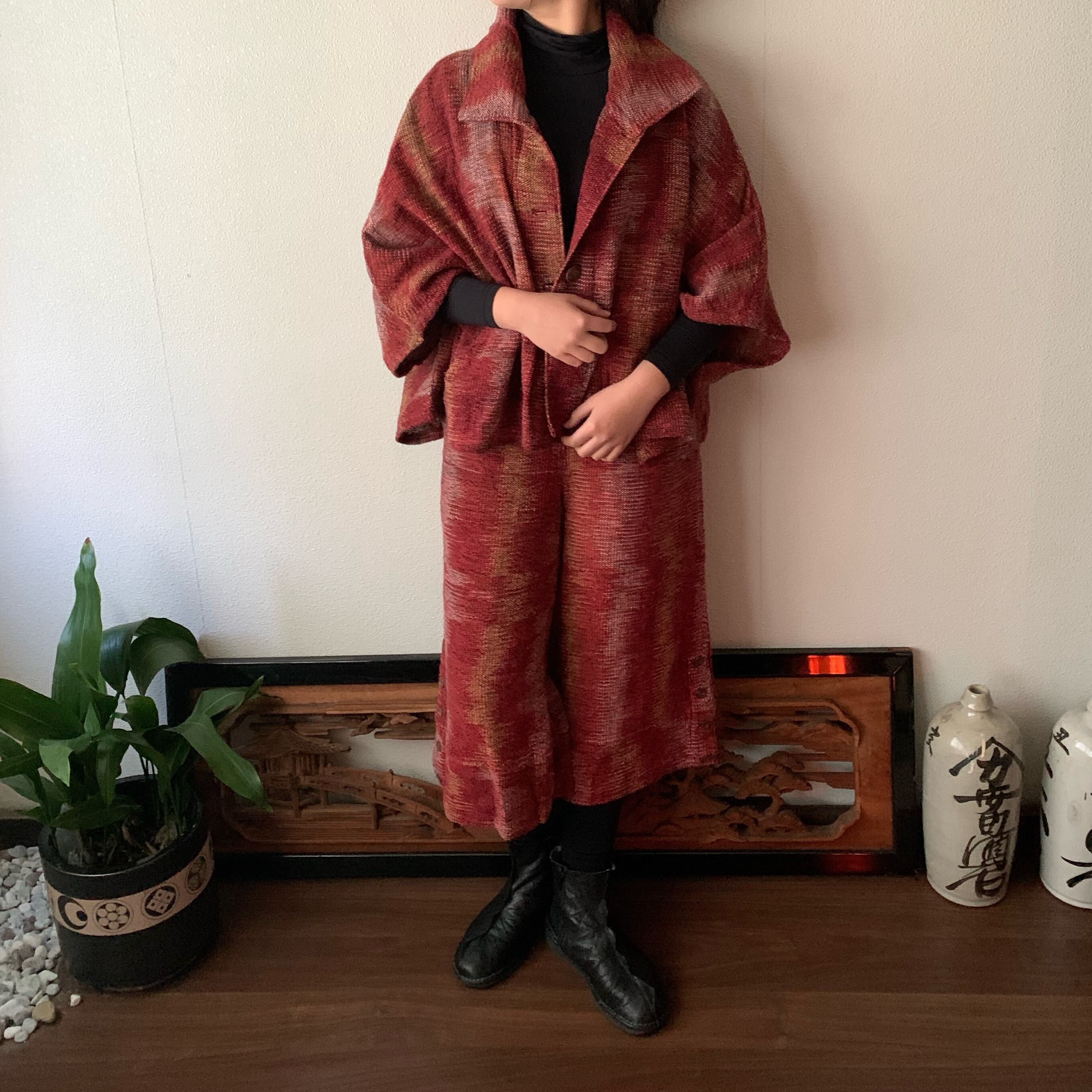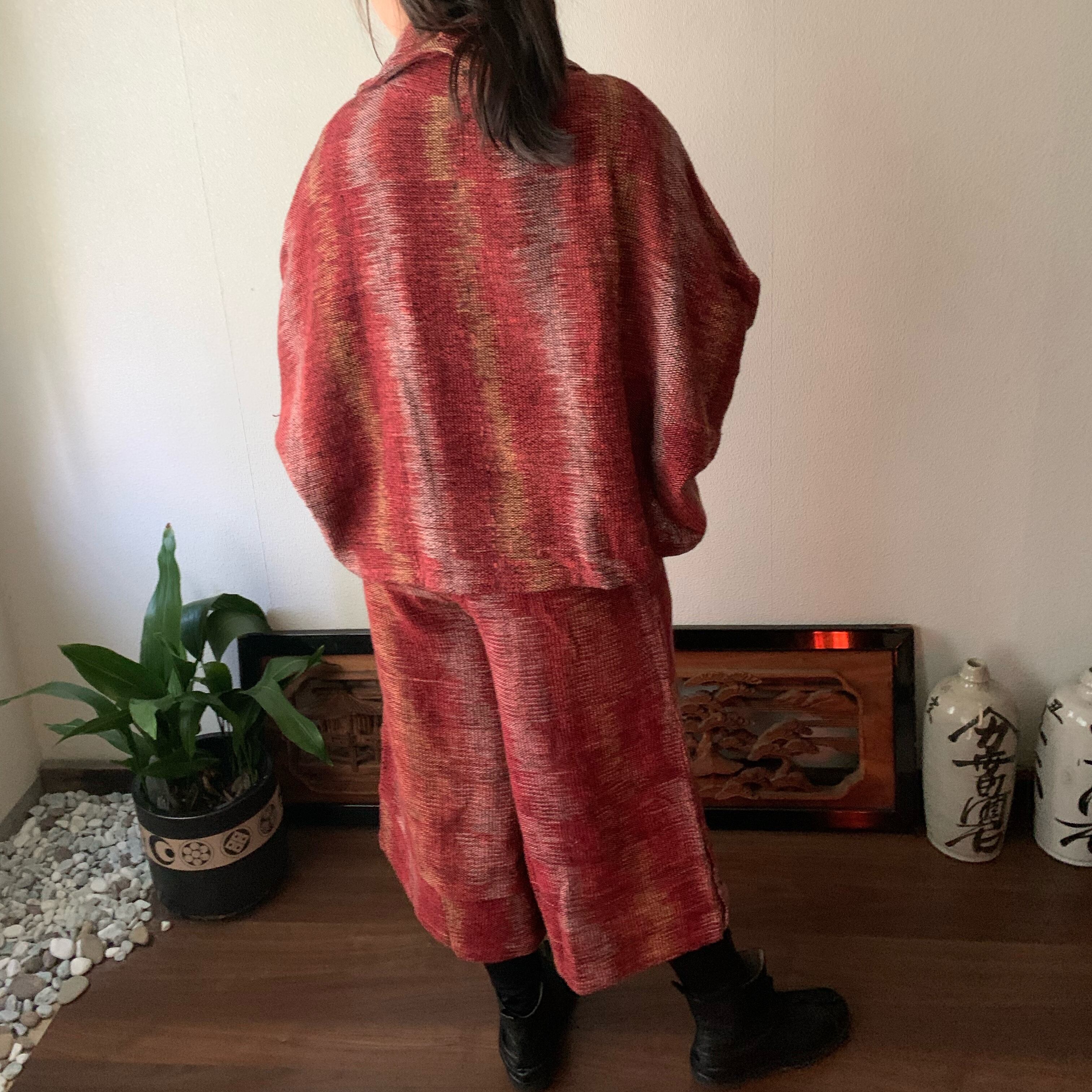 写真セットで履いている共生地の手織り綿裾ワイドガウチョパンツ金赤絣はこちら↓