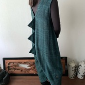 『えっ。?ゆったり手織り綿サロペットだけどバックに恐竜の背びれ? 遊び心たっぷりで思わず後ろを向きたくなる』