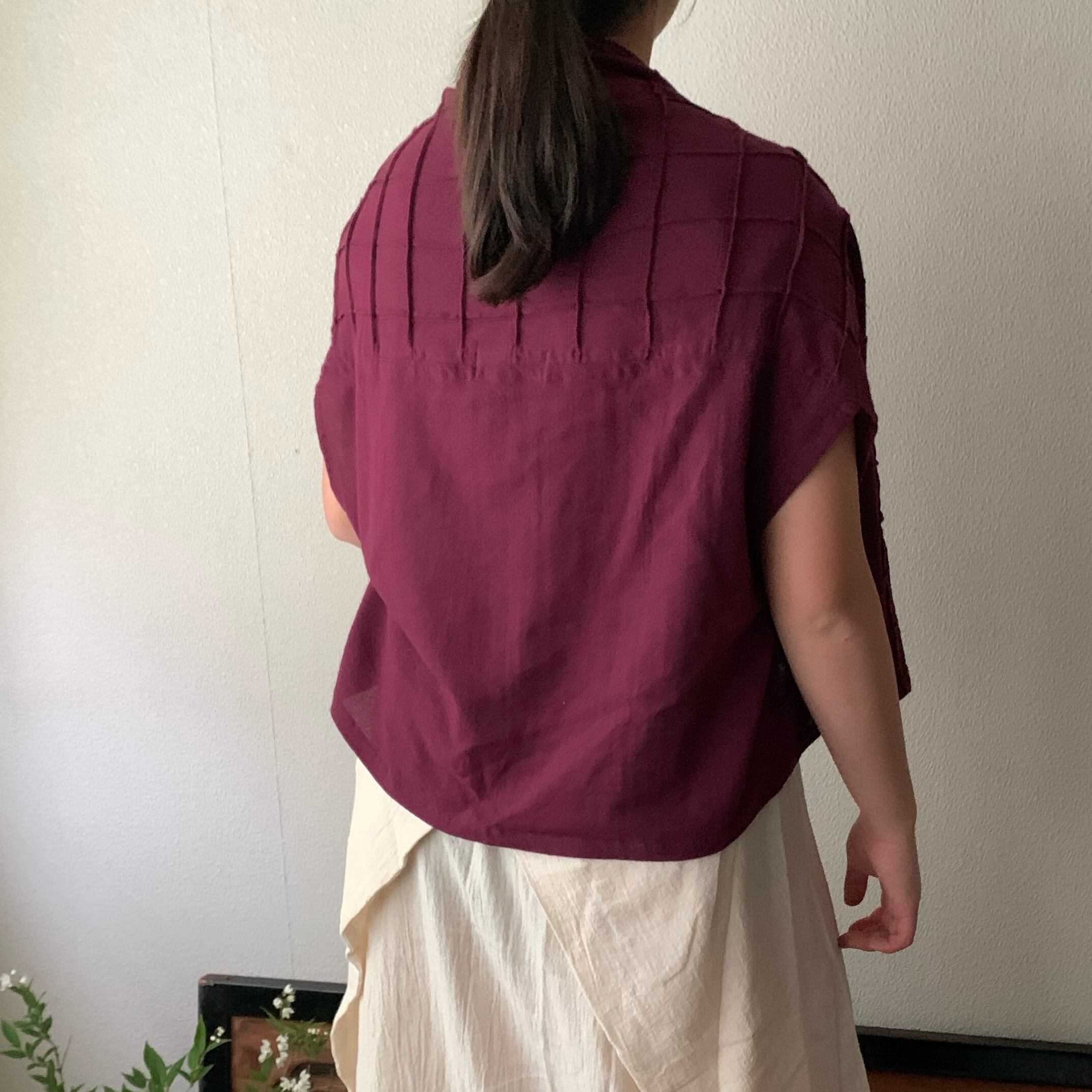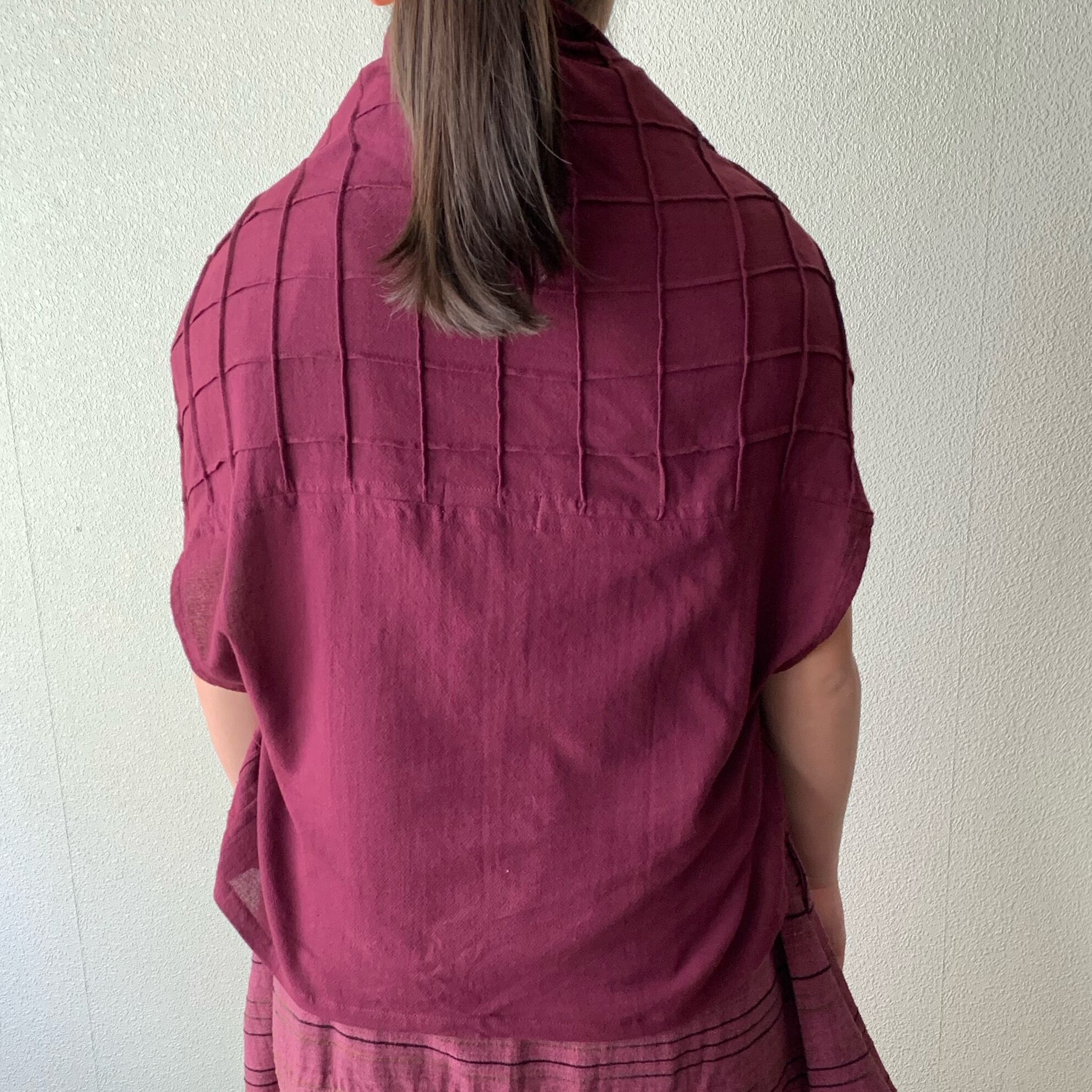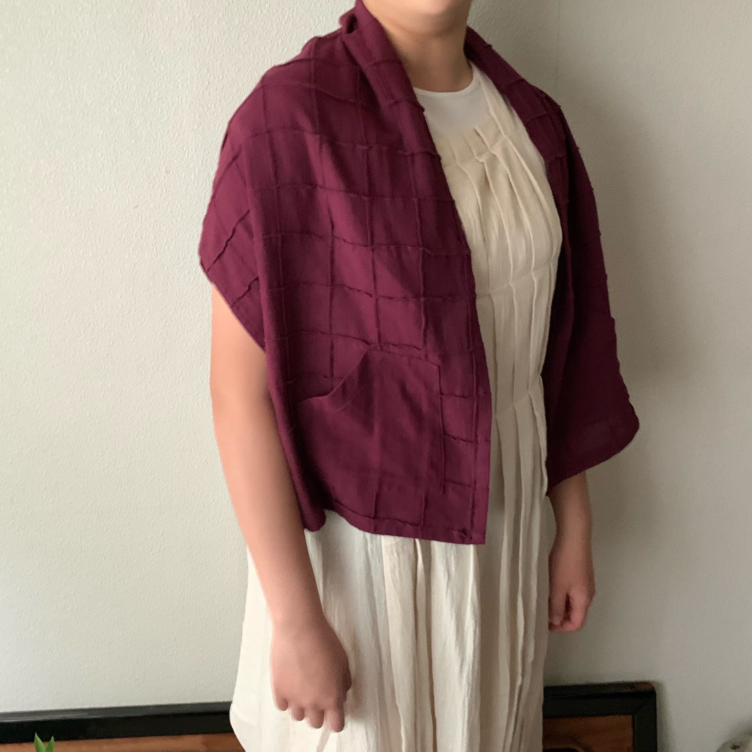 上下逆さで2way ピンタックの格子がアクセントのコットンボレロ 紫色