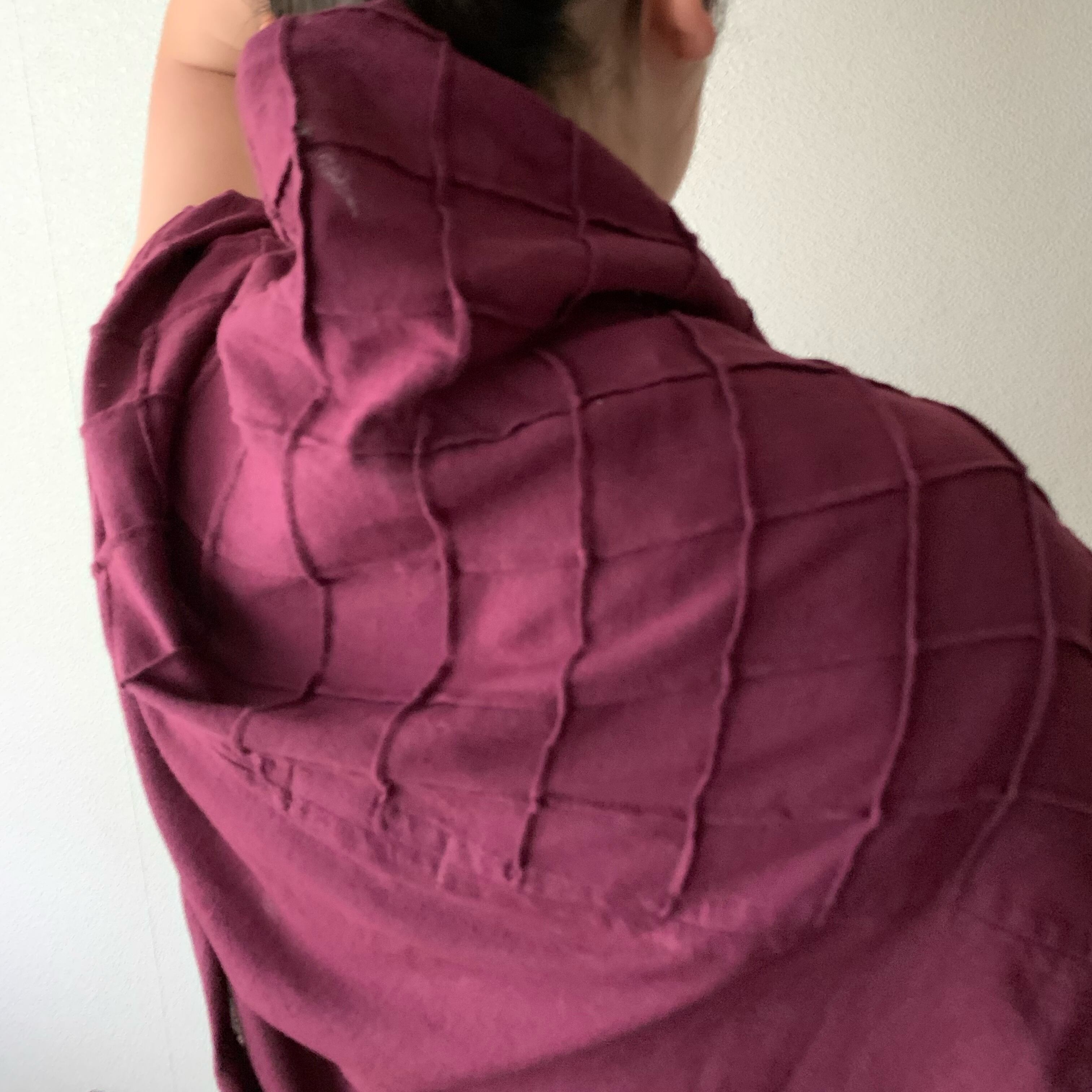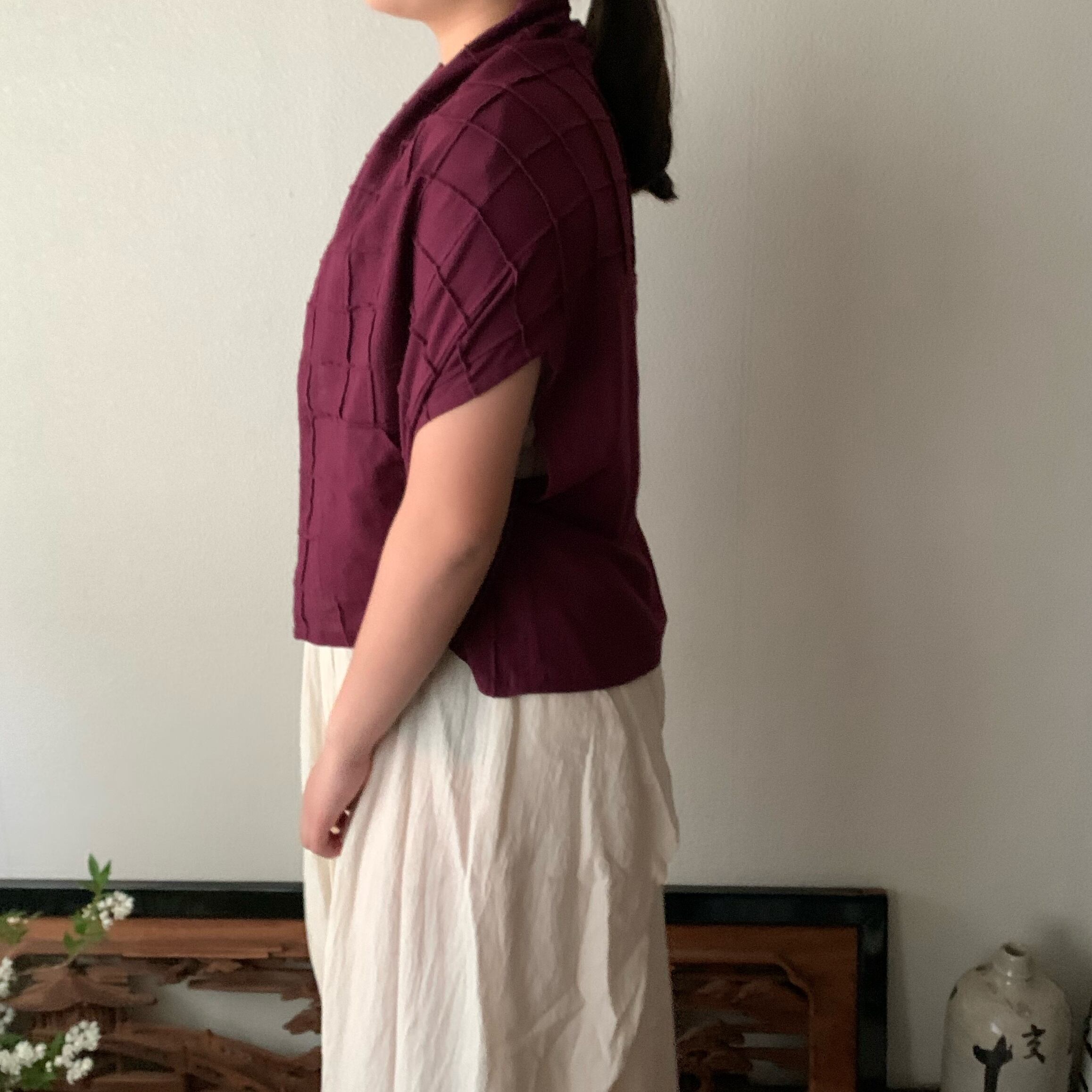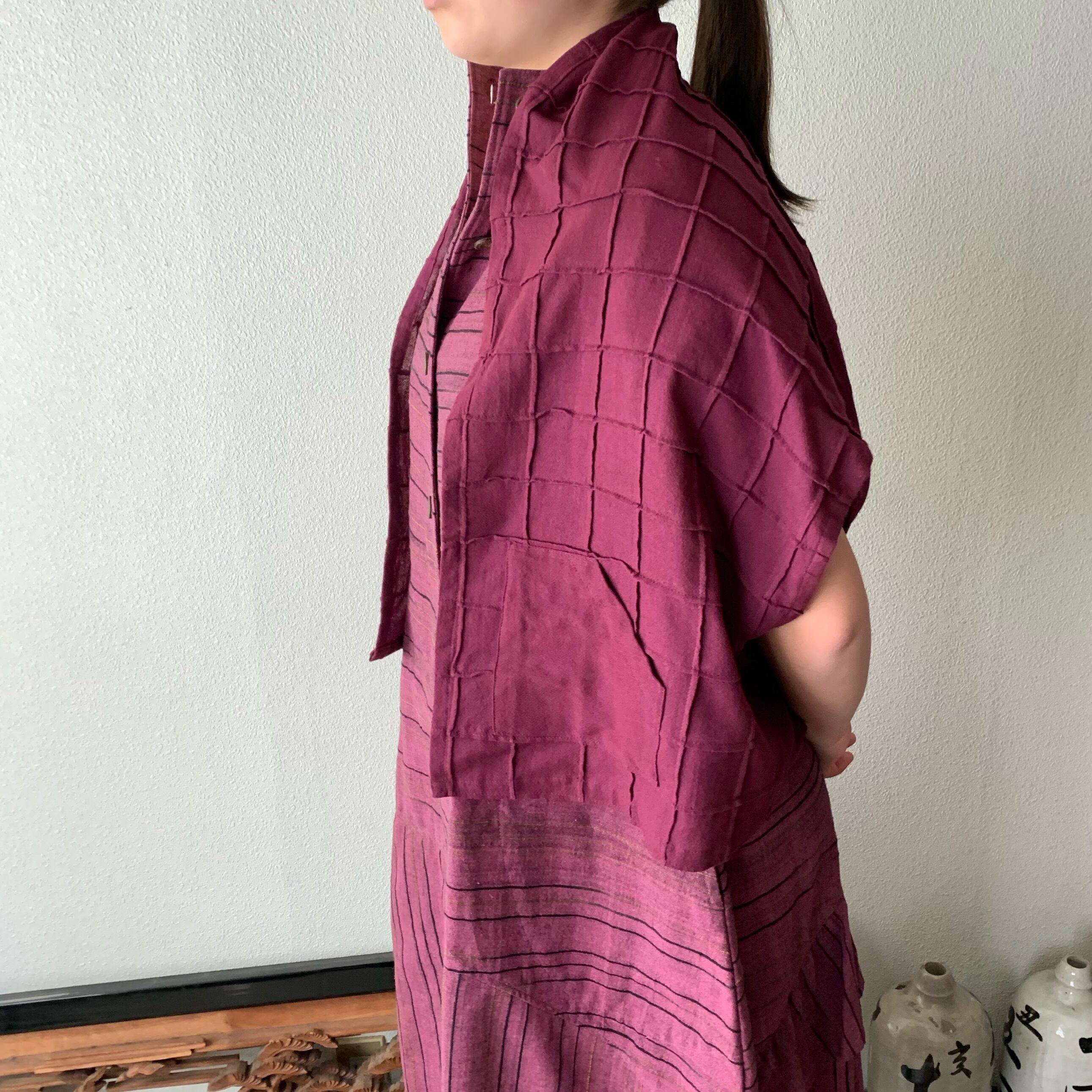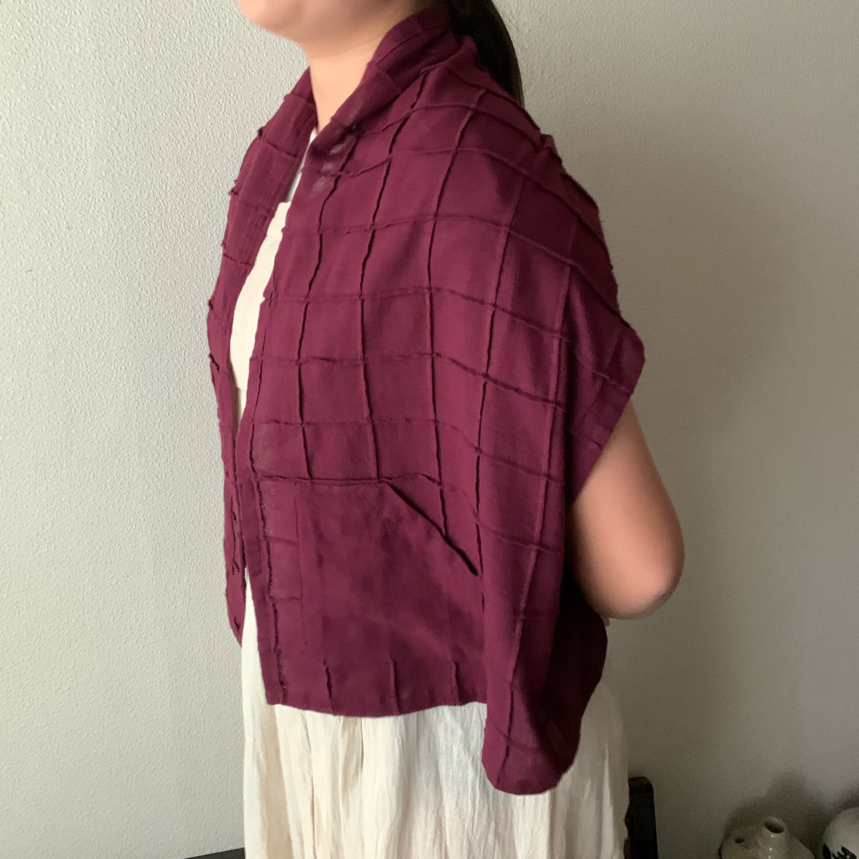 上下逆さで2way ピンタックの格子がアクセントのコットンボレロ 紫色