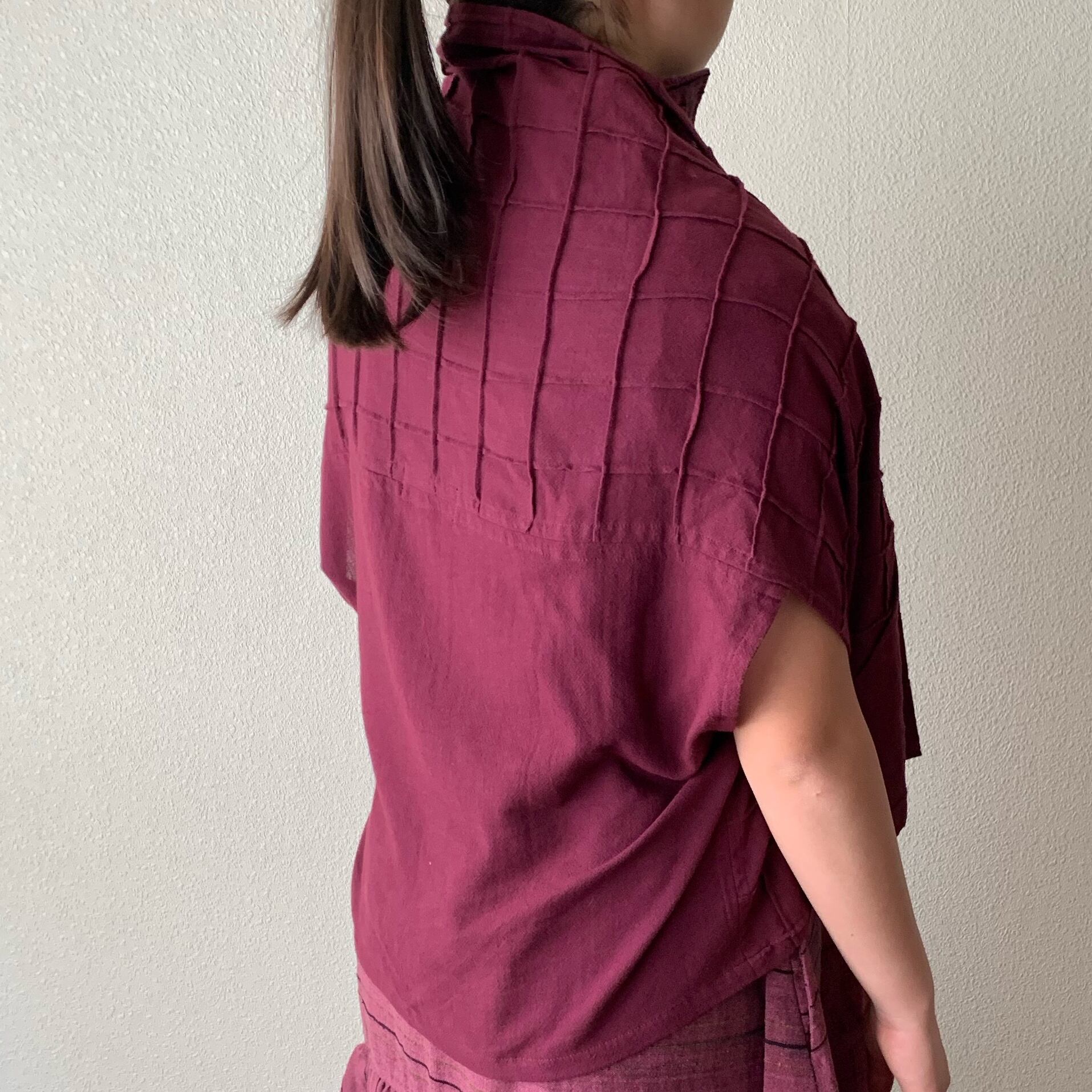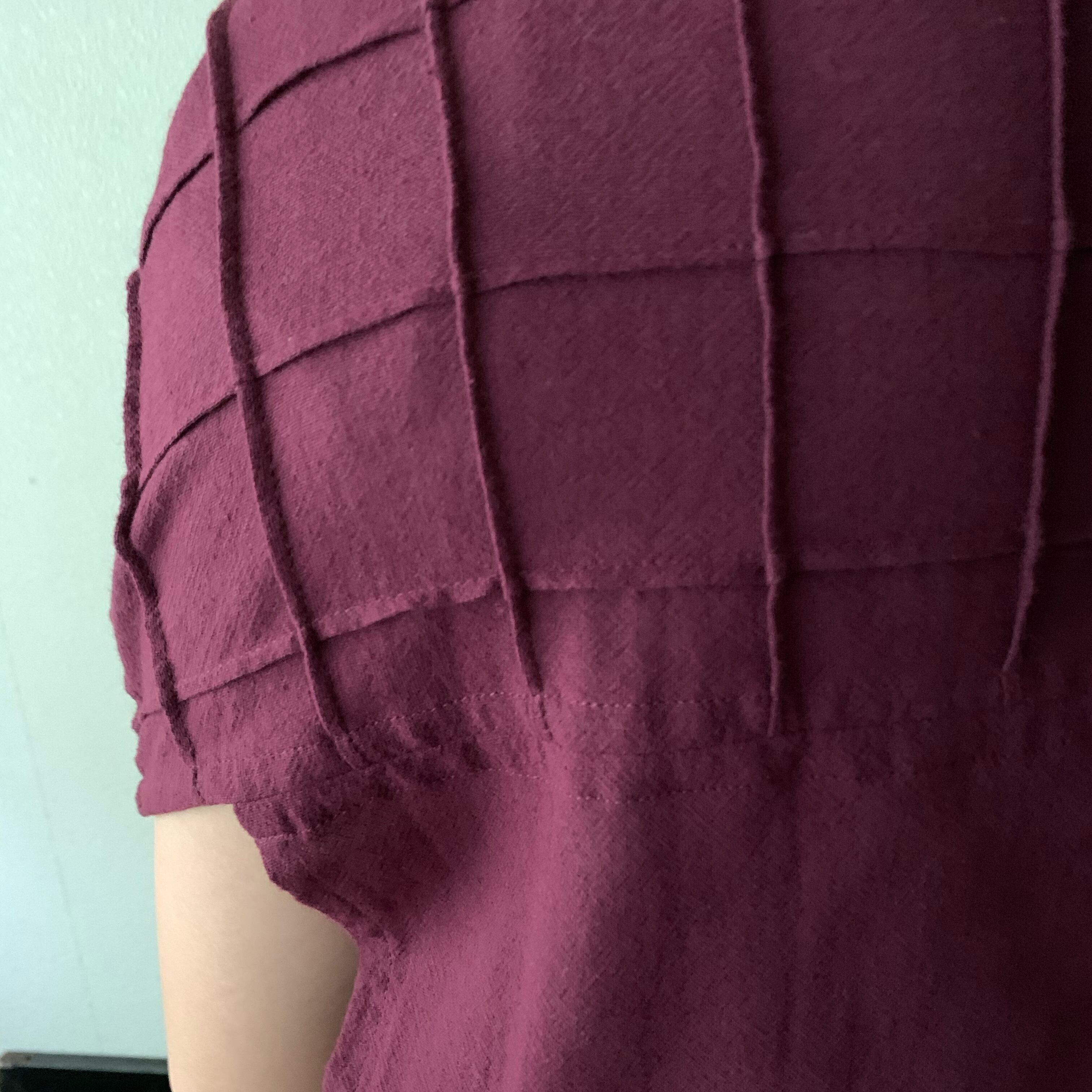 ピンタックの格子が無地の生地を引き立て、ワンピース上でもTシャツ上でも着こなしていただけます。
