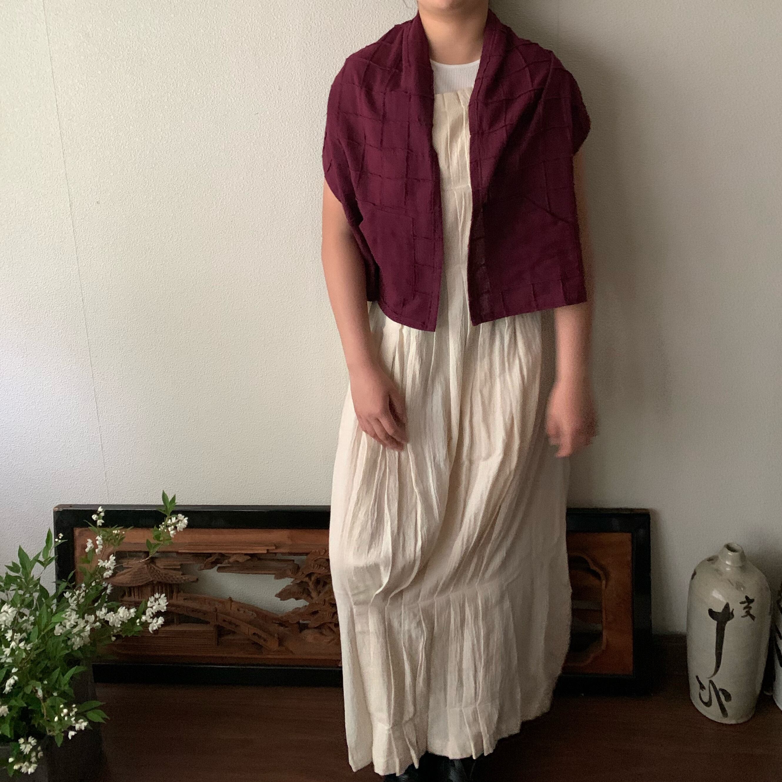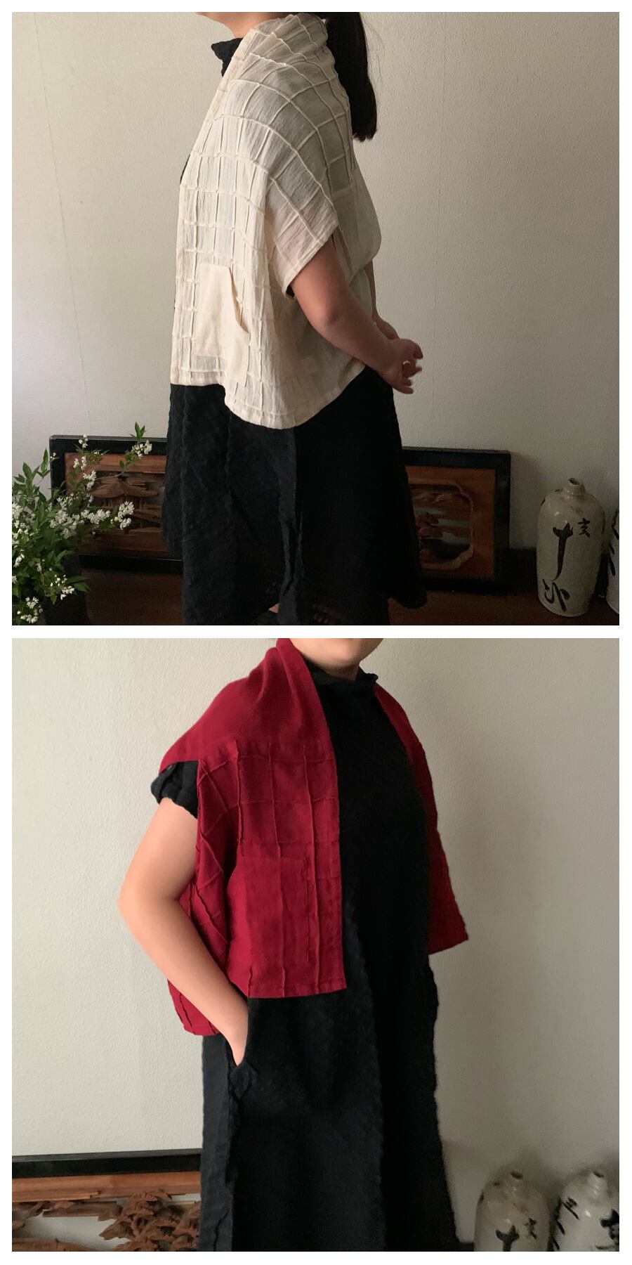 『上下逆さで2way ピンタックの格子がアクセントのコットンボレロ』