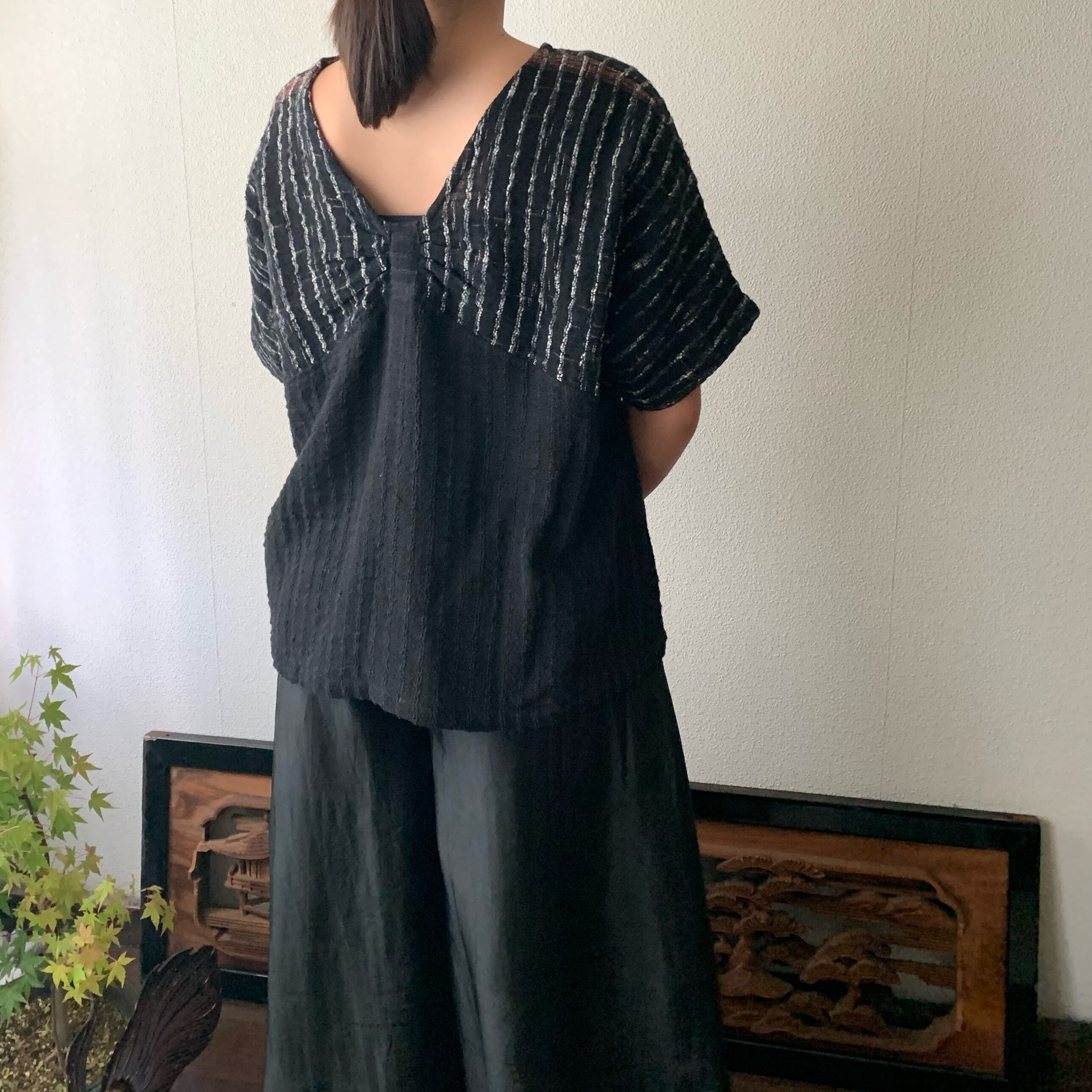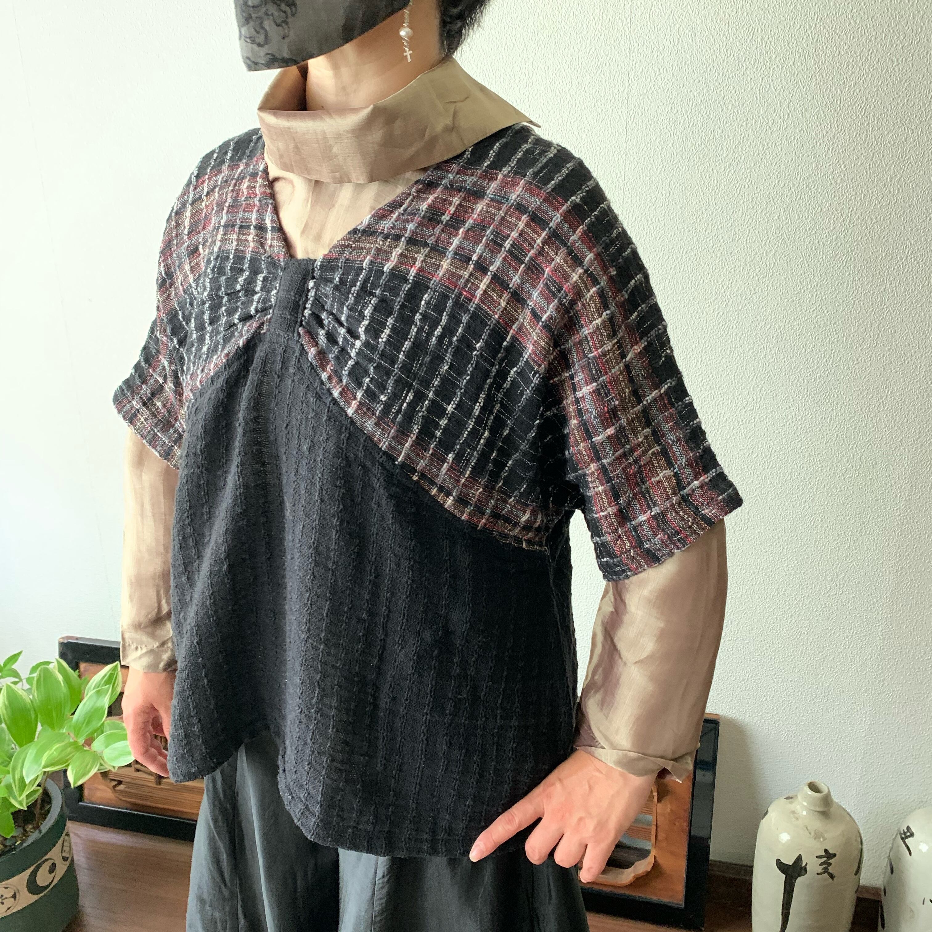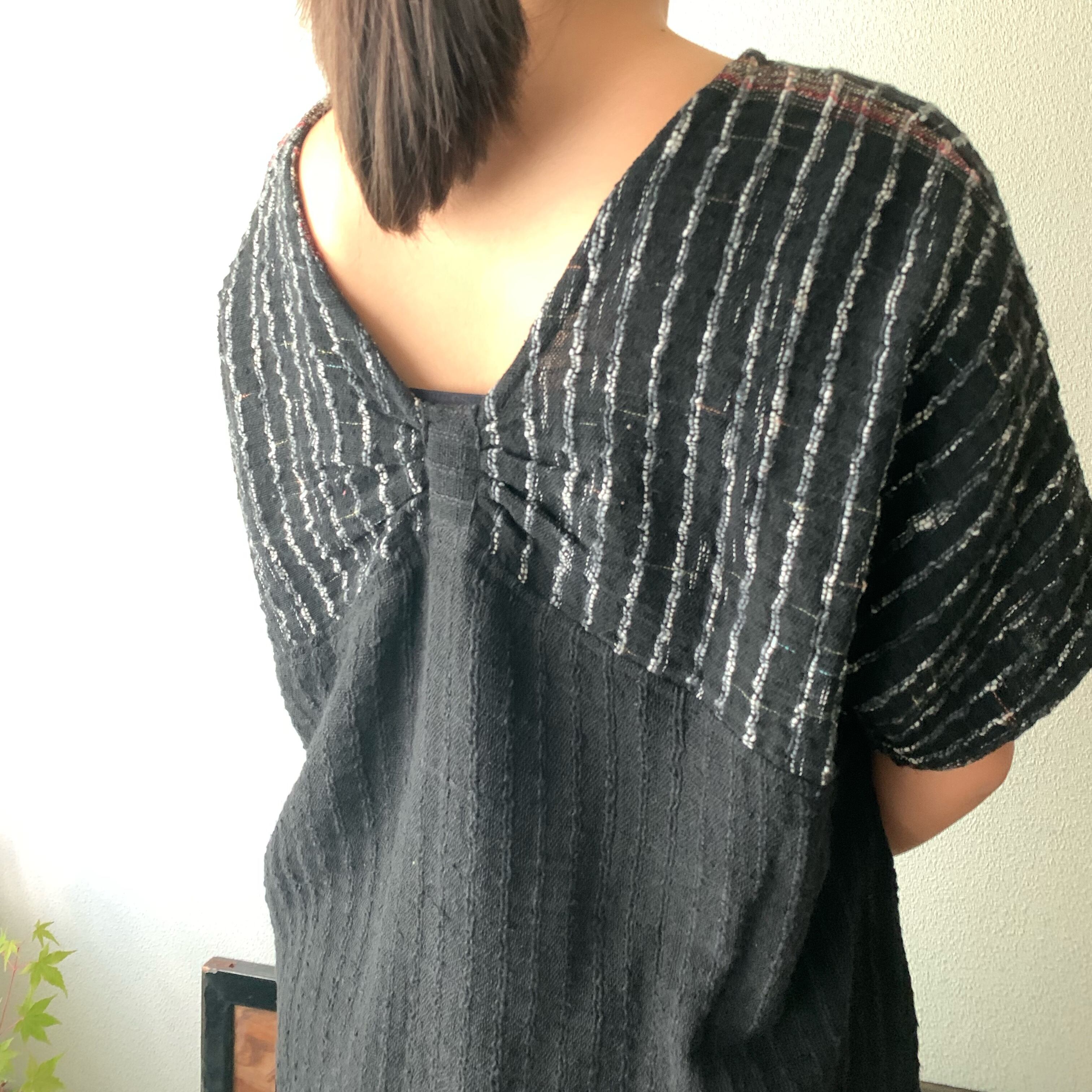 『手織り綿バタフライブラウス 胸元のデザインがバタフライを連想させるようなドルマントップ』