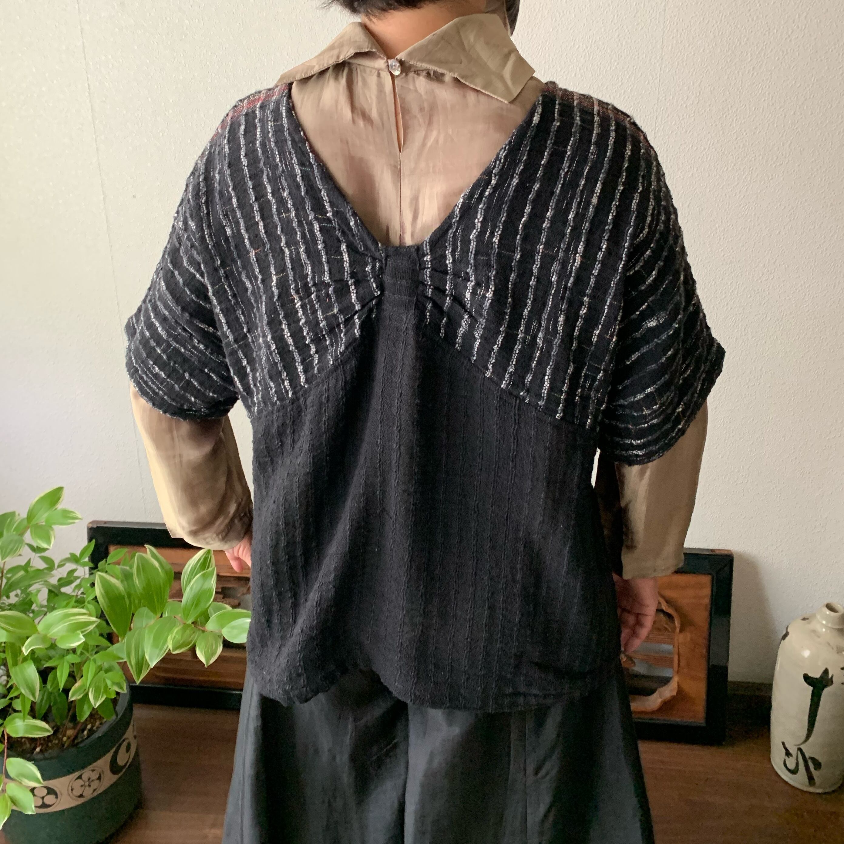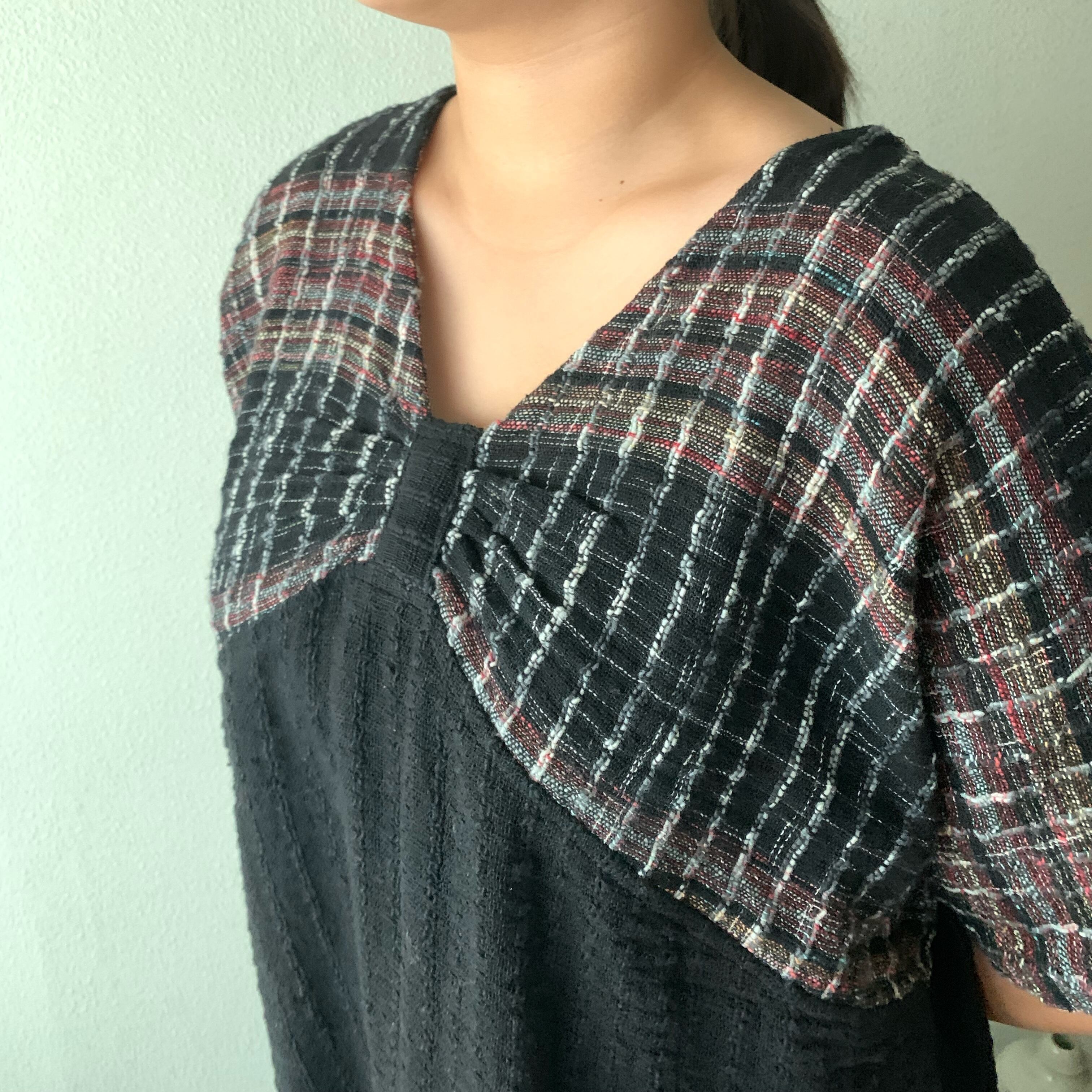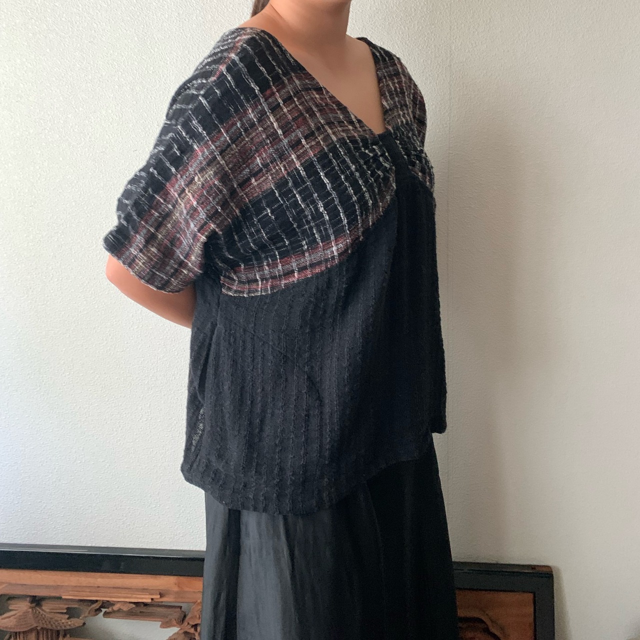 『手織り綿バタフライブラウス 胸元のデザインがバタフライを連想させるようなドルマントップ』
