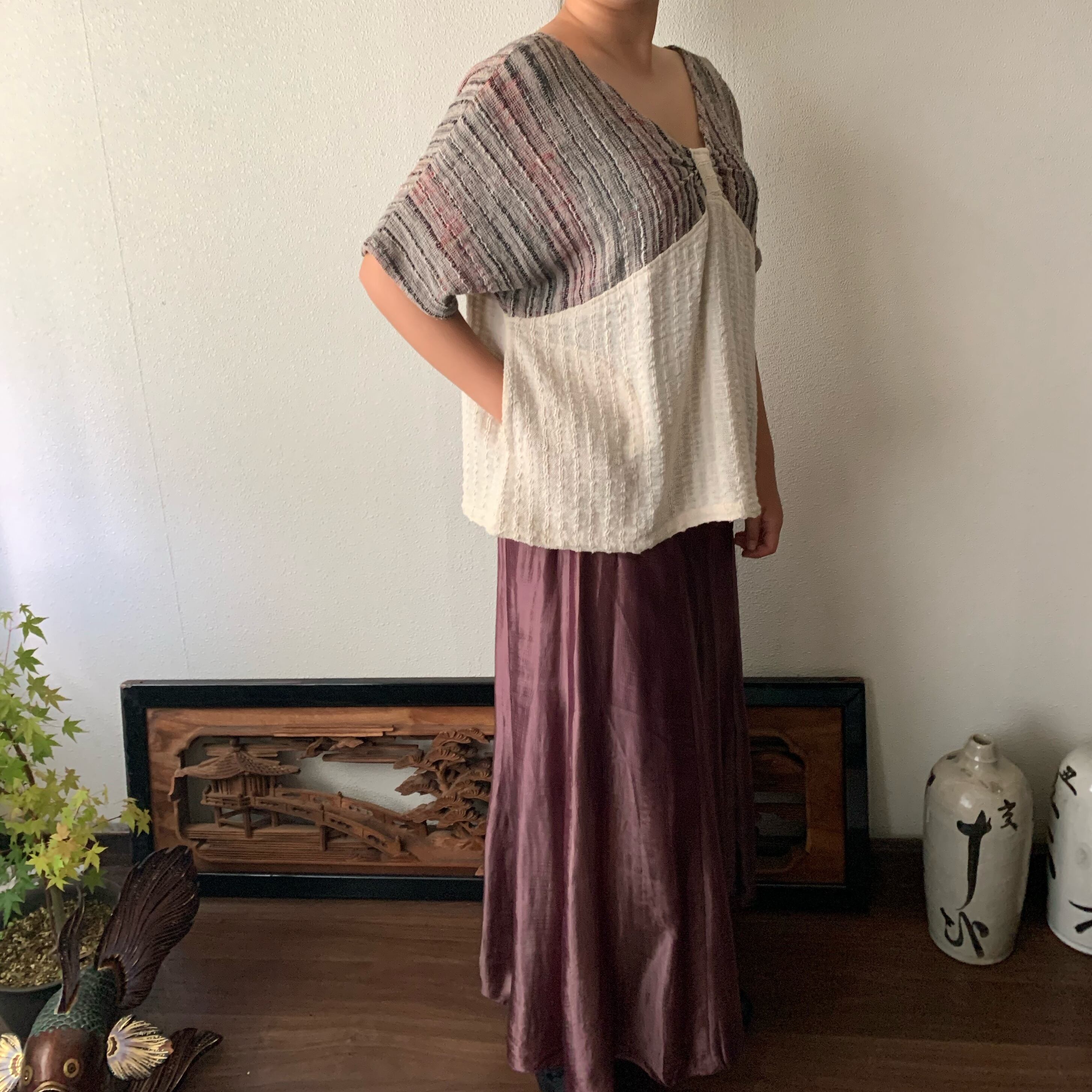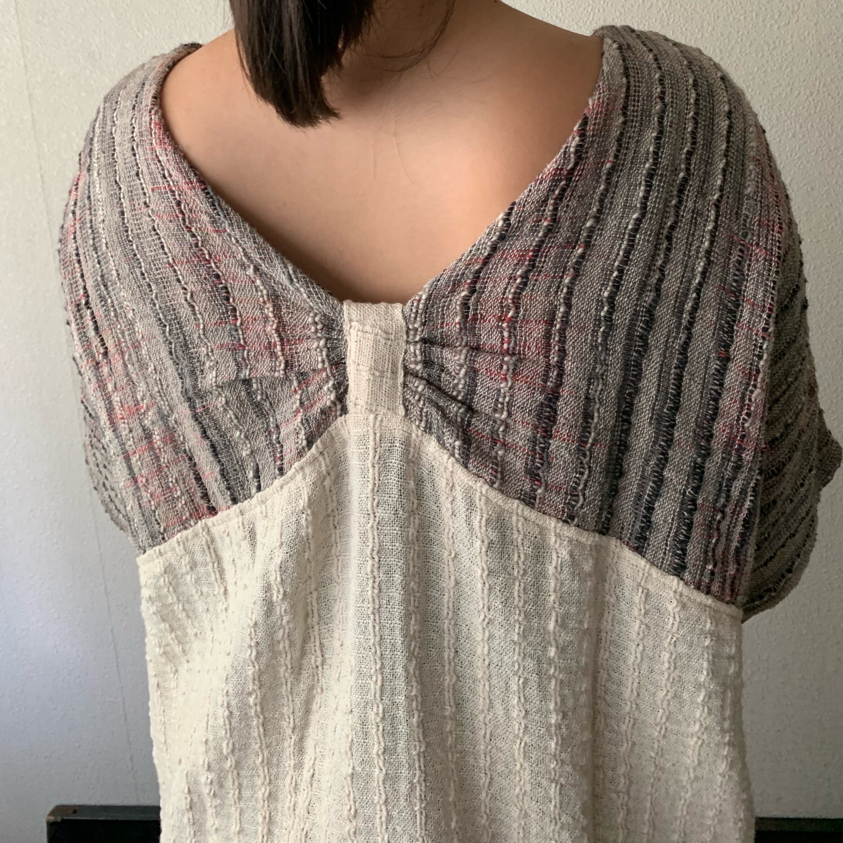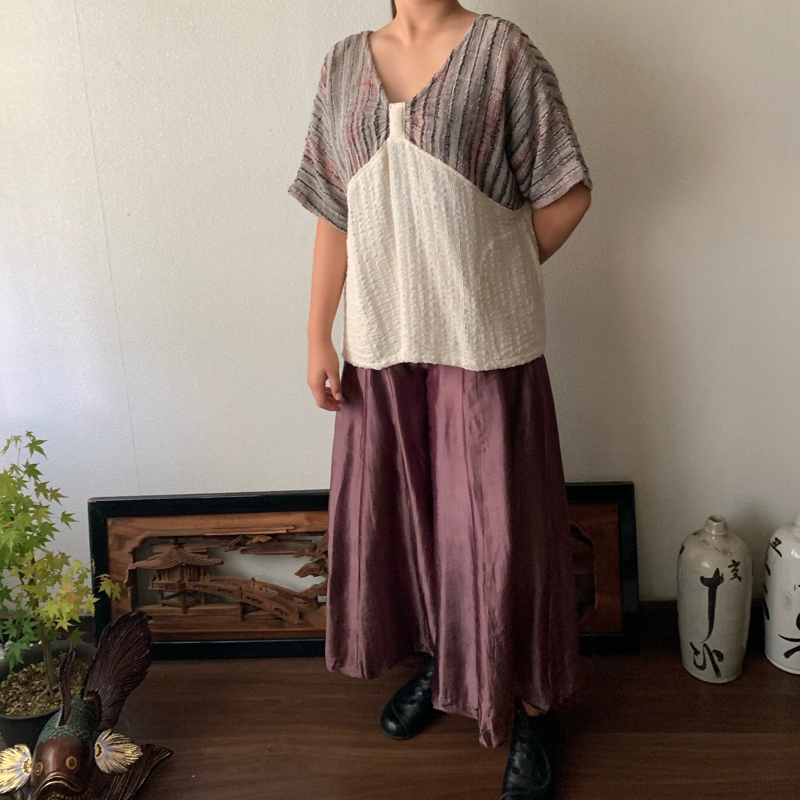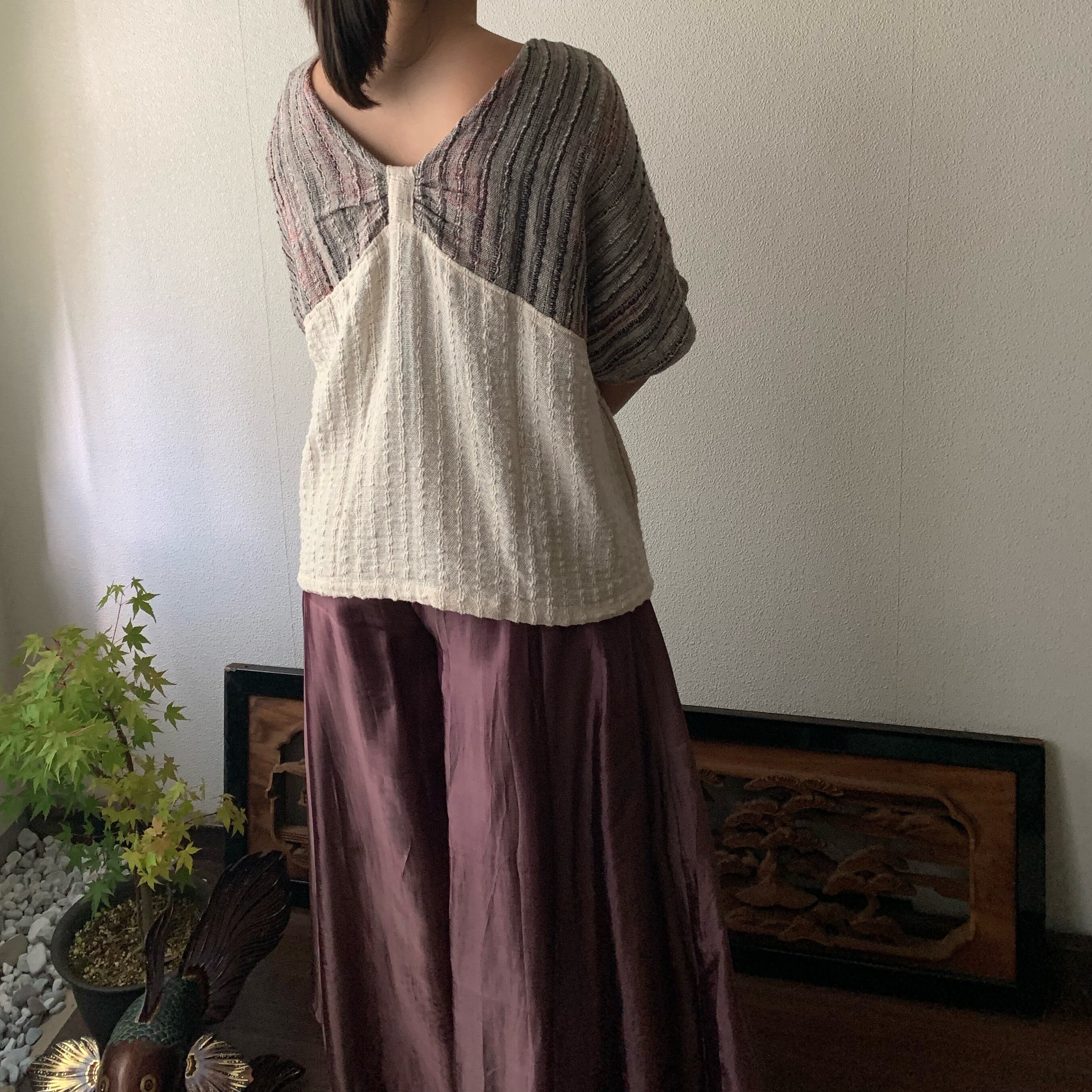 『手織り綿バタフライブラウス 胸元のデザインがバタフライを連想させるようなドルマントップ』