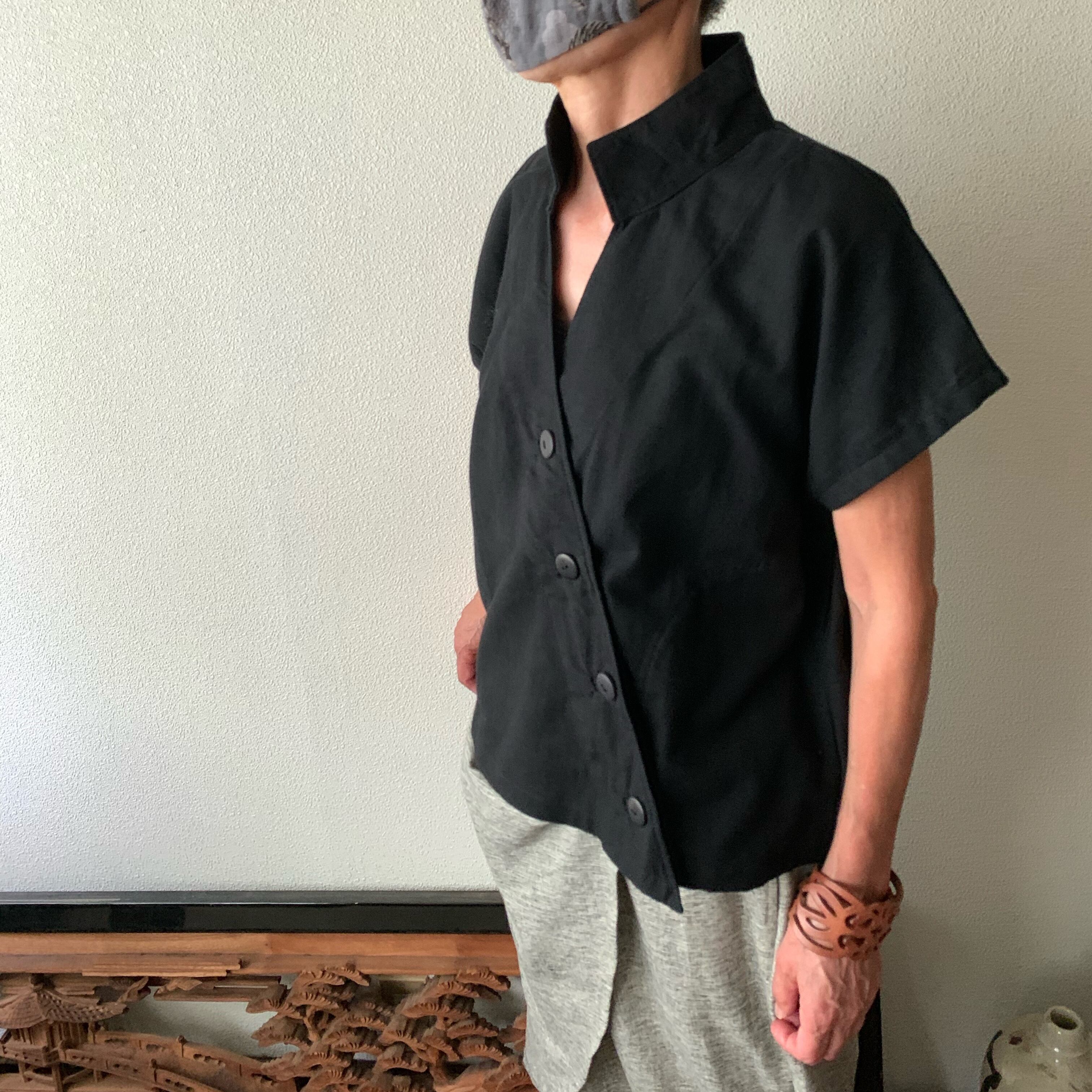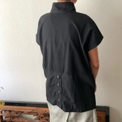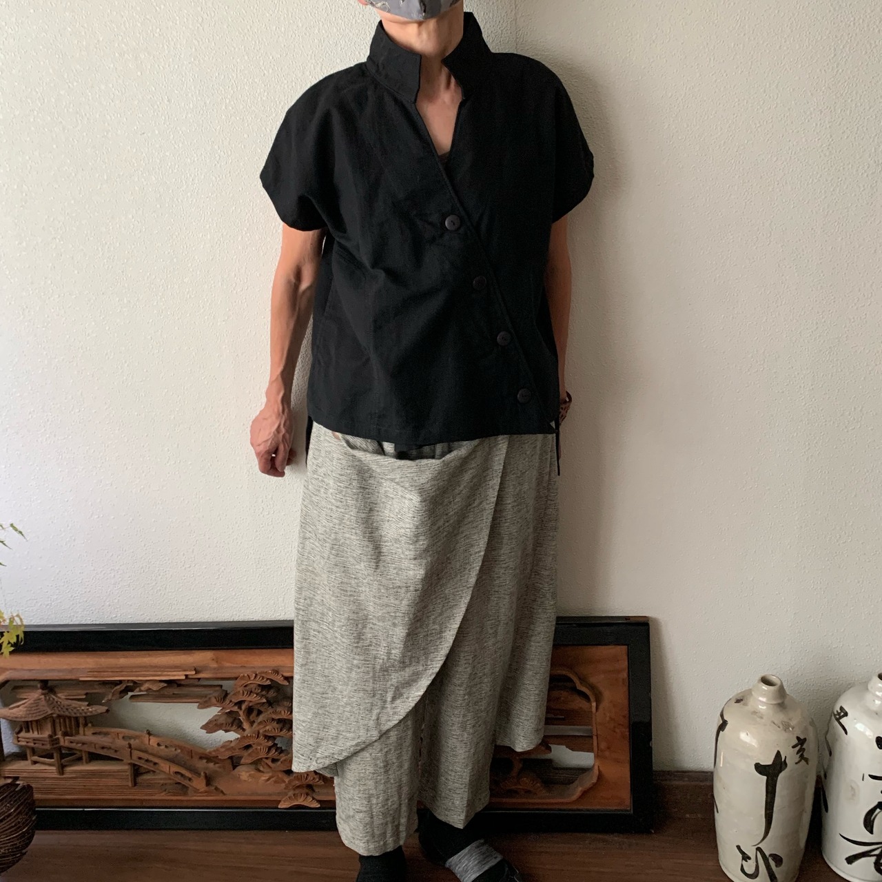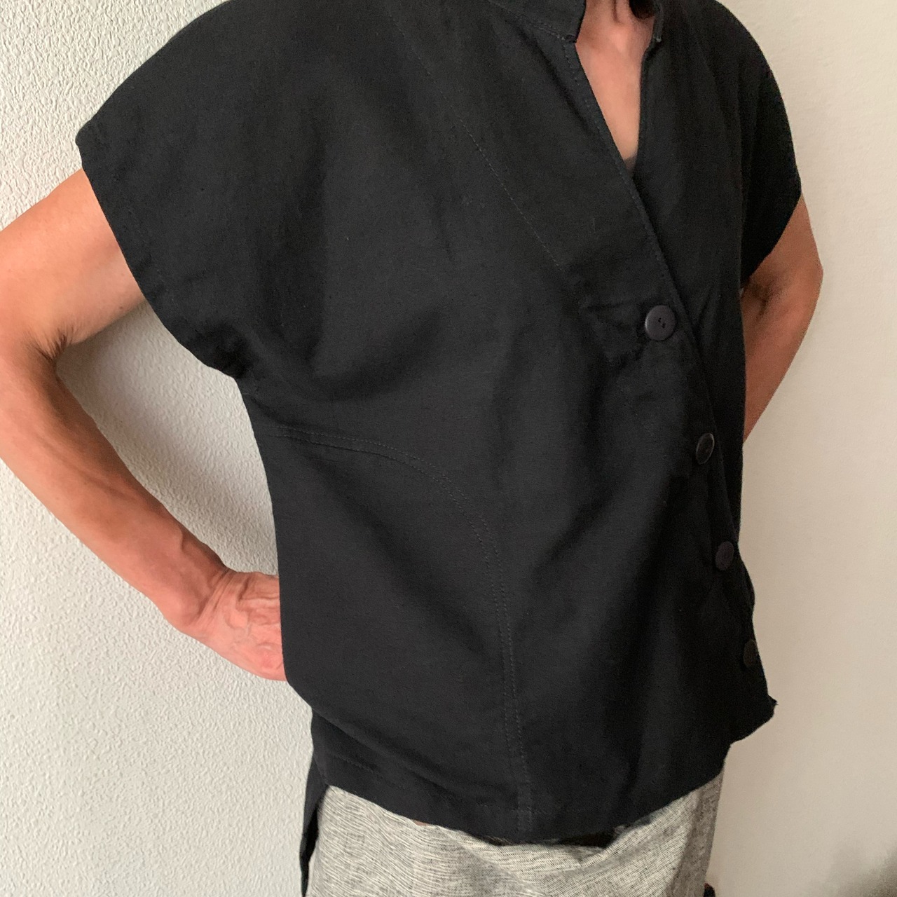 『前開きでシンプルに着こなせるけどディテール凝ってる手織り綿フレンチスリーブブラウスベスト』
