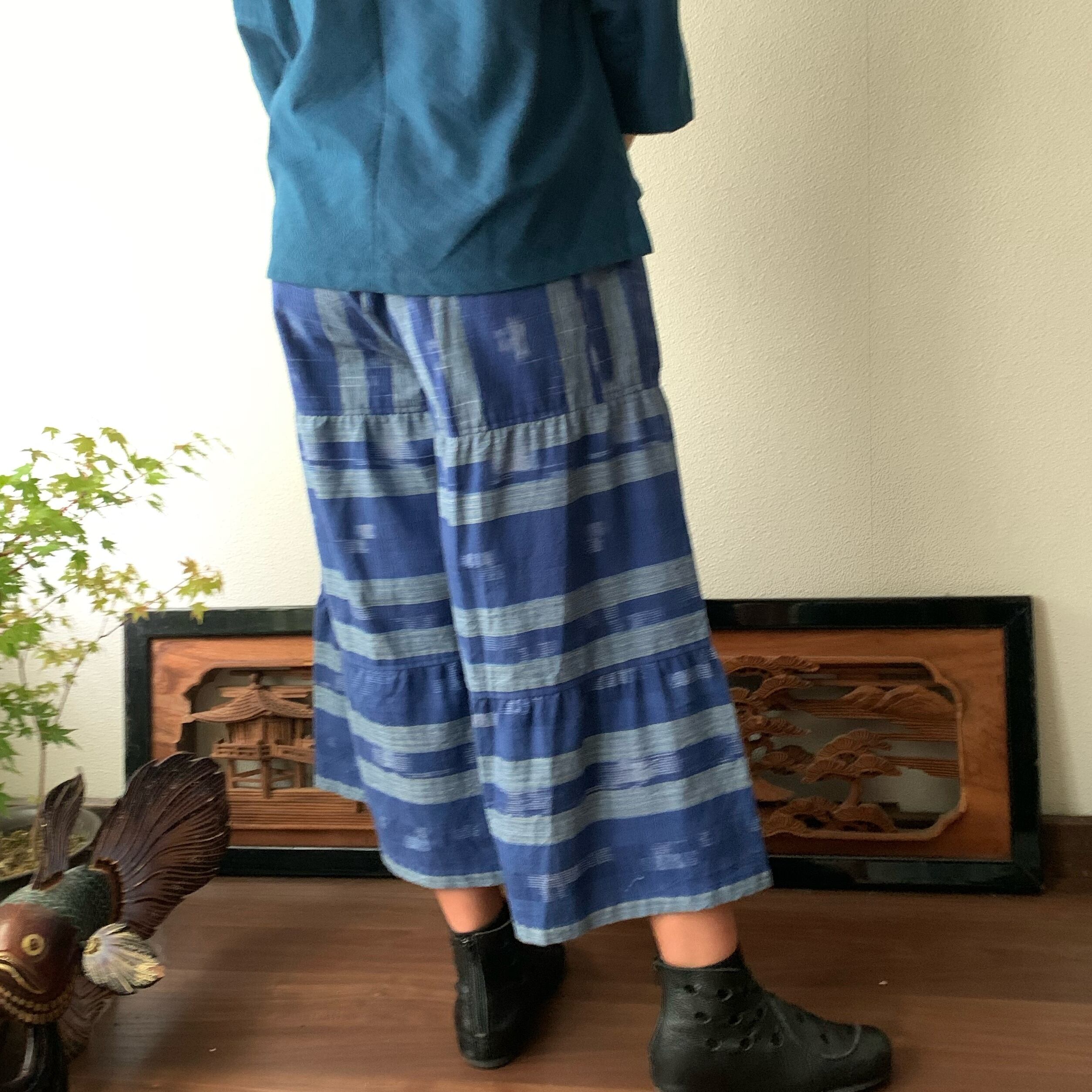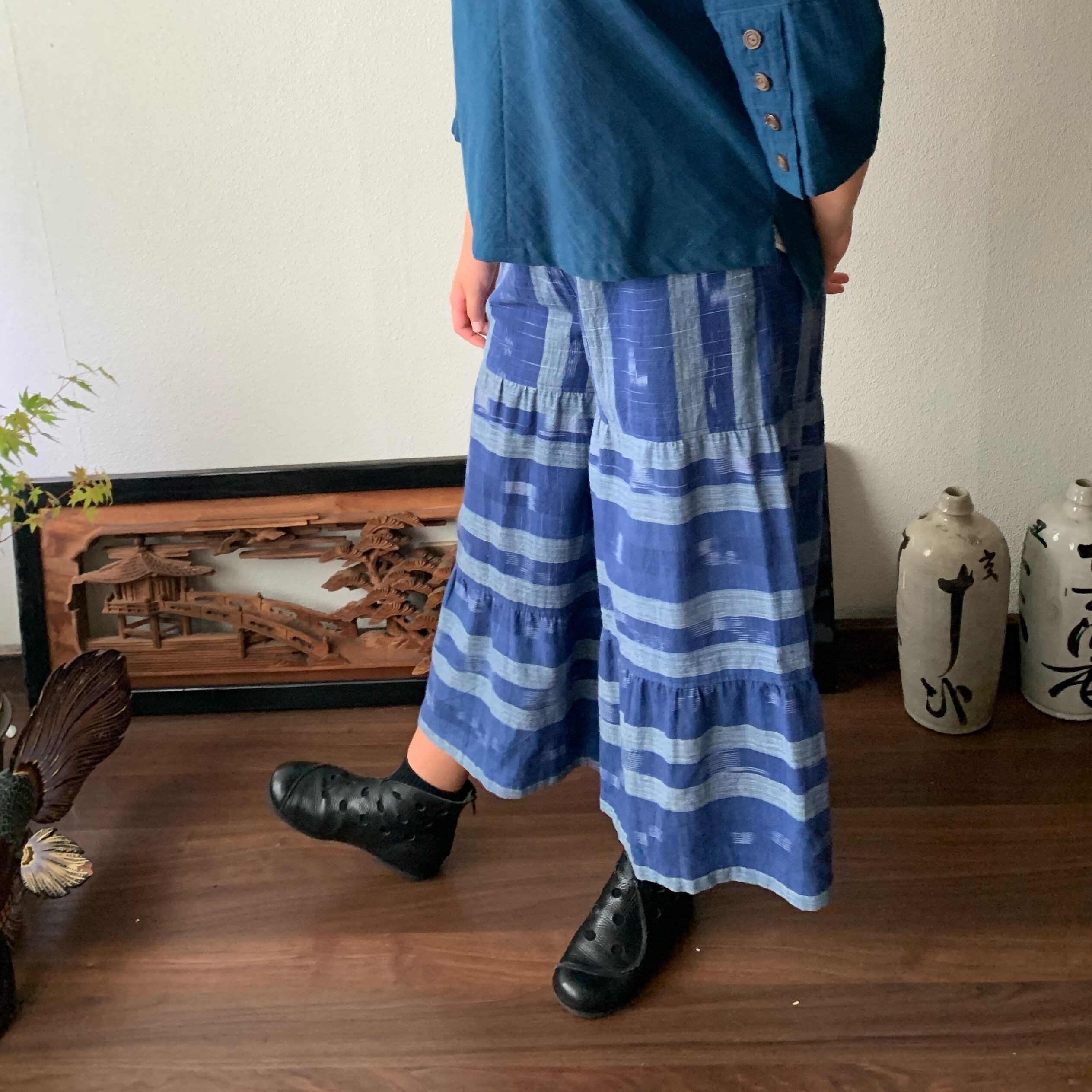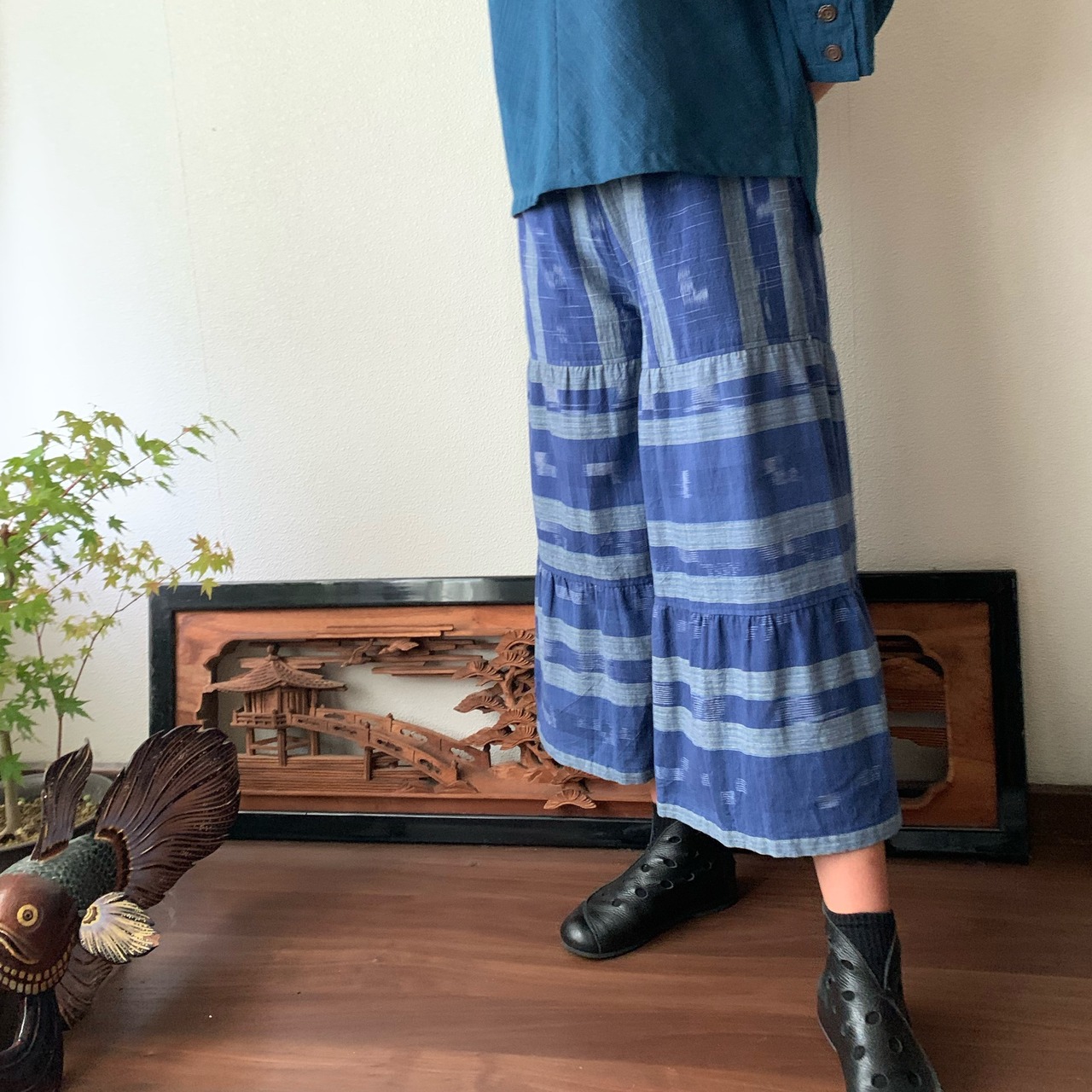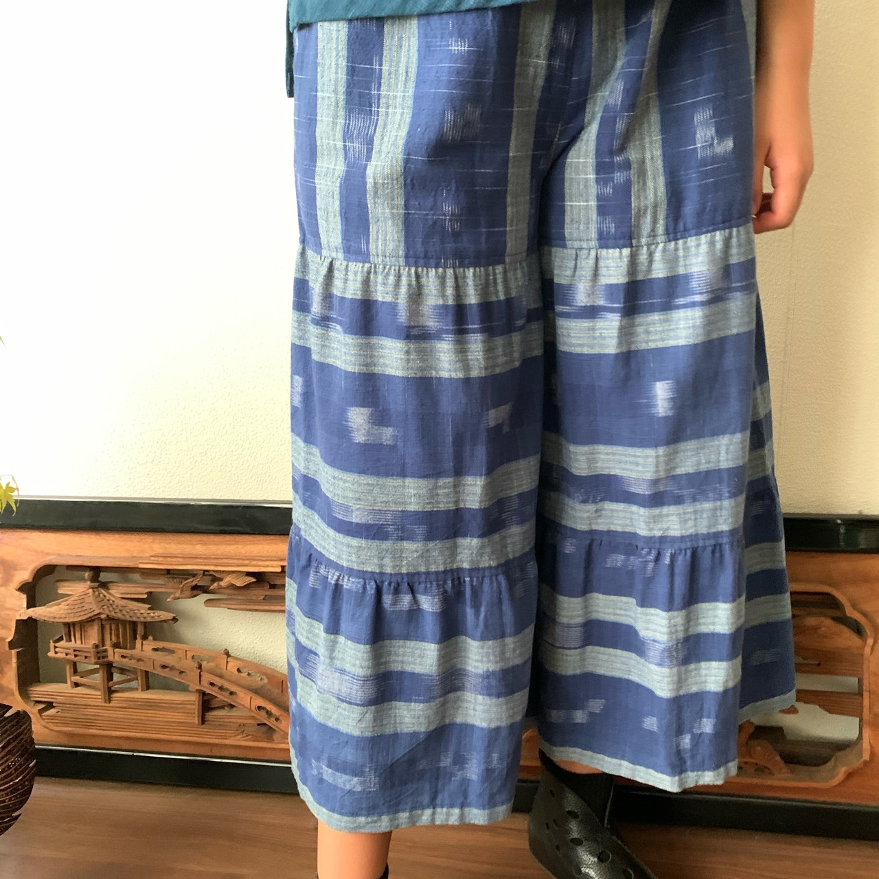『手織り綿ティアードガウチョパンツ 裾さばきも楽しいスカート風』