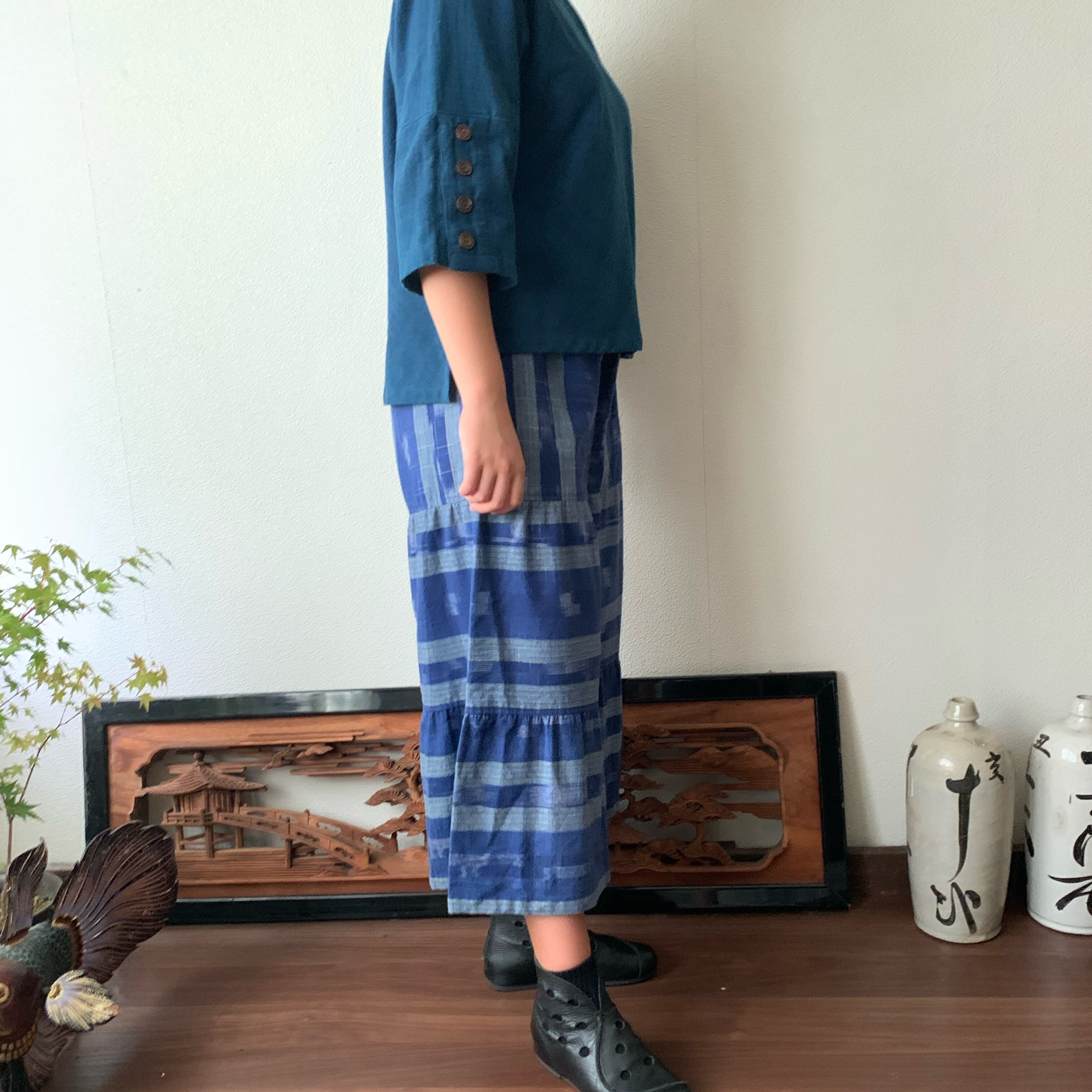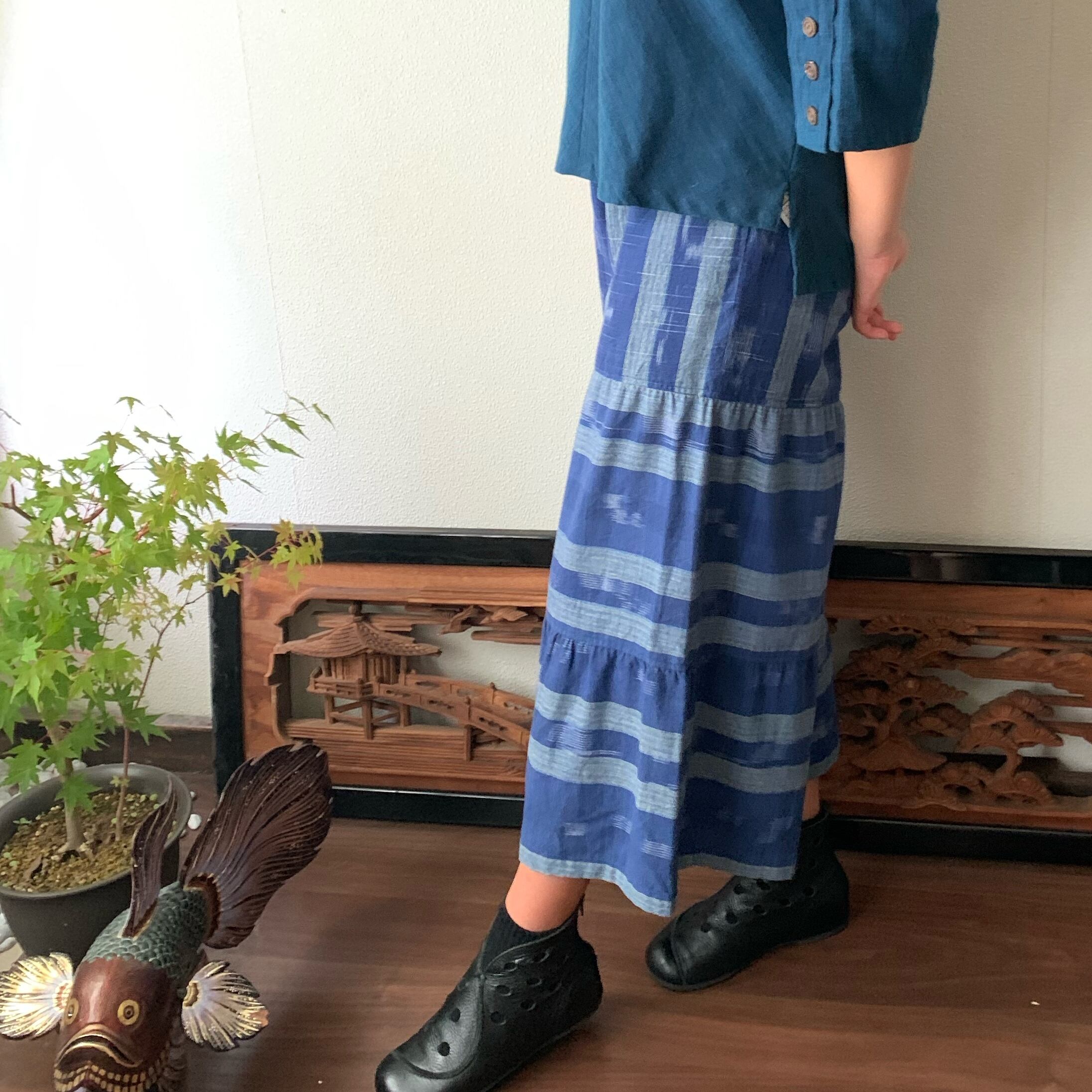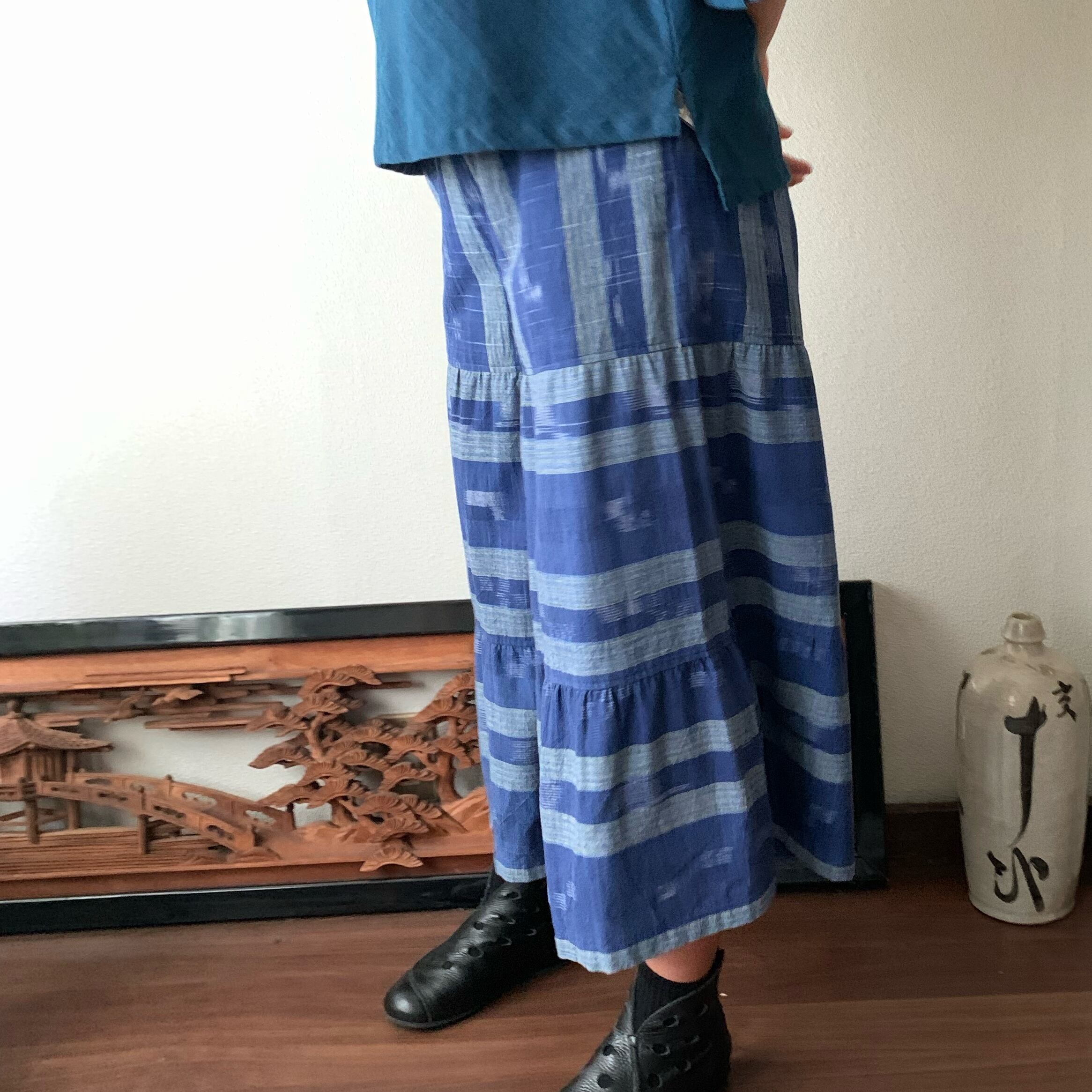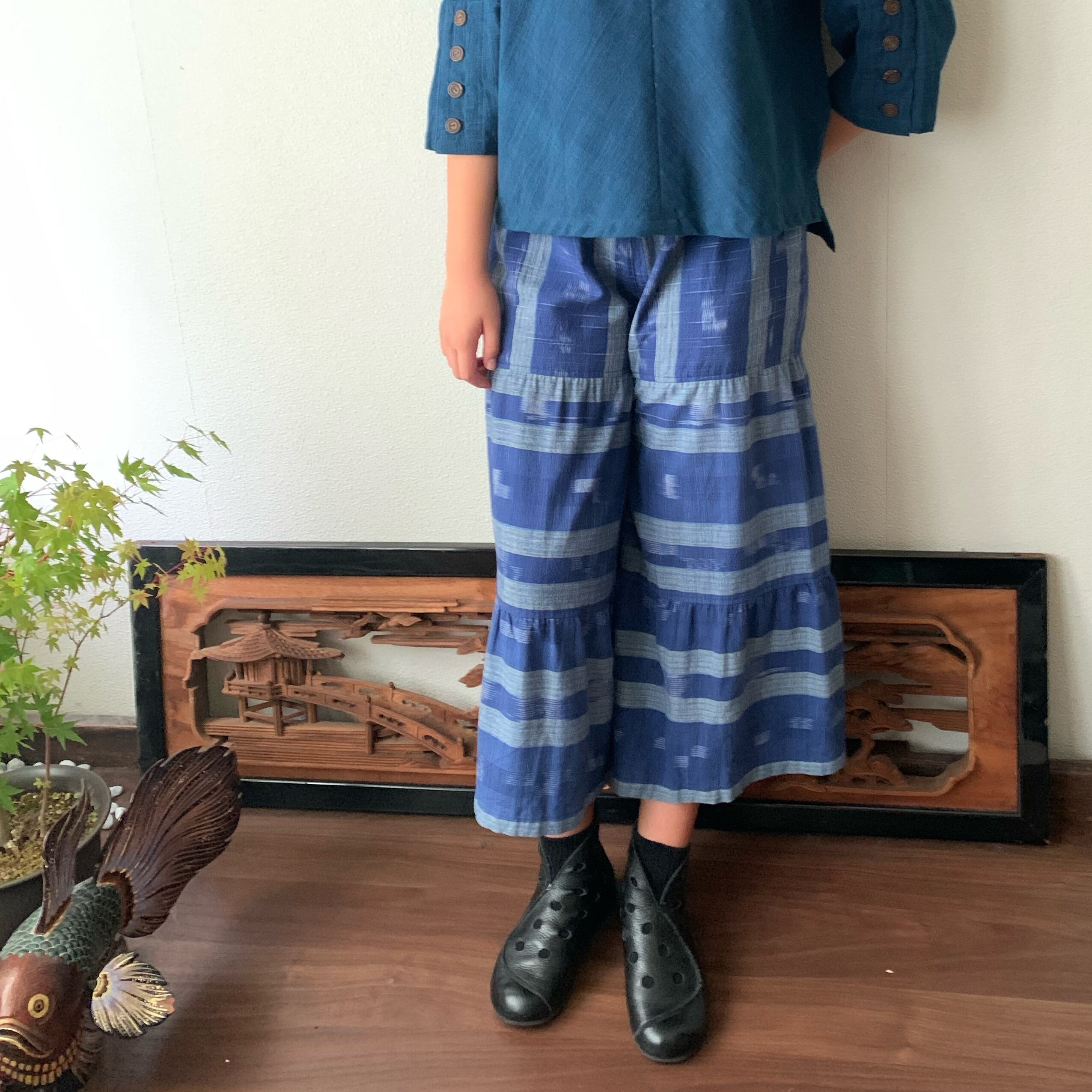 『手織り綿ティアードガウチョパンツ 裾さばきも楽しいスカート風』