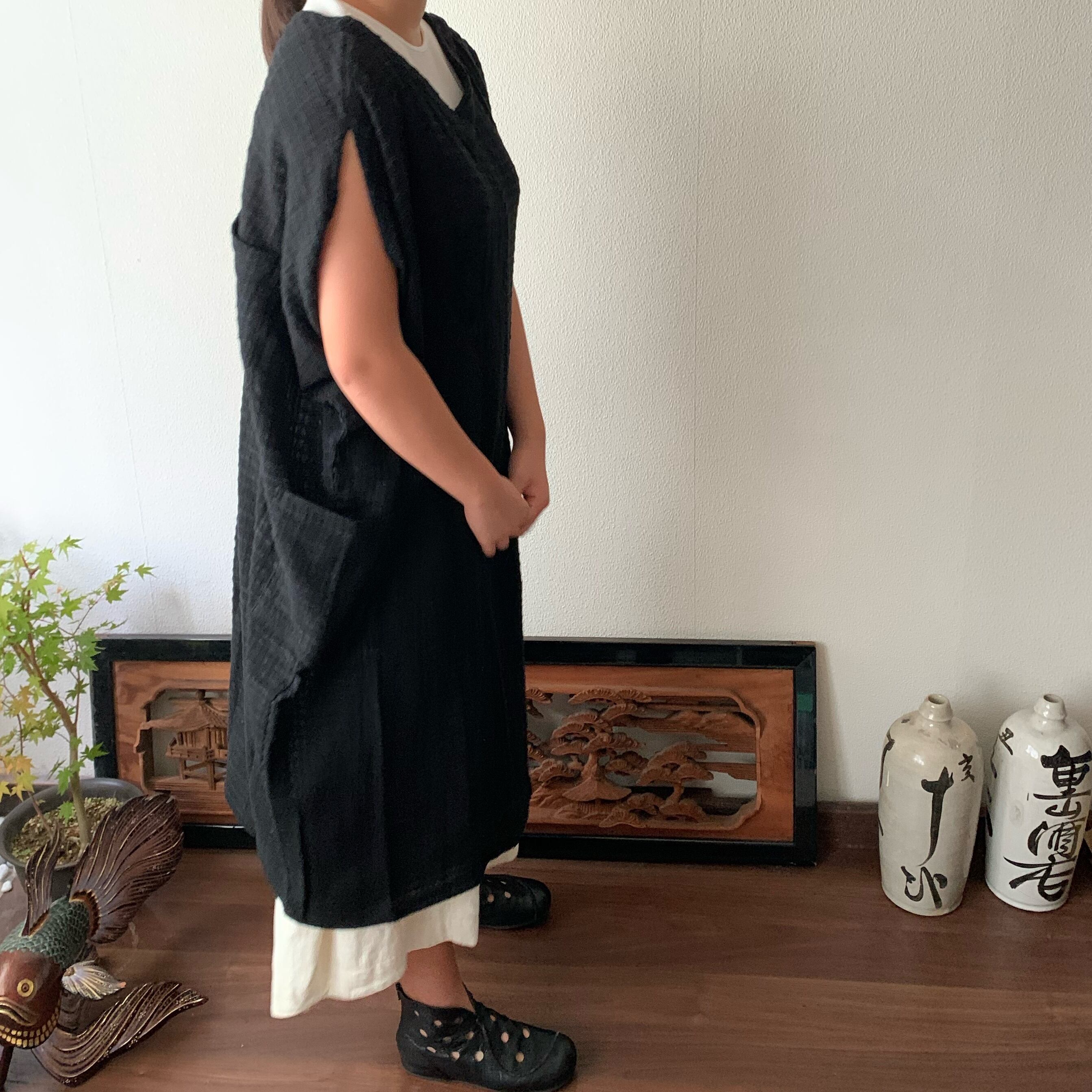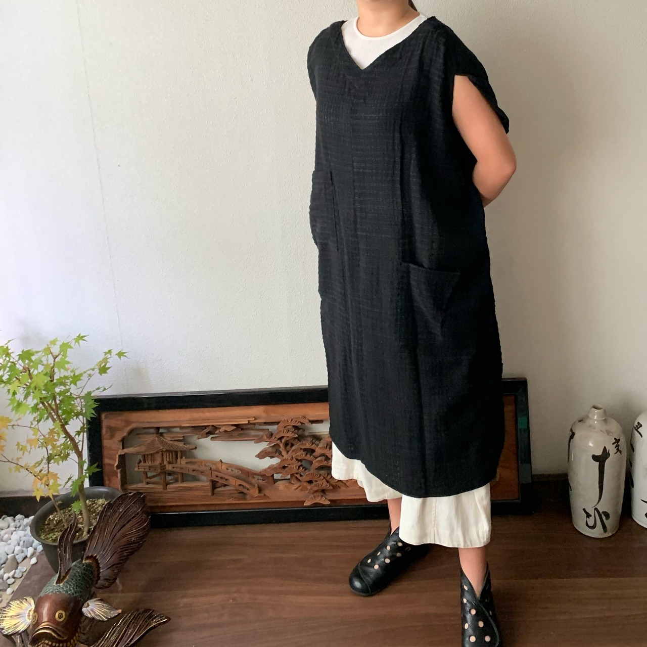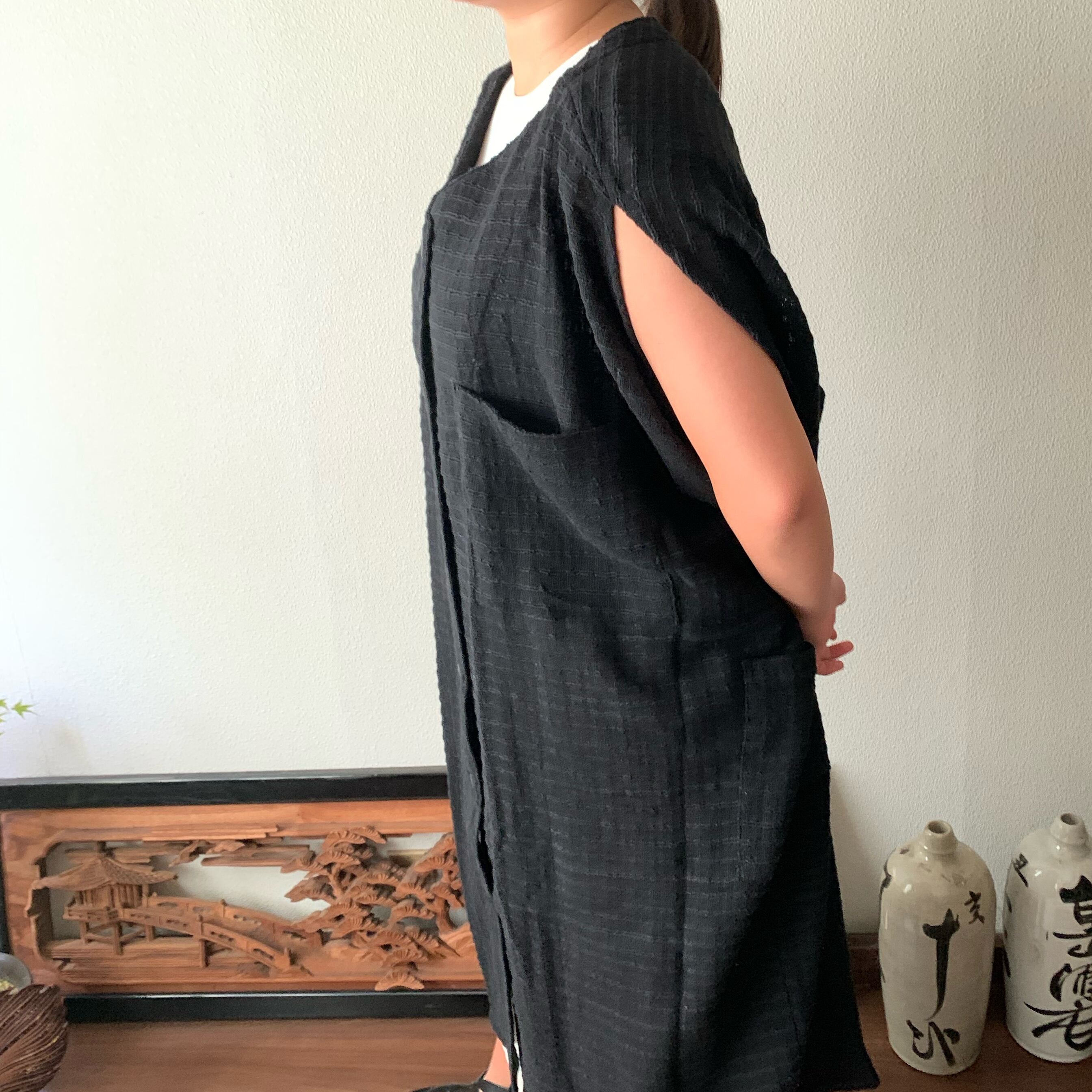 『前後で着こなせる手織り綿ワンピース 一着で何通りも楽しめ、袖とポケットでも遊ぶ』