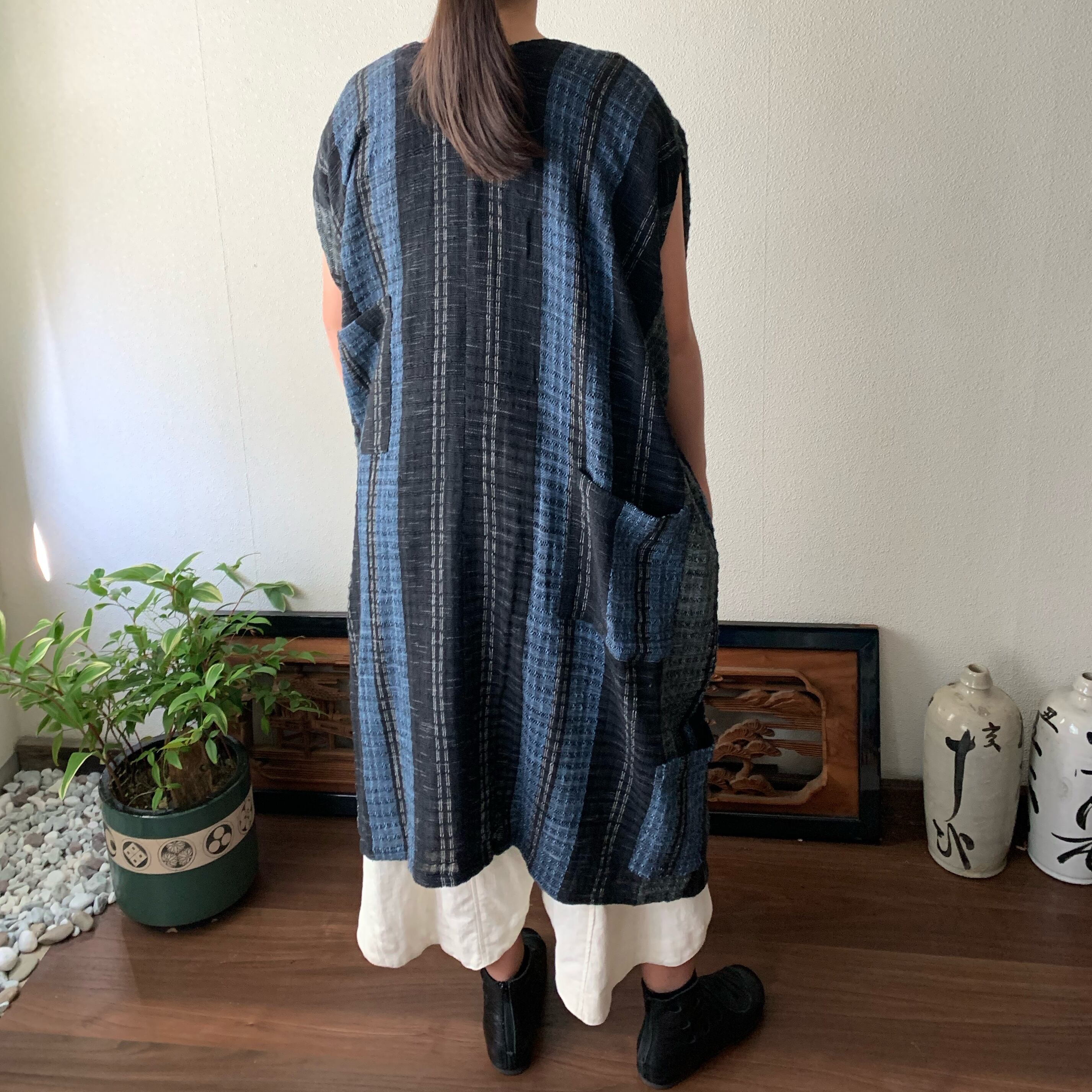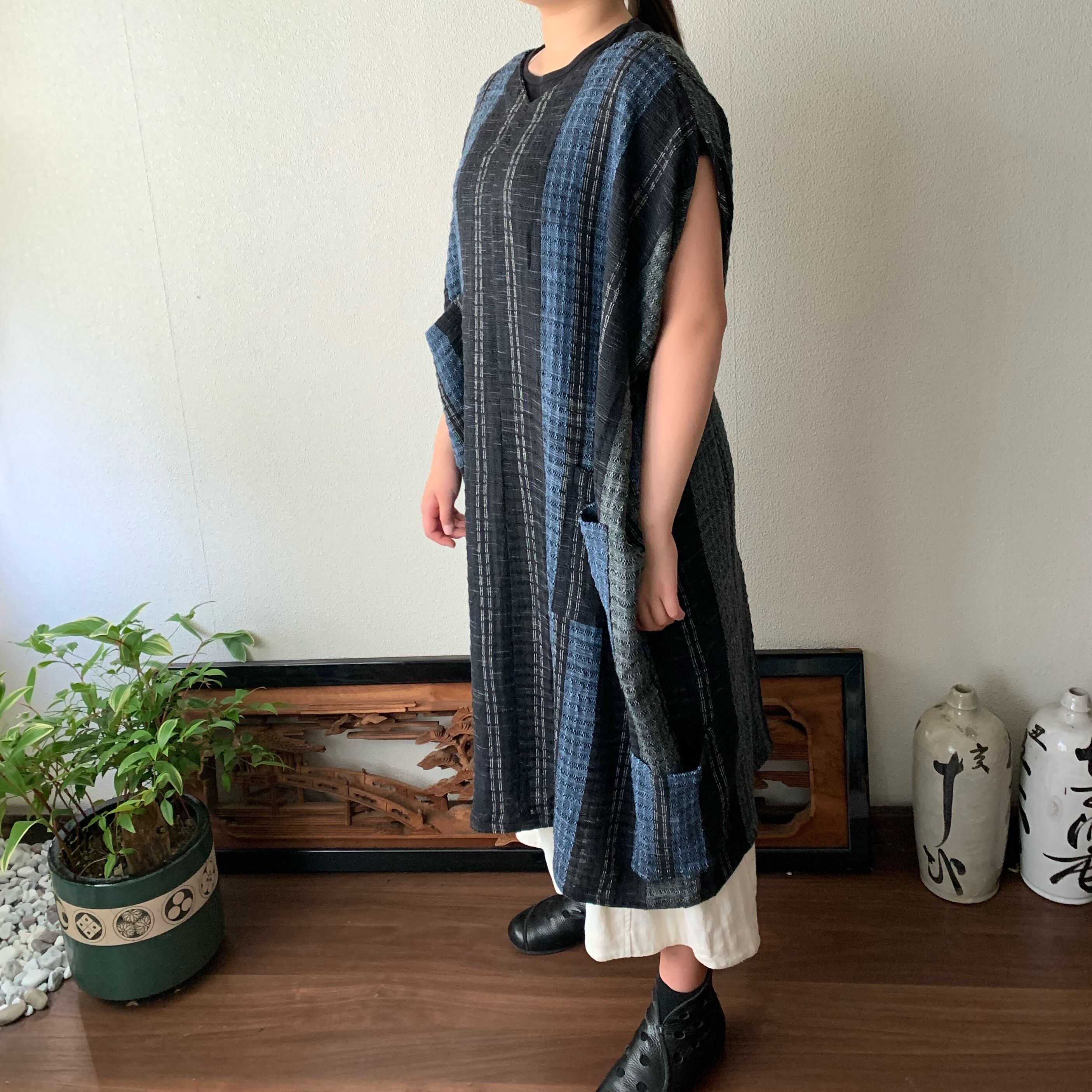 『前後で着こなせる手織り綿ワンピース 一着で何通りも楽しめ、袖とポケットでも遊ぶ』
