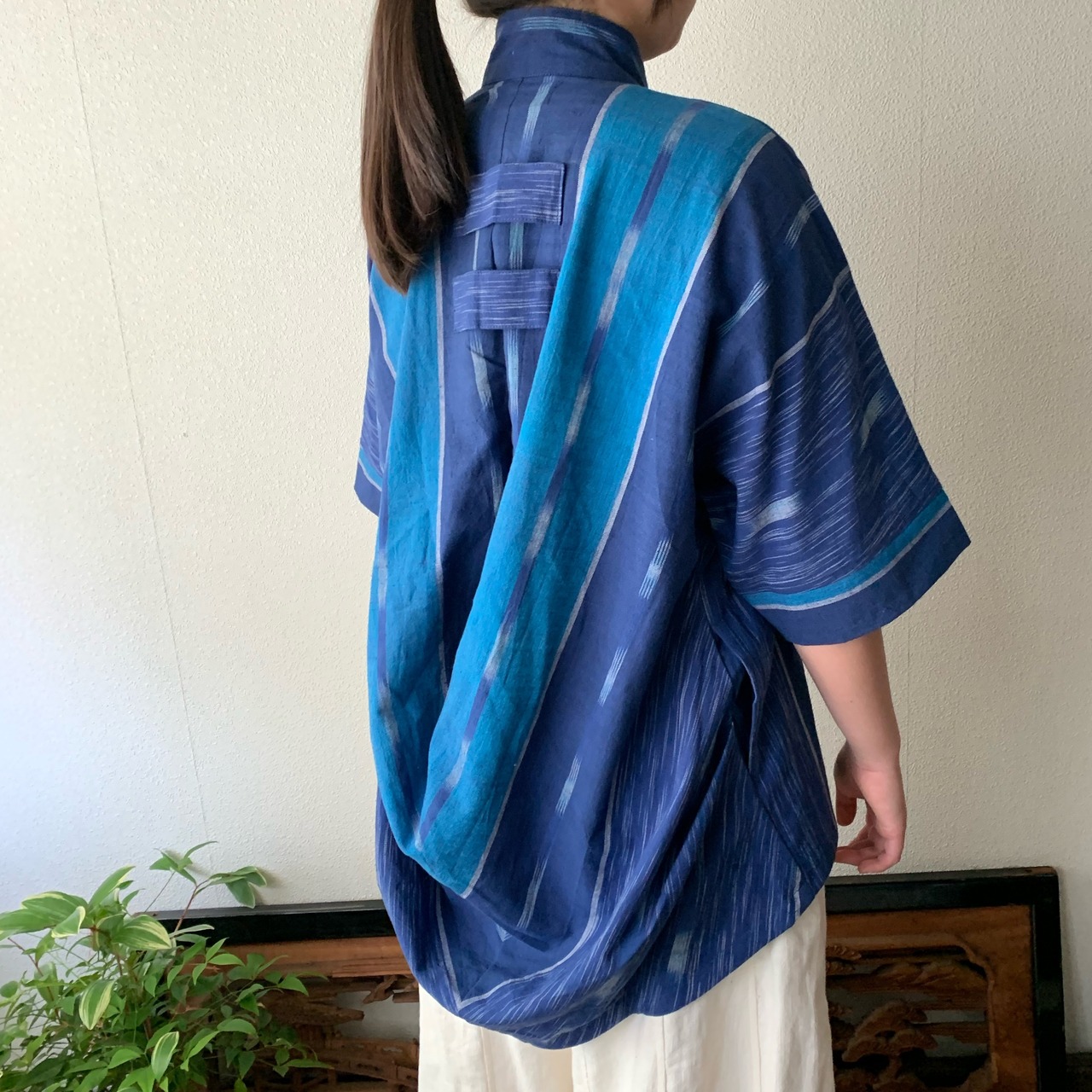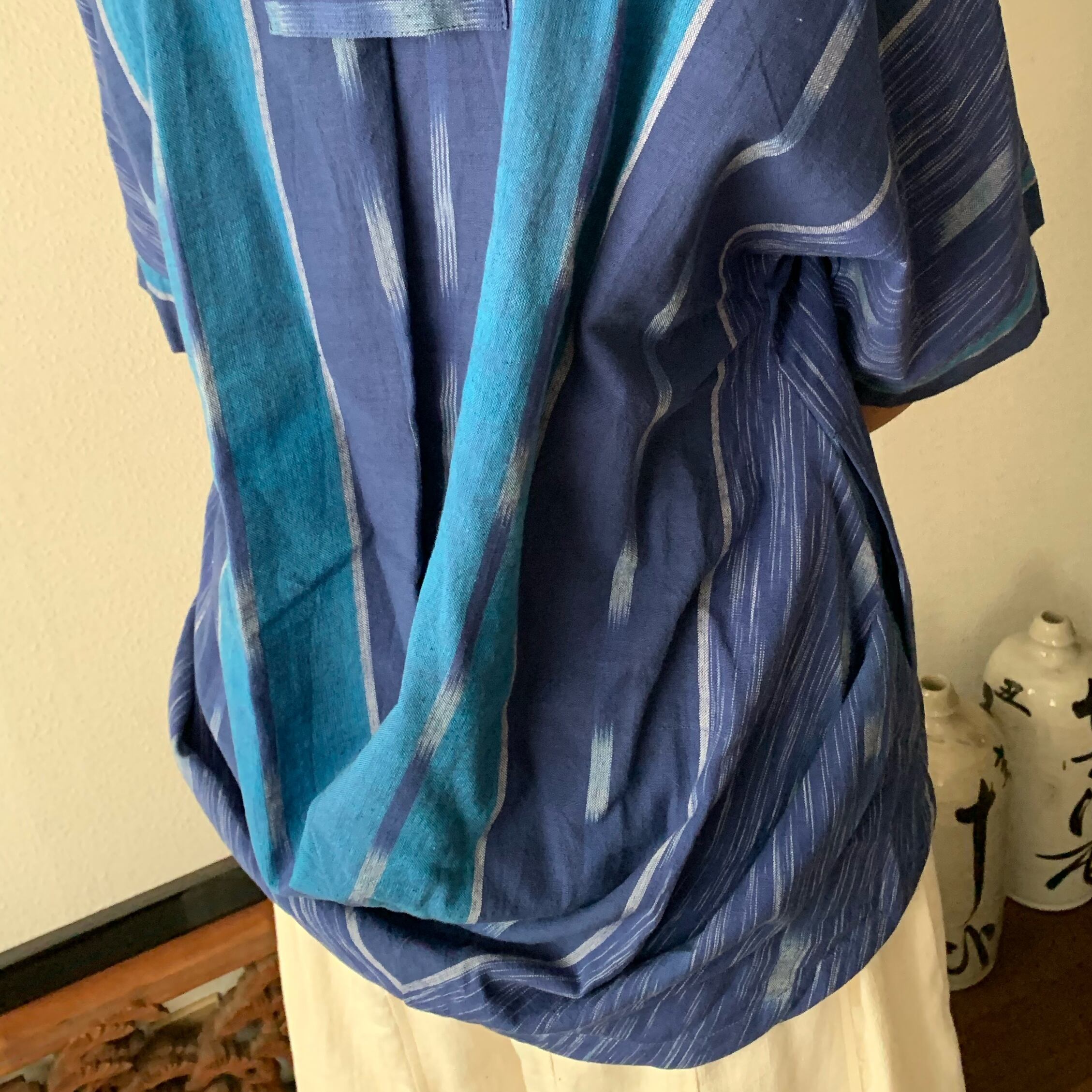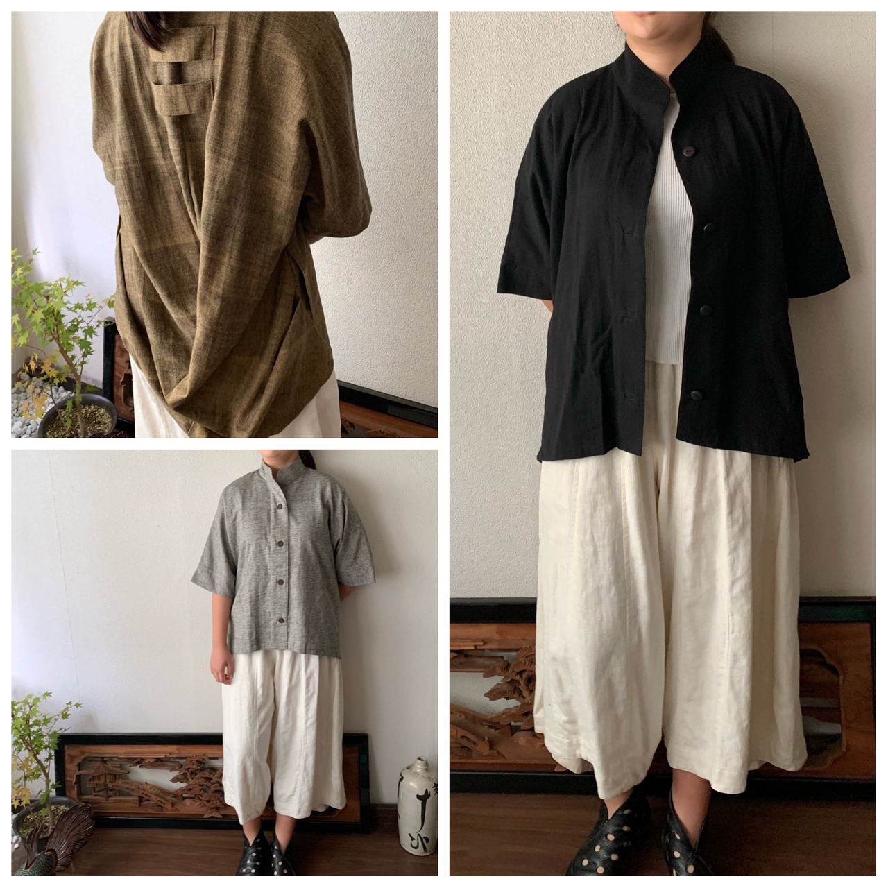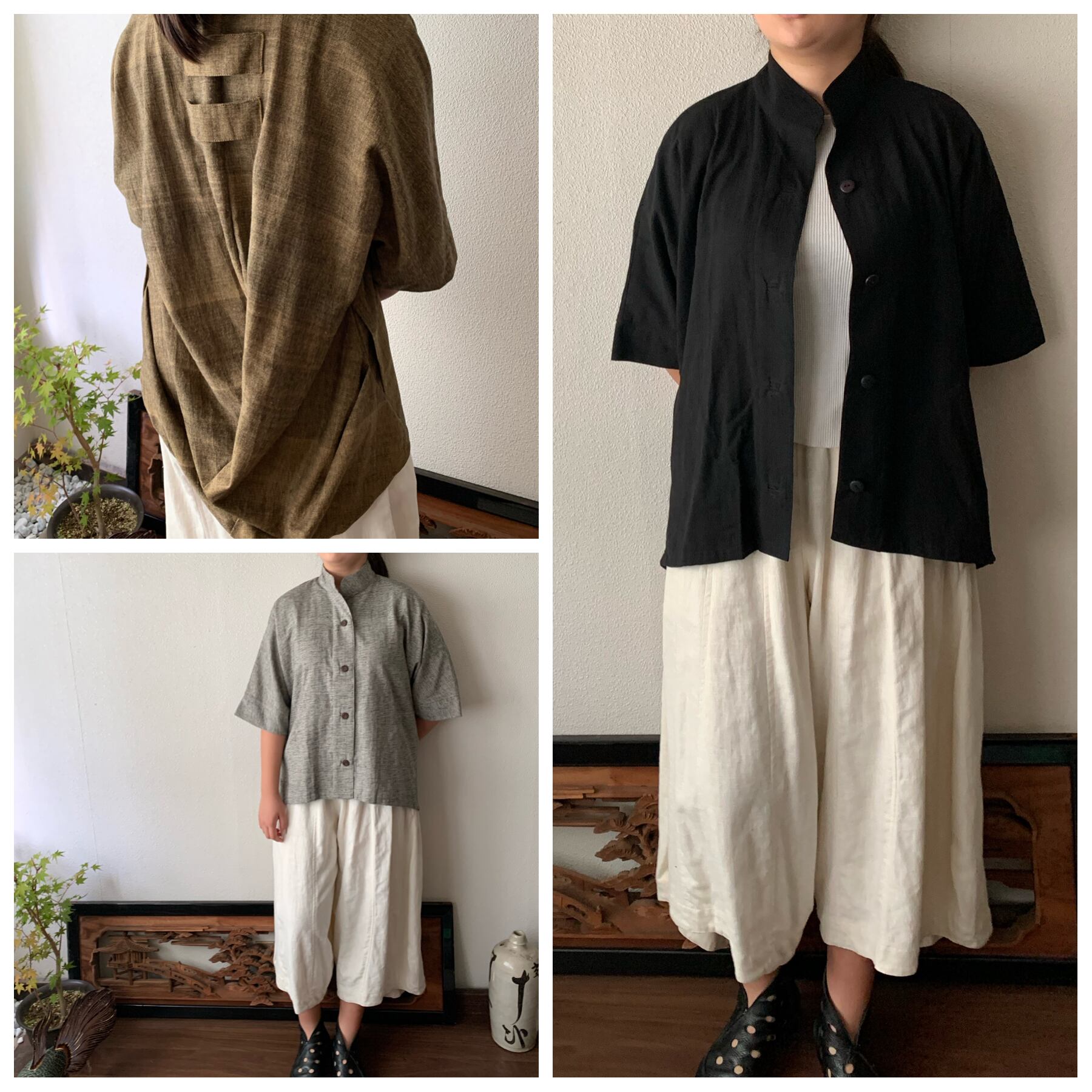 『バルーンバックシャンを楽しむ手織り綿ラグラン半袖ブラウス 着こなし簡単なのに個性的』