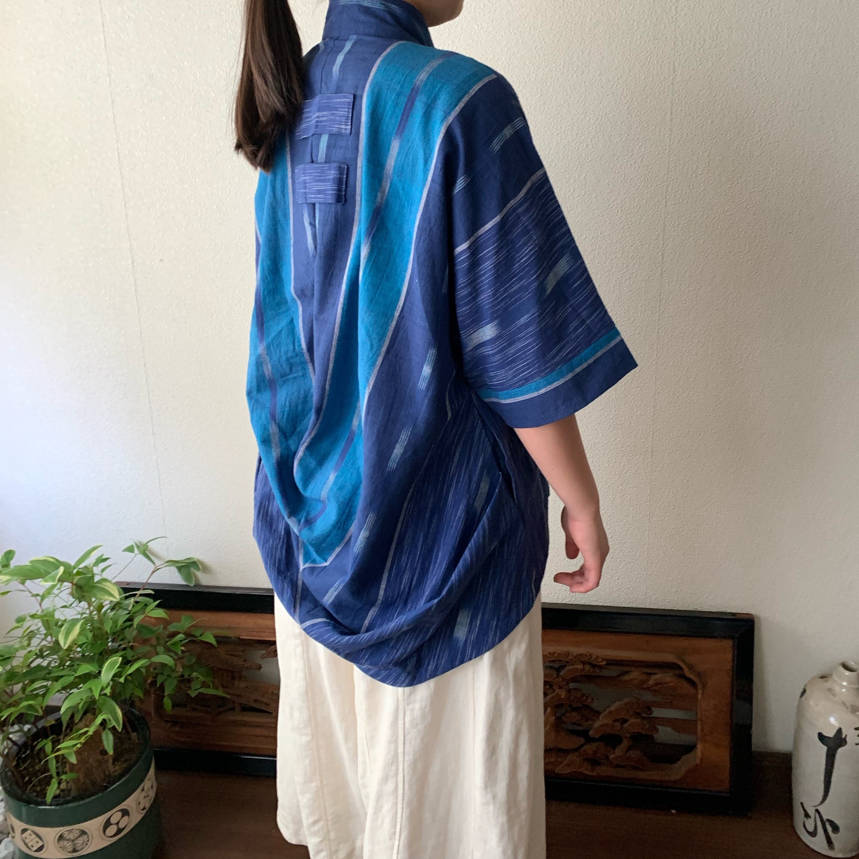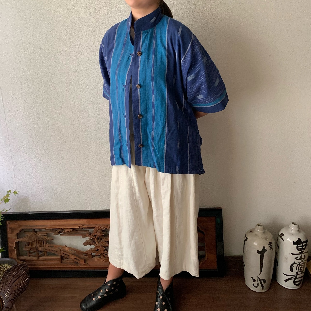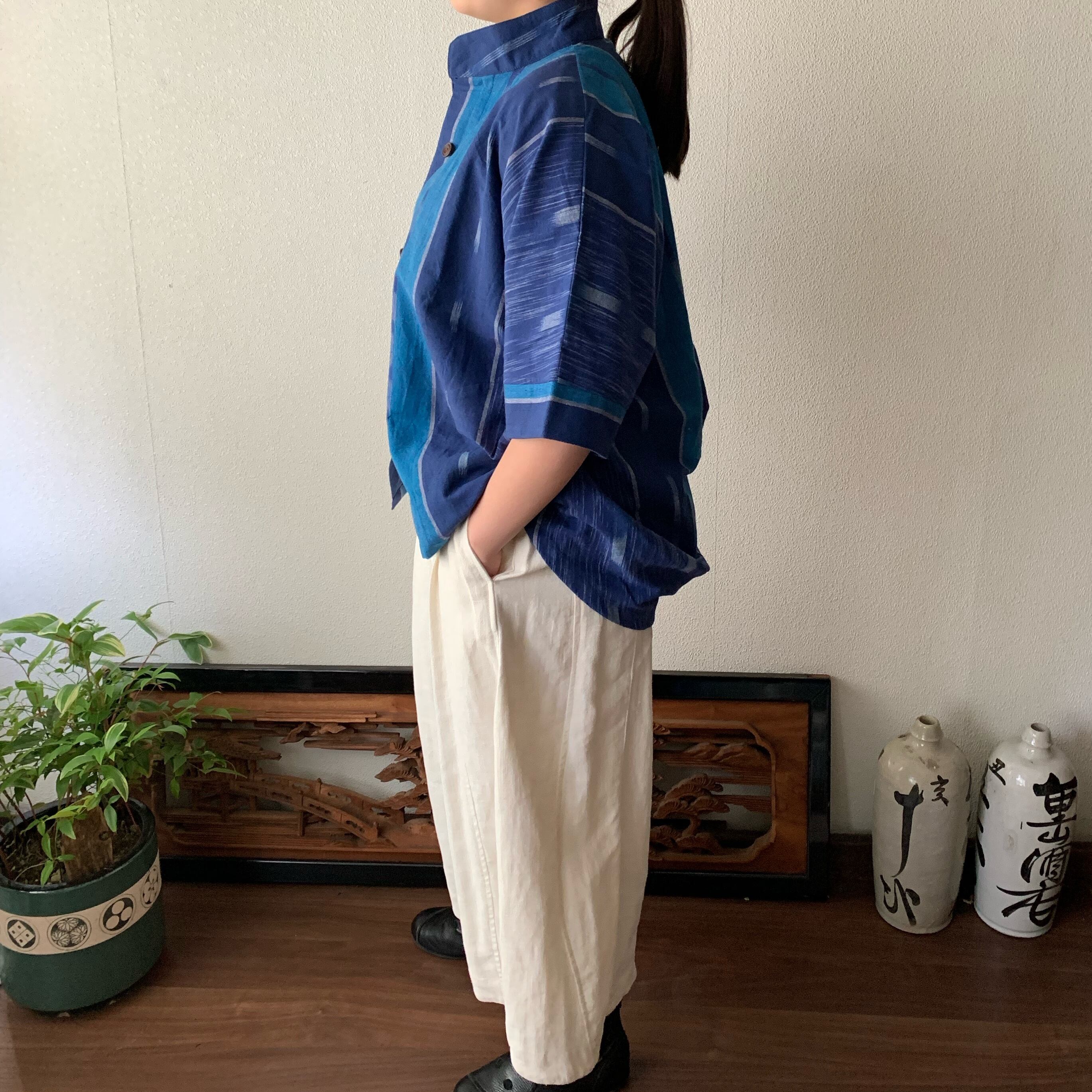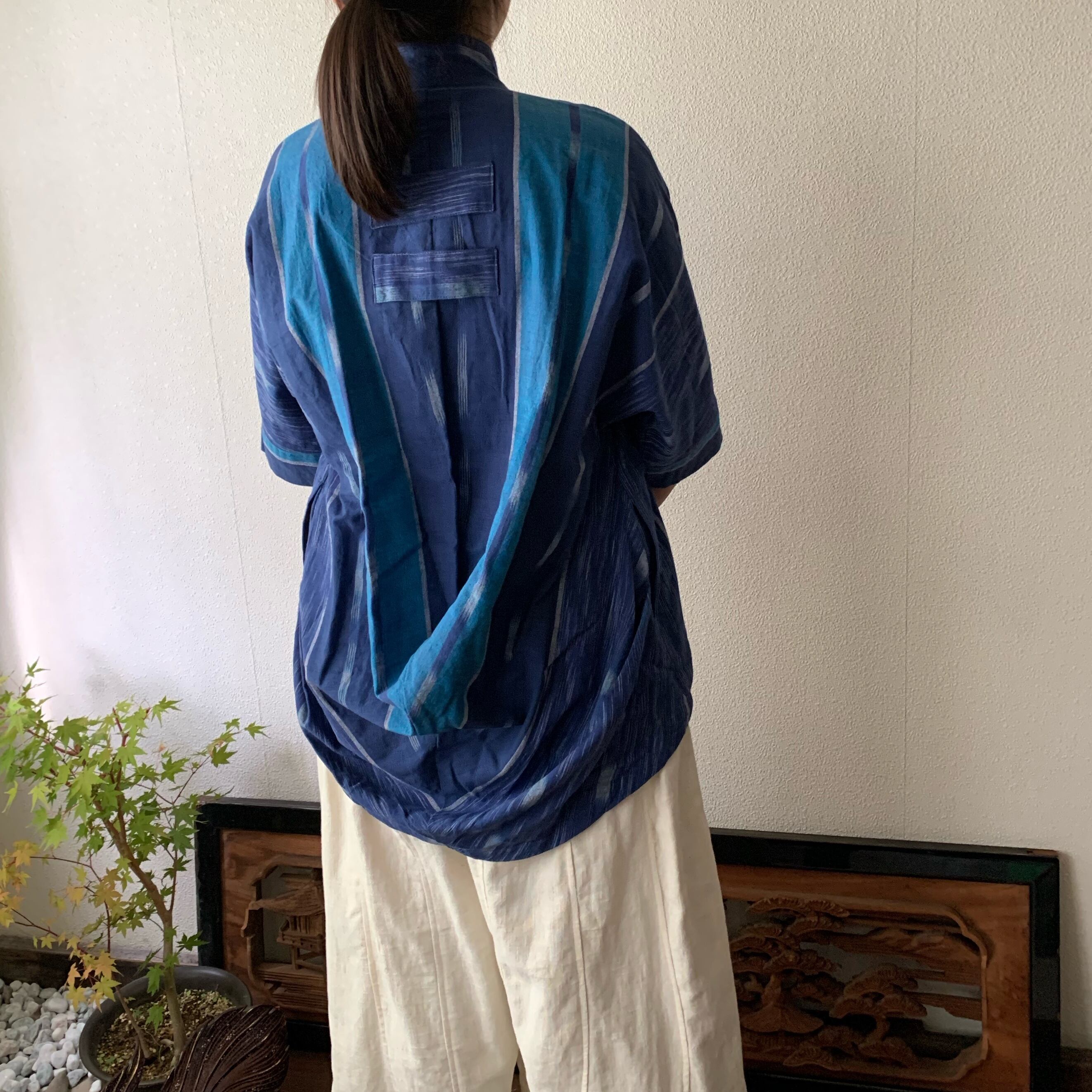 『バルーンバックシャンを楽しむ手織り綿ラグラン半袖ブラウス 着こなし簡単なのに個性的』