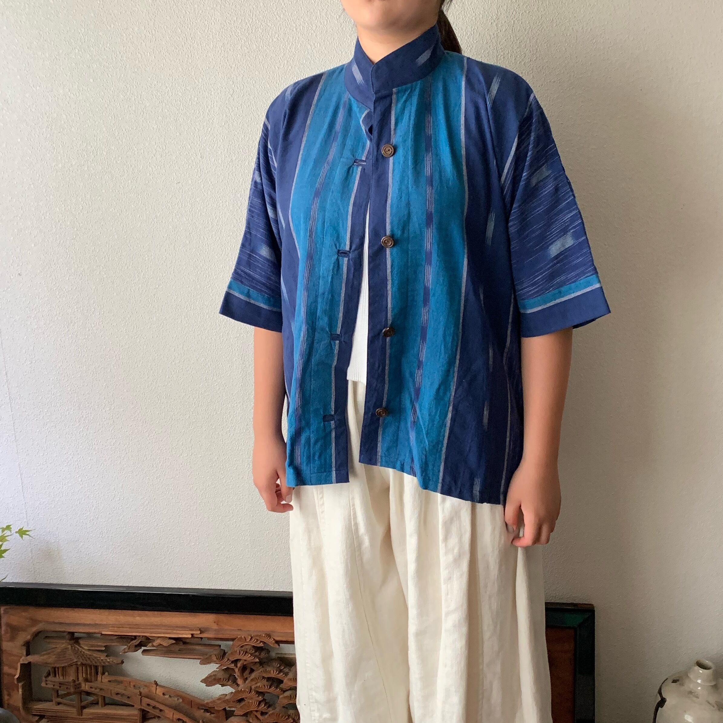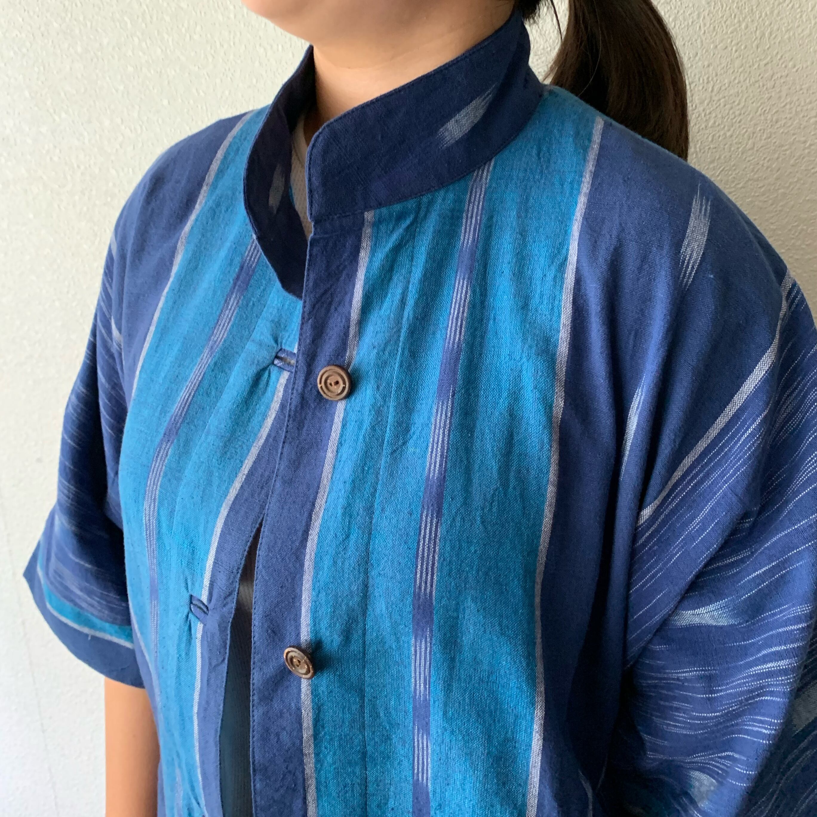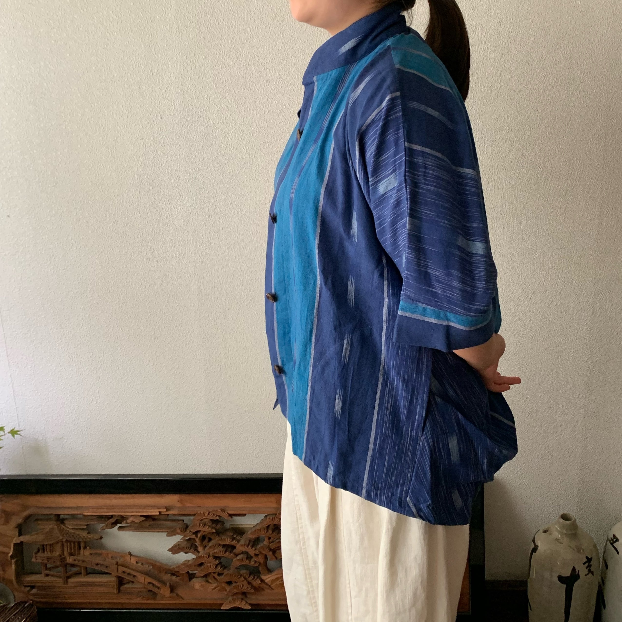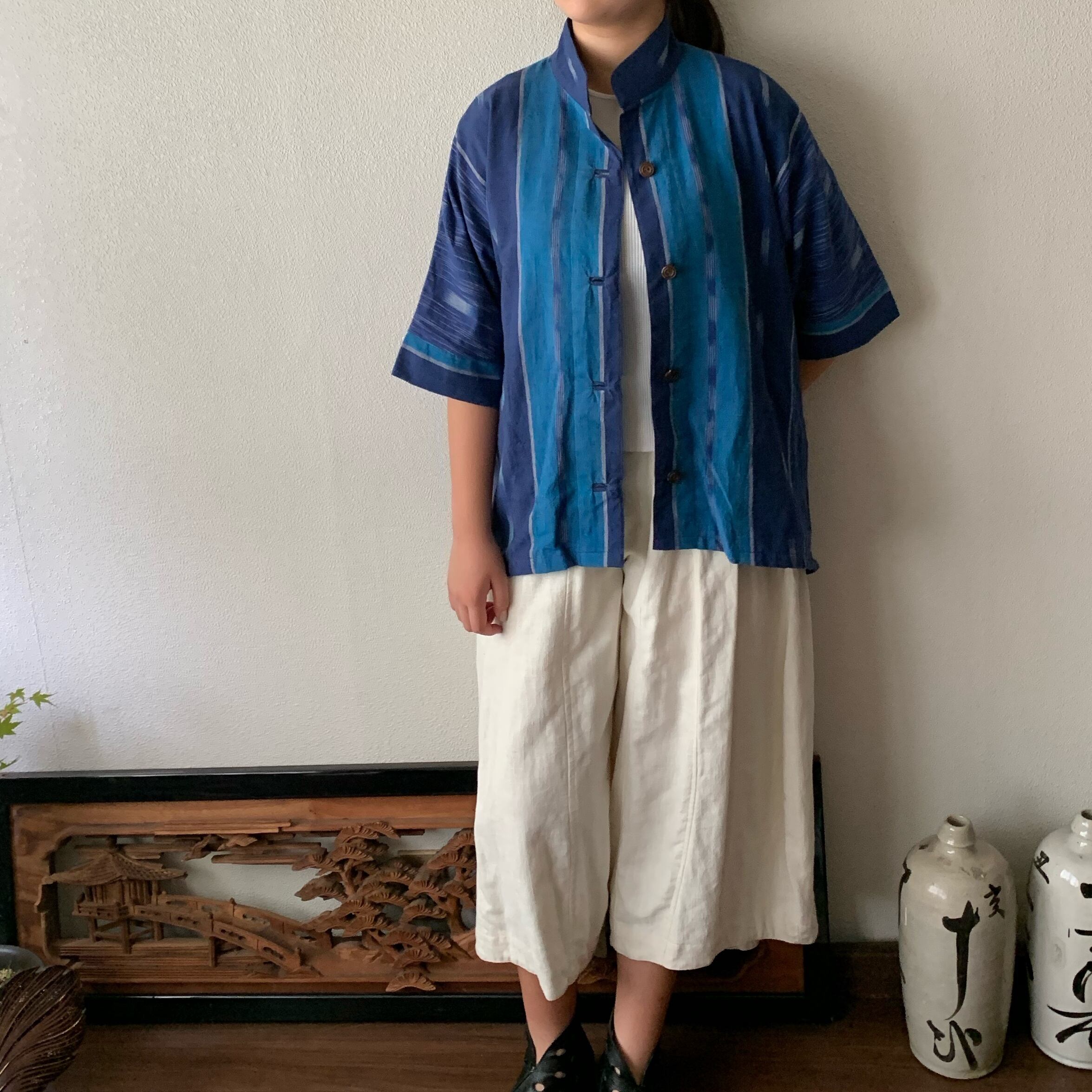 『バルーンバックシャンを楽しむ手織り綿ラグラン半袖ブラウス 着こなし簡単なのに個性的』