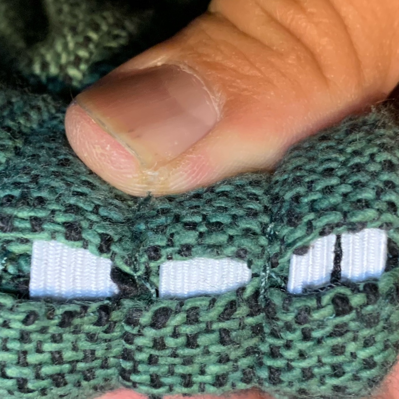 手織り綿の特性上、作品にはシボやネップ等(最後の写真右上部参照)が生地表面に現れる場合がございます。人の手を介して決して同じものが出来上がらない手織り綿の生地に、越天楽のデザインを吹き込んだ作品です。あらかじめご了解の上ご購入ください。なるべくいい状態でお届けいたしますが、気になる場合は細いかぎ針等で裏面から優しく引き抜いていただくと収まるものもあります。素朴で優しい風合いを楽しんでいただければ幸いです。