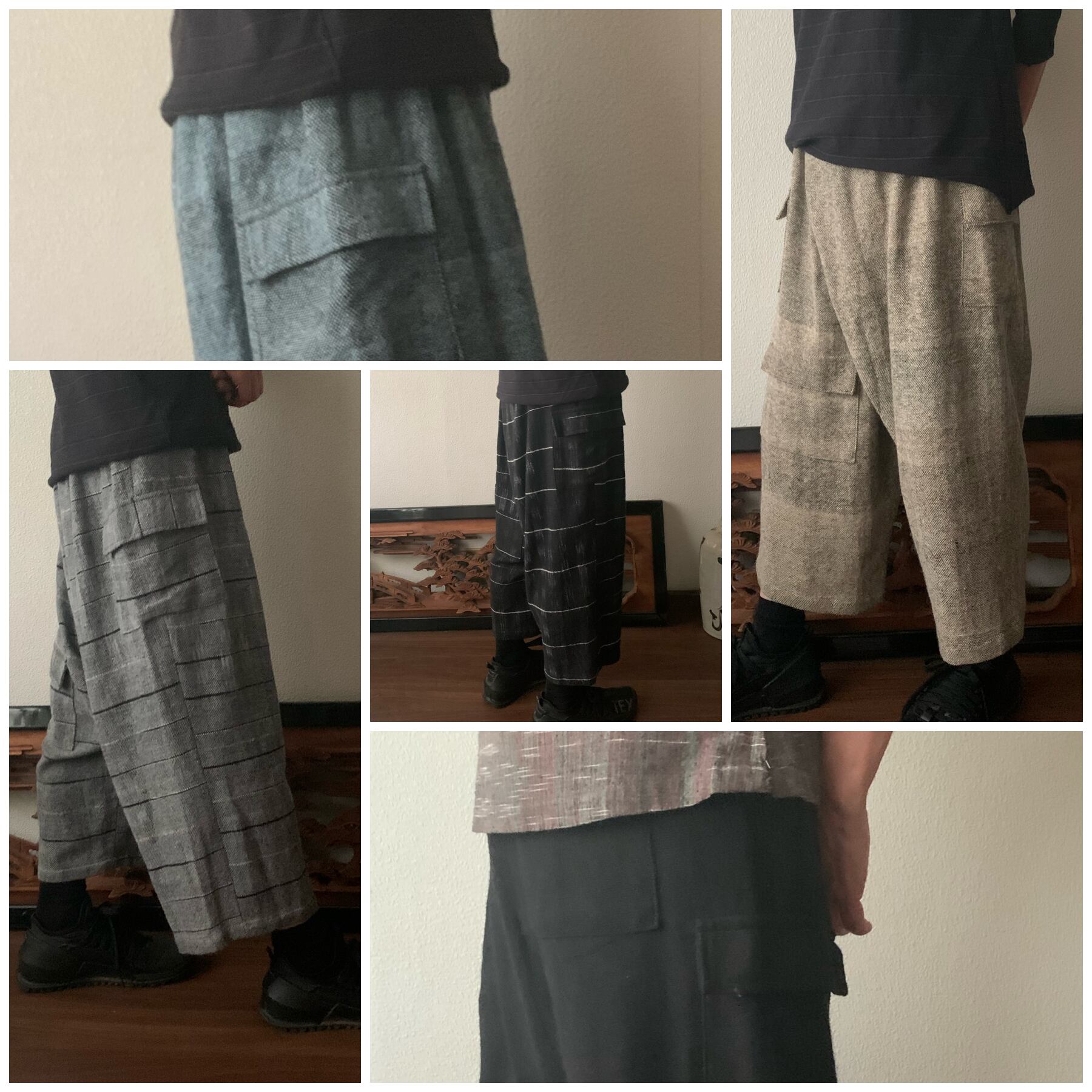 手織り綿なので、夏にサンダルと合わせても良し、秋冬にレギンスの上にはきブーツを合わせてもかっこいいです。